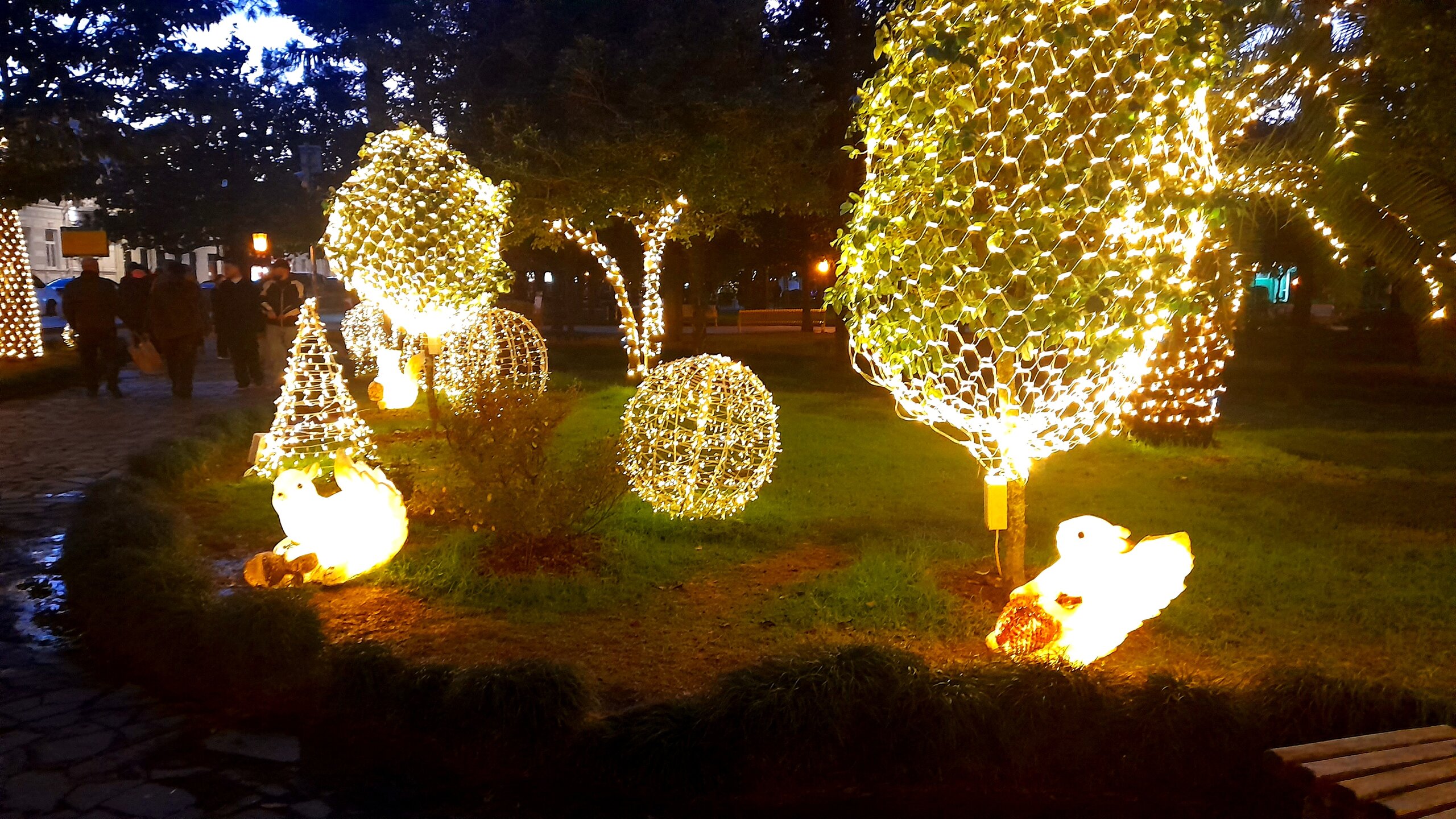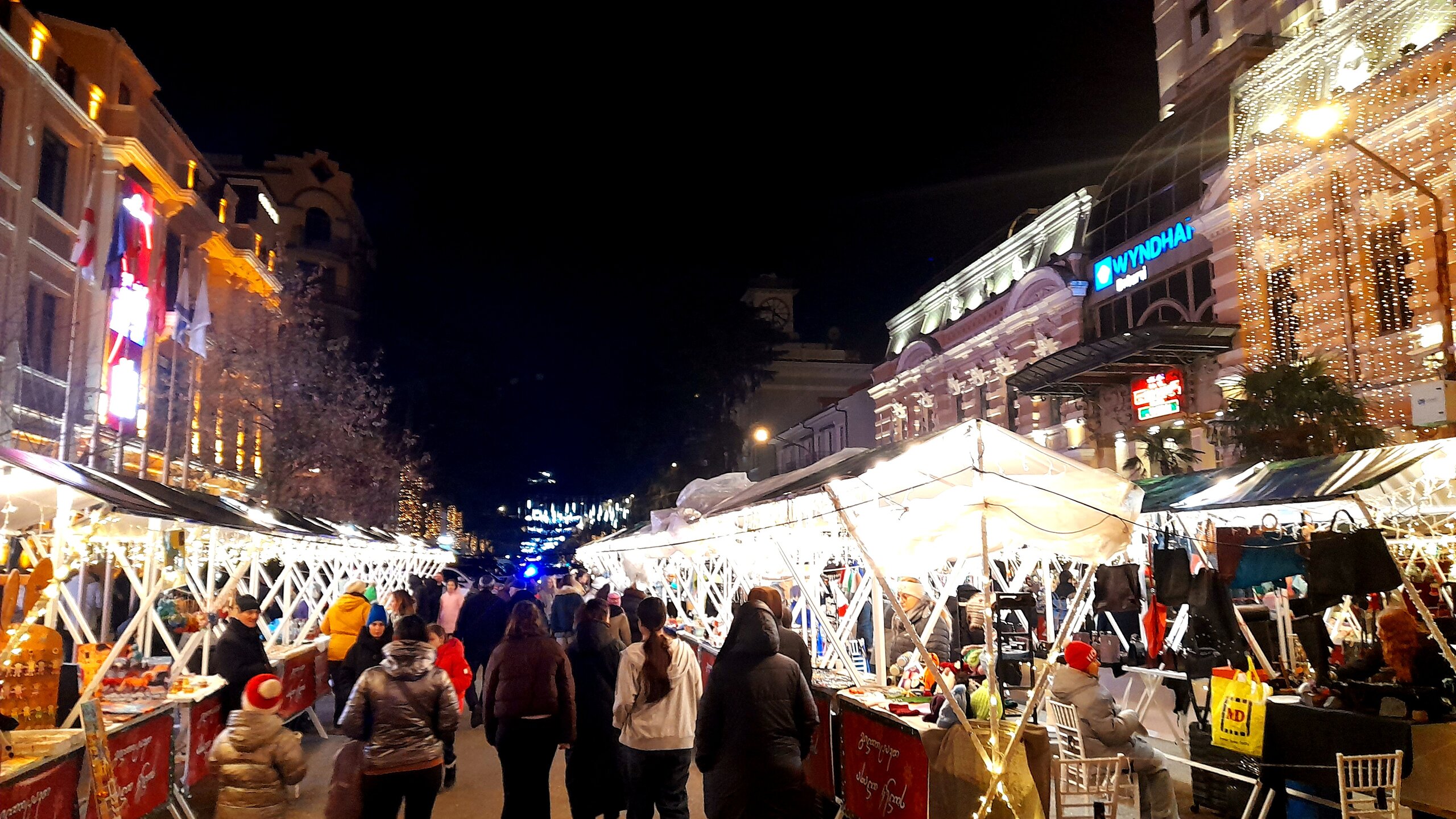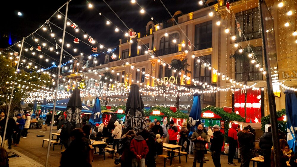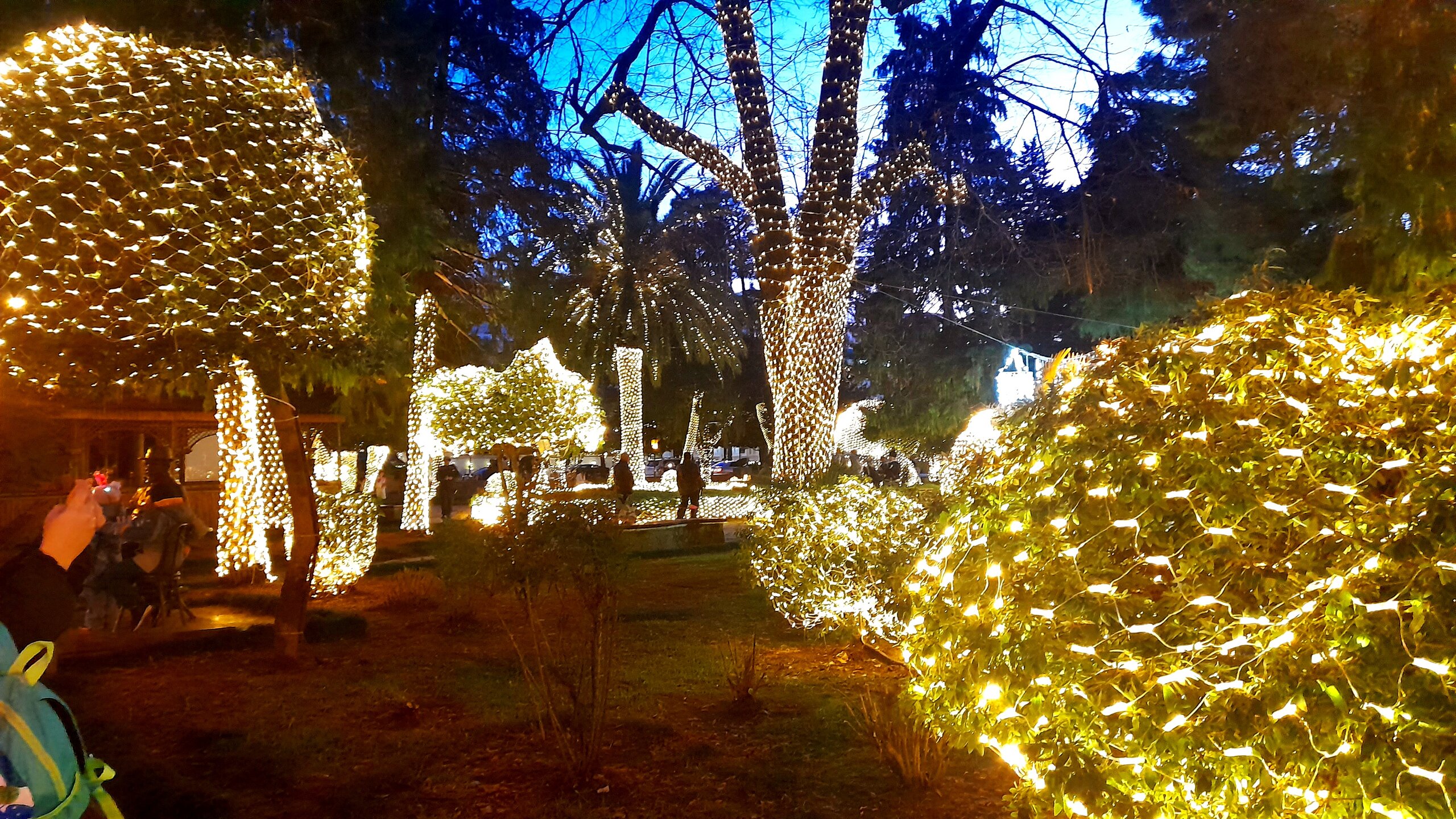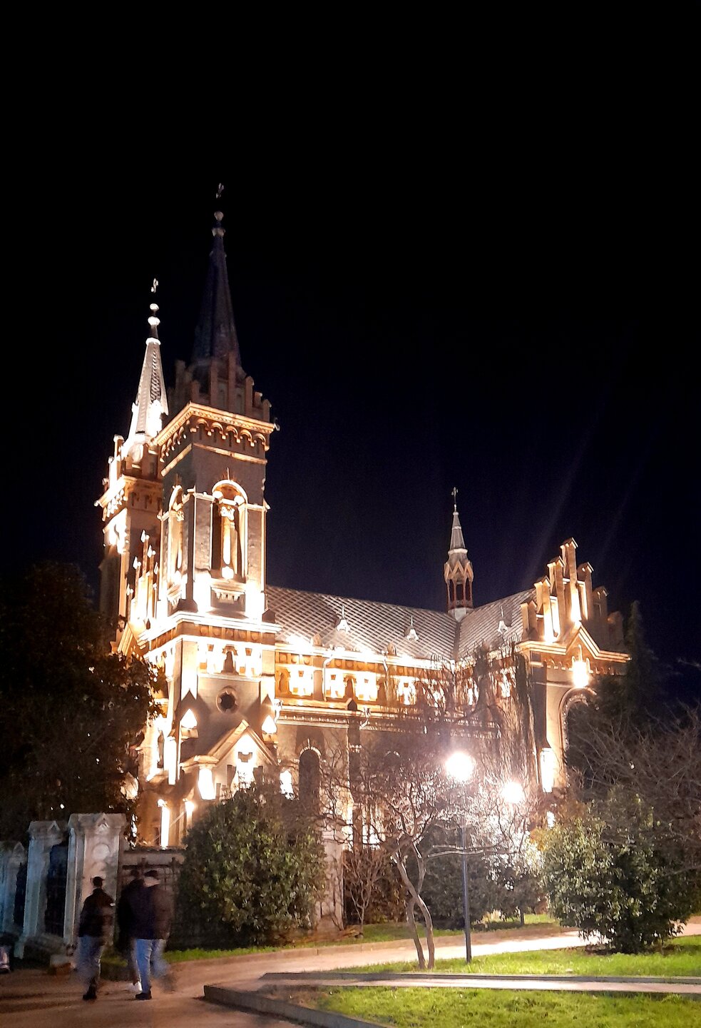 ВЕЧЕРНЯЯ ПРОГУЛКА ПО БАТУМИ. (продолжение) 2 января. Направляюсь на набережную Батуми или Батумский бульвар. Поражают высоченные отели, как этот Radisson Или эта батумская башня Le Meridien Batumi с казино Empire. Самое высокое здание в центре Батуми. На одном из верхних этажей в него встроено колесо обозрения ! Вечером шпиль этого здания меняет цвет подсветки, очень красиво. К тому же оно хорошо видно практически из любого места центра Батуми. А Ну а теперь подхожу к Алфавитной башне, маяку, колесу обозрения, которые я вчера прошёл с наступлением темноты под аккомпанемент дождя. Ну и к скульптурам Али и Нино подошёл. Далее выхожу на Бульвар, зелёный участок между морем высотными застройками, наподобие показанных выше. Начинает темнеть, и я углубляюсь в парковую зону Бульвара. На главной площади Бульвара - скульптура "Танцующая фея" и светомузыкальные фонтаны. А вот и видеофрагмент работы светомузыкальных фонтанов. 20260102_181338.mp4 Подхожу к торжественной колоннаде. Одна из достопримечательностей Бульвара - уникальное деревянное здание Летнего театра. В парке есть шахматный клуб, теннисный корт и спортивные площадки, но их лучше смотреть при дневном свете. А сейчас любуюсь красотой парка в свете тысяч лампочек подсветки. Дохожу до Шератон отеля с очередным казино. Возвращаюсь на площадь Европы, спустя немногим более часа. В ярких огнях площадь заиграла новыми красками, количество её посетителей кратно увеличилось. Пора и отдохнуть. Возвращаюсь в отель, по пути уже знакомый мне кафедральный собор. За день пройдено 31376 шагов (около 22 км). Насыщенный событиями день. Завтра - снова выездная экскурсия (на этот раз - групповая).