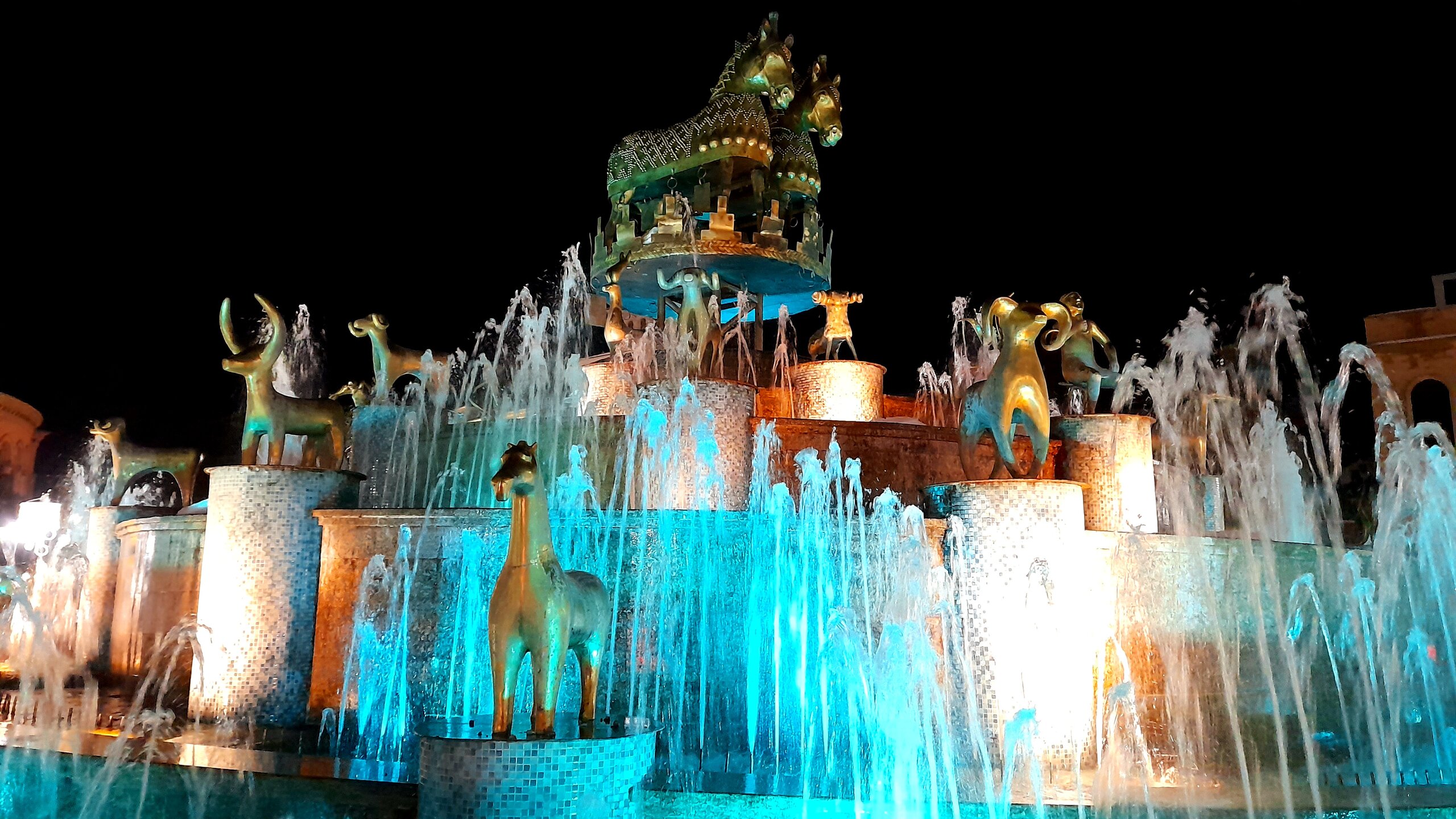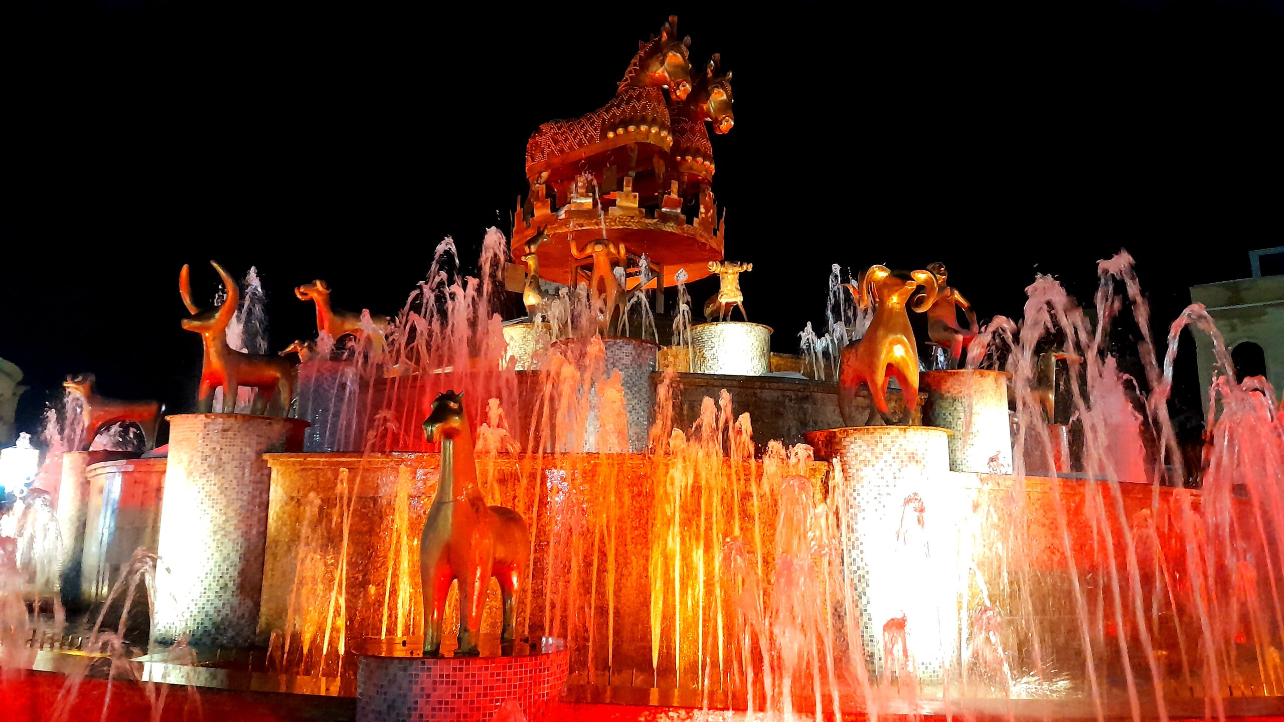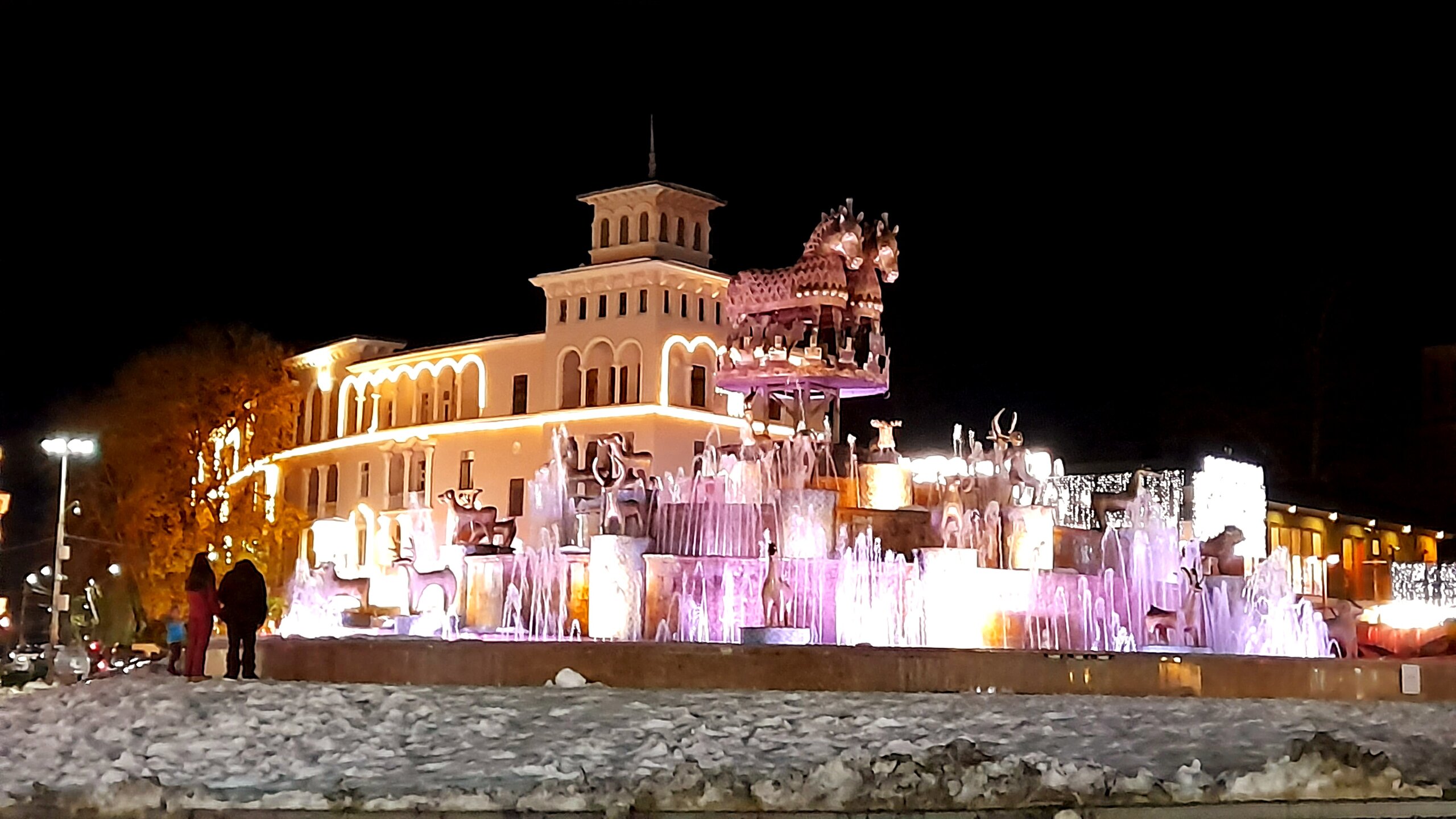 ВЕЧЕРНЯЯ ПРОГУЛКА ПО БАТУМИ. 2 января. Вчера из-за дождя моя вечерняя прогулка завершилась досрочно. Сегодня появилась возможность продолжить ознакомление с достопримечательностями города. Начну с греческой церкви Святого Николая, мимо которой я вчера прошёл при выходе с площади Пьяцца. Её красно-полосатый облик привлекает внимание. Построена она была понтийскими греками, которых в XIX веке в Батуми было очень много. Далее направляюсь на площадь Европы, место притяжения как туристов, так и местного населения. Сегодня - продолжение празднования Нового Года, на площади много семей с детьми. При входе на площадь - памятник М. Абашидзе, политическому деятелю, в честь него названа улица, фонтан и интересные здания. Башня с астрономическими часами и золочёными скульптурами показывает фазы Луны, положение солнца, зодиакальный календарь. Настоящее инженерное чудо. В центре площади Европы возвышается статуя Медеи с золотым руном. По легенде, именно в Колхиде, западной Грузии, аргонавты во главе с Ясоном нашли священное руно, а Медея, дочь царя Эета, помогла завладеть им. Очень красивы и другие строения на площади Европы. Ну и конечно, на радость детишкам - новогодняя ёлка. Перехожу на соседнюю площадь с памятником Нептуну. Точно такой же стоит в Болонье, только батумский ещё и в золоте. На этой площади расположен Батумский драматический театр имени И. Чавчавадзе. А что это там за звери у лестниц? Похожи на львов, только в китайском стиле. а с обратной стороны театра - скульптура и самого И. Чавчавадзе. Ну а теперь пора направиться на набережную Батуми...