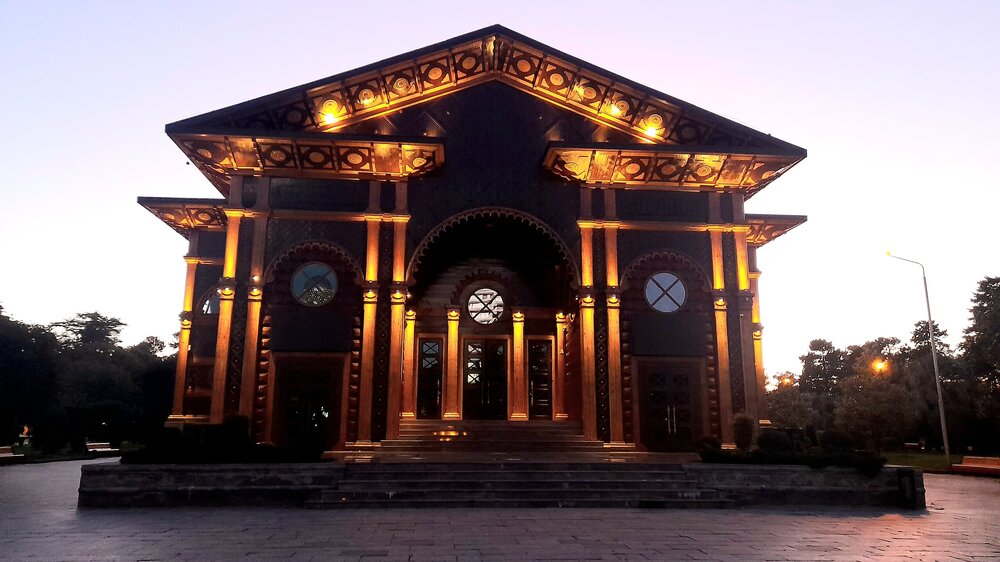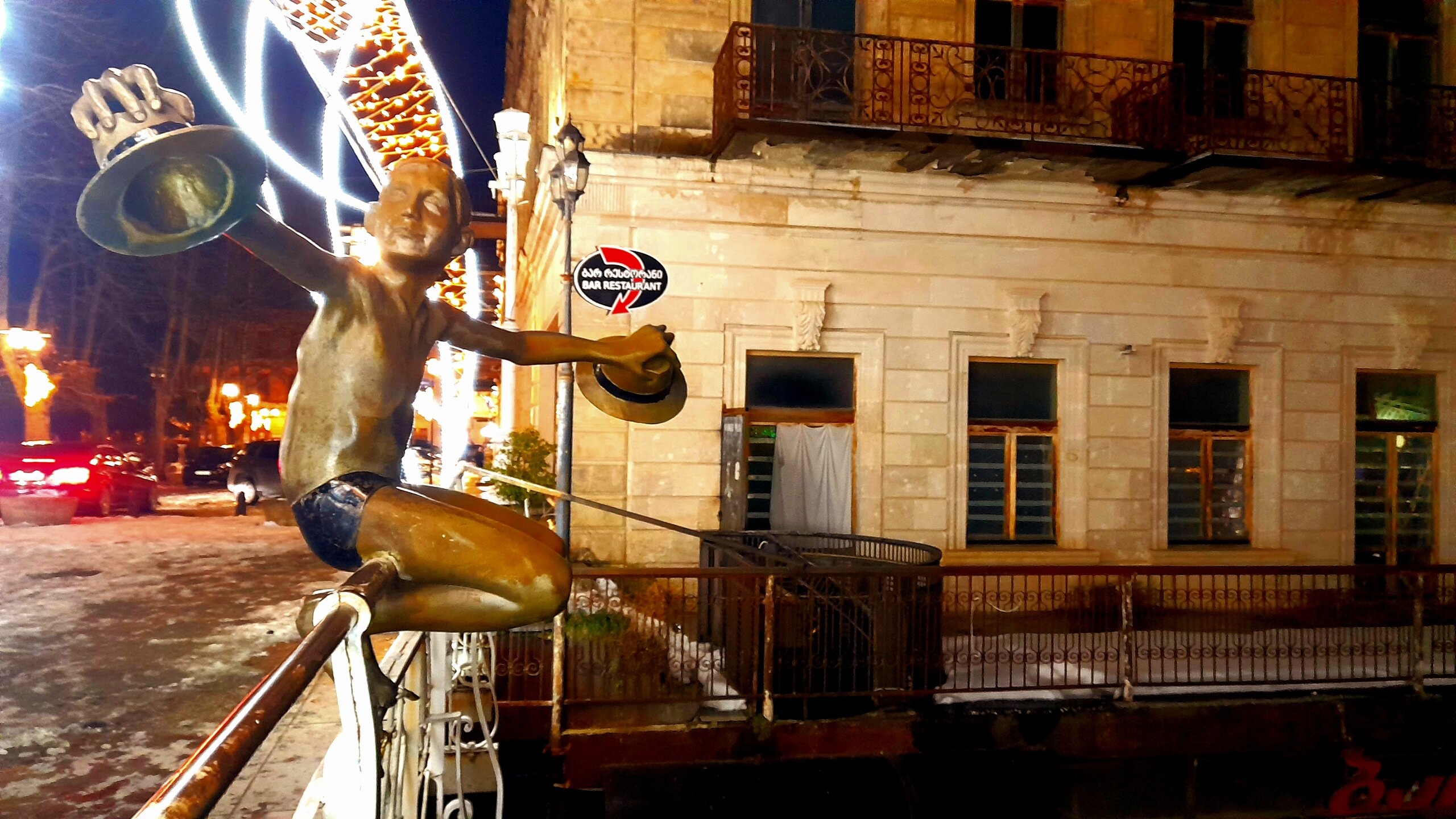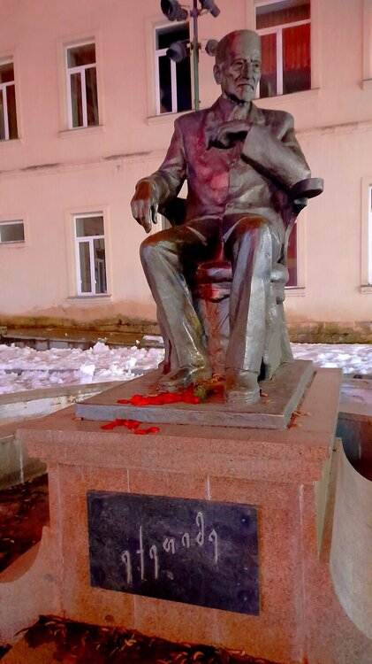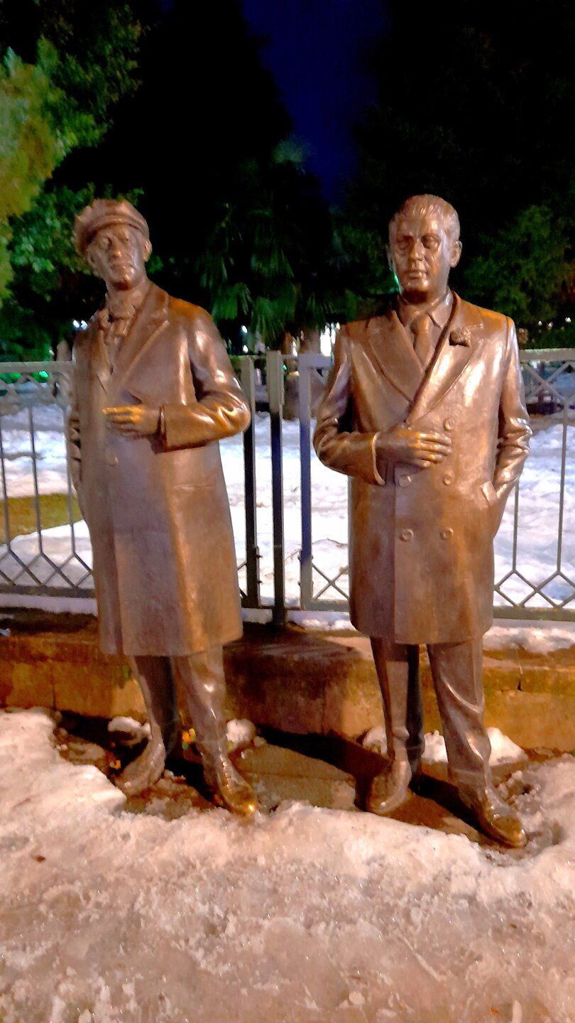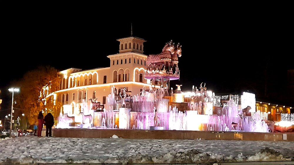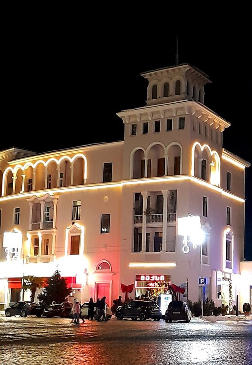 ВЕЧЕРНИЙ КУТАИСИ. 4 января. Кутаиси - административный центр Имеретии с населением около 200000 человек. Из существующих сейчас грузинских городов, Кутаиси самый древний. Поселение городского вида существовало на этом месте ещё во II тысячелетии до нашей эры. Город расположен на самом краю Колхидской равнины, у начала предгорий. Есть предположения, что он мог быть столицей Колхидского царства и именно сюда приплывали аргонавты на корабле "Арго". В 806 году город стал столицей Абхазского царства, пока в 1122 году её не перенесли в Тбилиси. В XV веке Кутаиси стал столицей Имеретинского царства, в 1810 году стал одним из городов Российской империи, с 1846 года центр Кутаисской губернии. Выхожу на вечернюю прогулку. Не могу равнодушно относиться к зданиям в Грузии с верандой на втором этаже. Выхожу к Белому мосту, перекинутого через реку Риони. Символом моста является бронзовая скульптура мальчика со шляпами. Она копирует сцену из фильма "Необыкновенная выставка" 1968 года, где мальчик срывает шляпы с голов прохожих и прыгает в реку Риони. Проспект Шота Руставели ведёт в центр города. Слева - театр оперы и балета. не в каждом большом городе встретишь такой театр. И приводит меня к Колхидскому фонтану с многочисленными статуями. это - увеличенные копии фигурок, найденных при археологических раскопках древней Колхиды. Самый дорогой в стране фонтан. Кому какая подсветка больше нравится? Подойти к фонтану не так просто из за кругового движения транспорта, к тому же весьма хаотичному. Также на Цетральной площади находится Кутаисский драматический театр имени Ладо Месхишвили, Национальный банк Грузии. Примыкает к площади Центральный парк. Сейчас в парке темновато, завтра днём посмотрю подробнее. Иду в направлении Зелёного рынка, на главном здании которого огромный барельеф. Выхожу на Красный мост. В городе много памятников выдающимся грузинским деятелям. Вот кое-что, снятое вечером. На первом фото- историк и археолог Евфимий Такаишвили, на втором стоят - Паоло Иашвили и Тициан Табидзе - грузинские поэты. Завтра я продолжу в течении дня изучать Кутаиси...