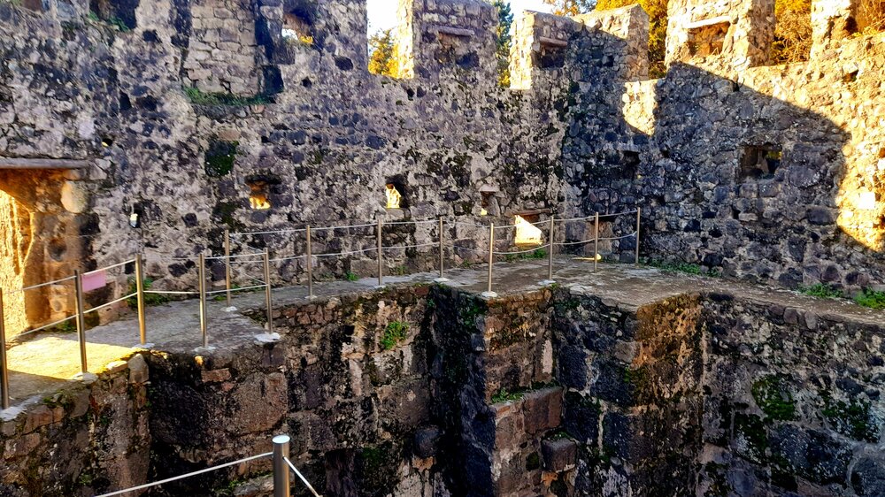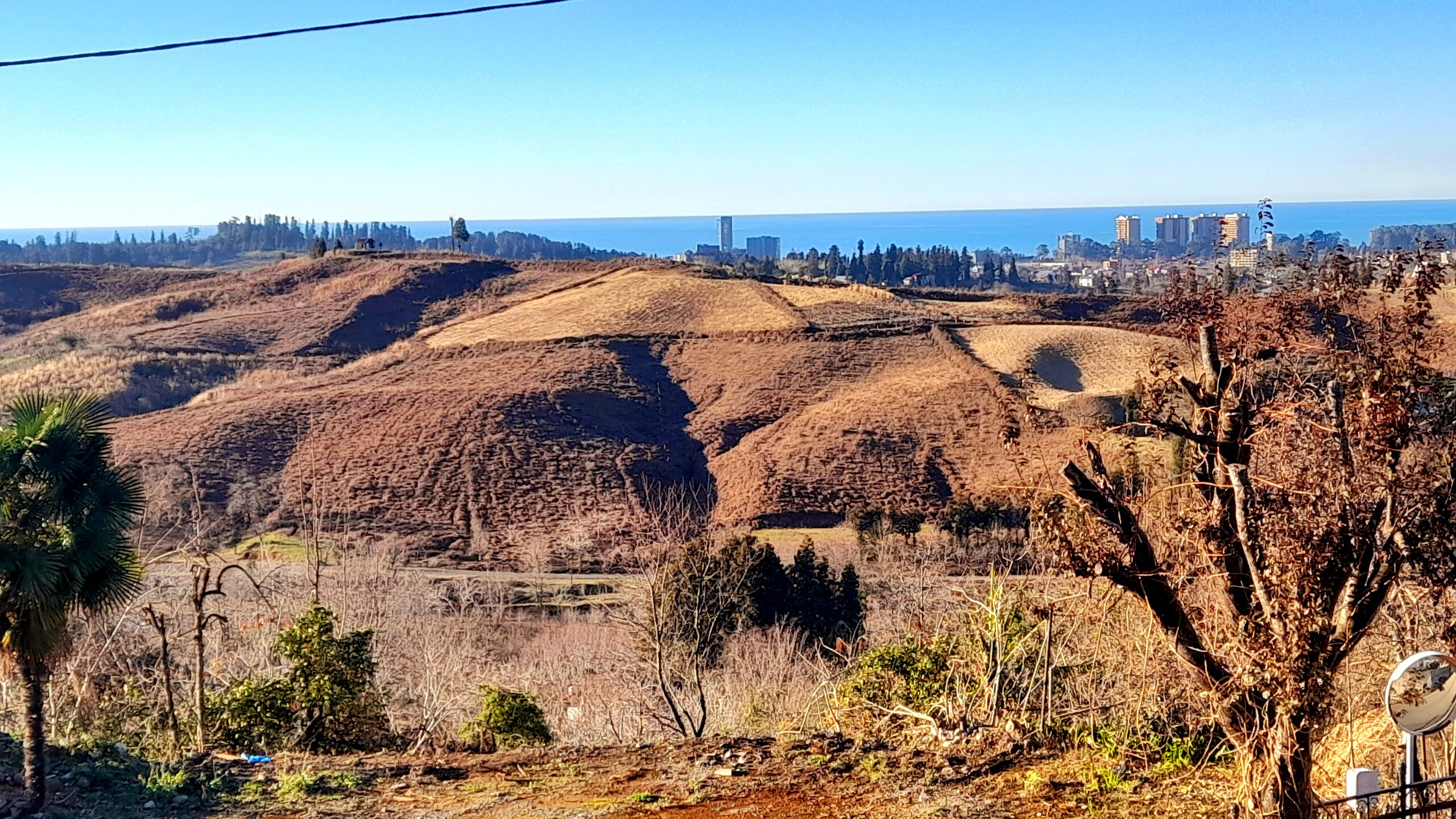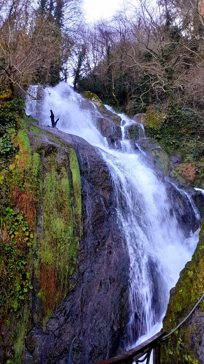 БАНАНОВАЯ РОЩА В ЦИХИСДЗИРИ. 2 января. Этот объект в туристических справочниках отсутствует. О его существовании я узнал из предлагаемых готовых маршрутов на gotrip.ge Местечко весьма заброшенное, необустроенное, хотя рядом позиционируют бамбуковую рощу. Очень длинный спуск с холма к морю. Много поломанных ветвей, наверно ветром сломало. Совсем радом -фешенебельный ***** на берегу моря отель "Castello Mare Hotel & WelLness Resort". Перехожу железную дорогу и передо мной небольшой водопадик. А море с силой обрушивается на одиноко стоящий в море камень, создавая массу брызг. Смотреть за этим зрелищем оказалось намного интереснее, чем на банановую рощу. Н На вершине холма видны домики и указатель на кафе "Бамбуковое". Не стал проверять, есть ли там кто сейчас. Поднимаюсь наверх и продолжаем выполнять намеченную программу.