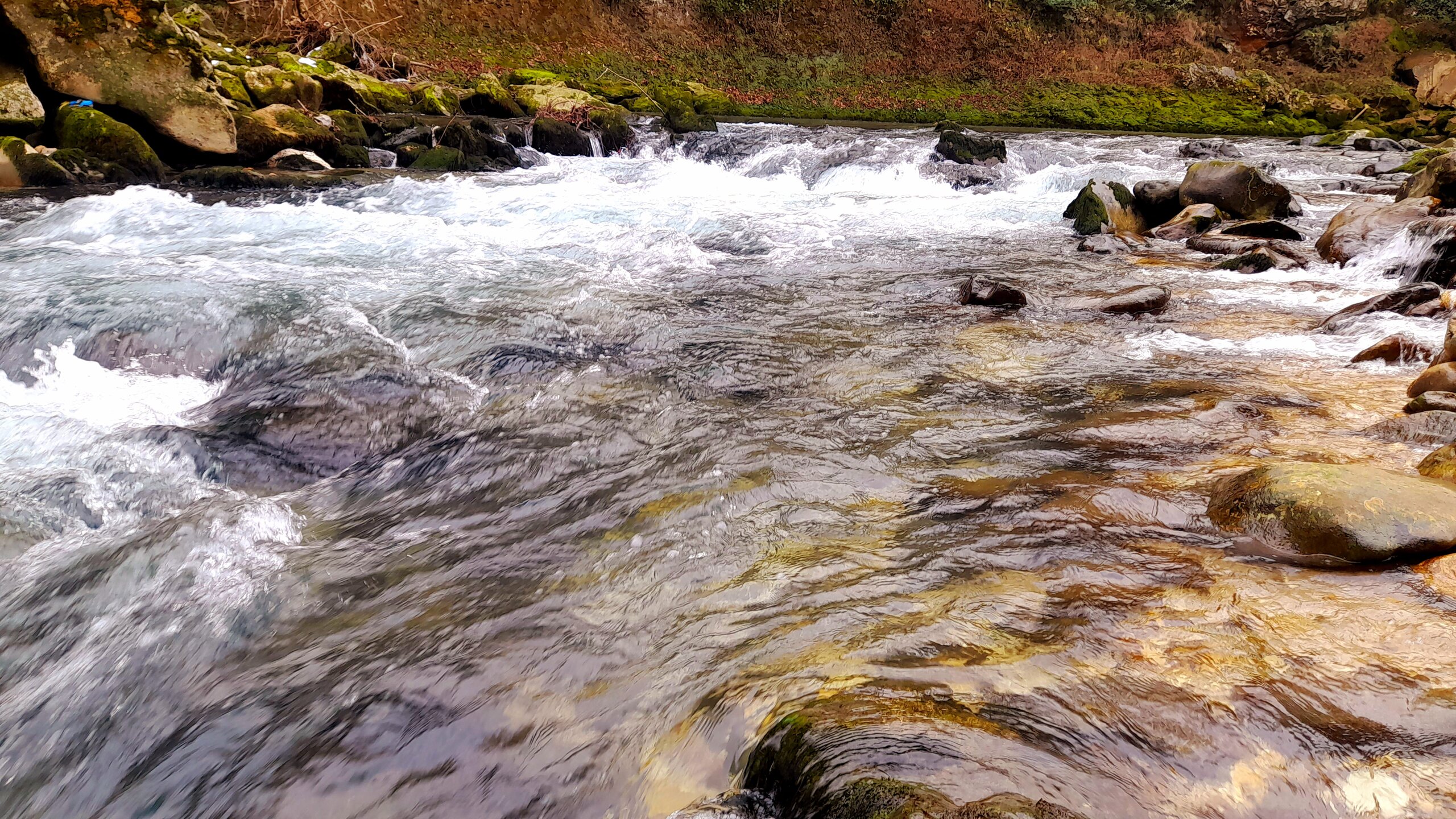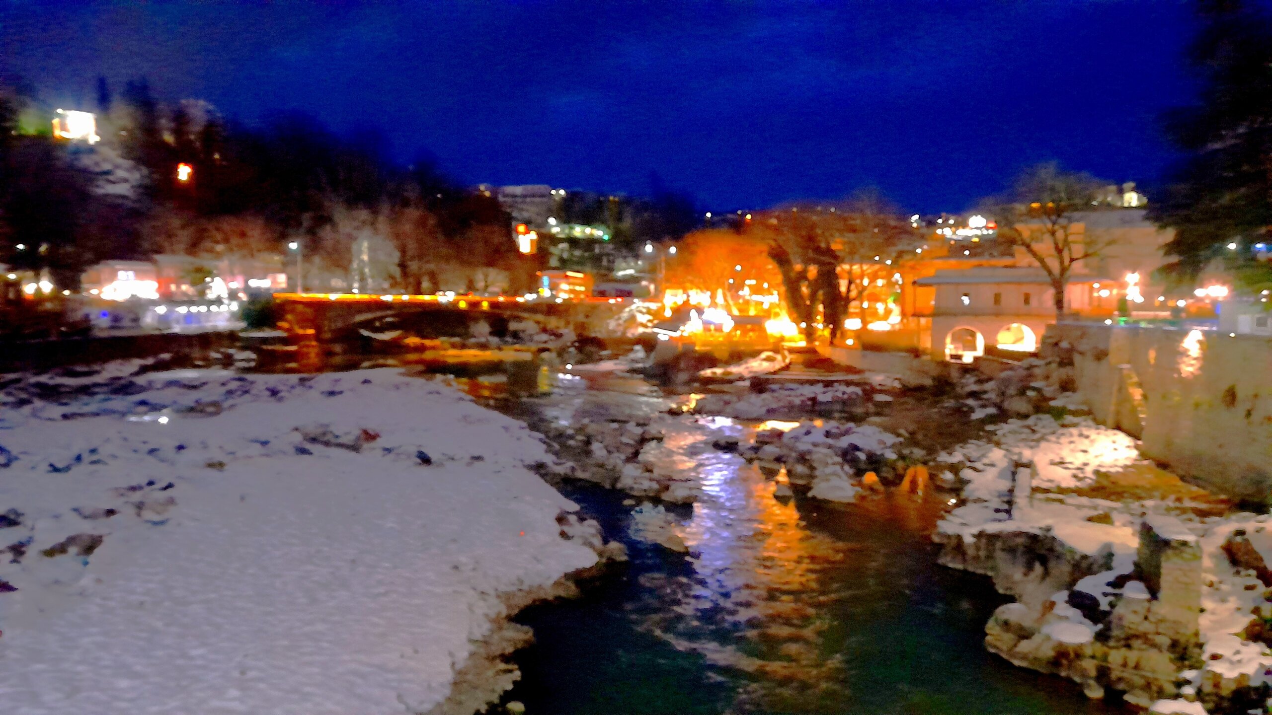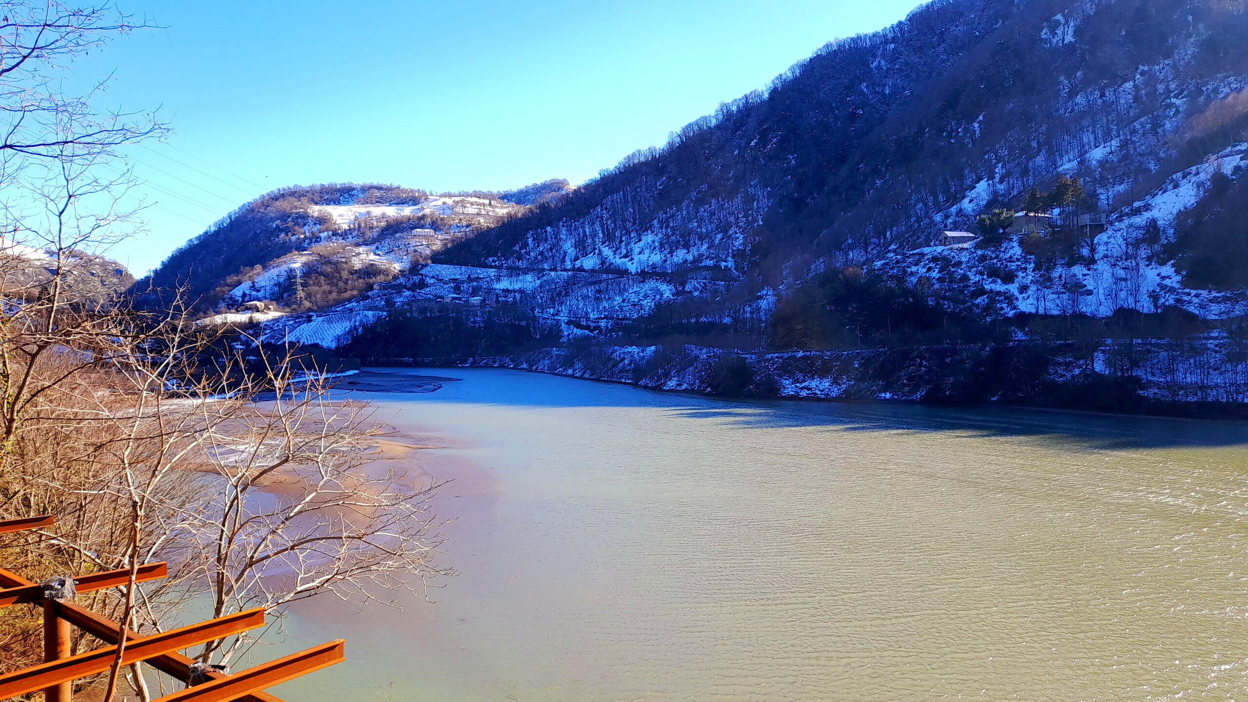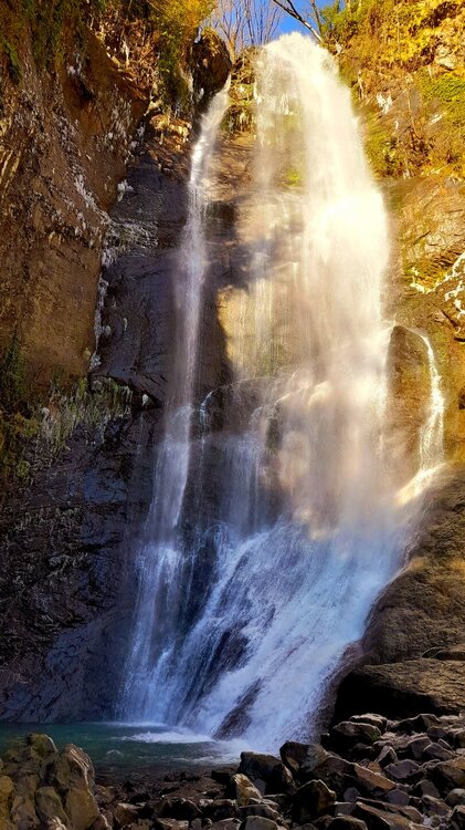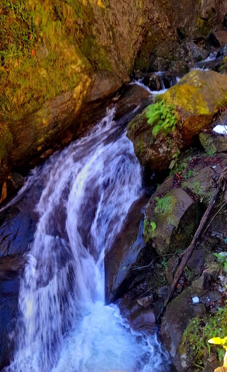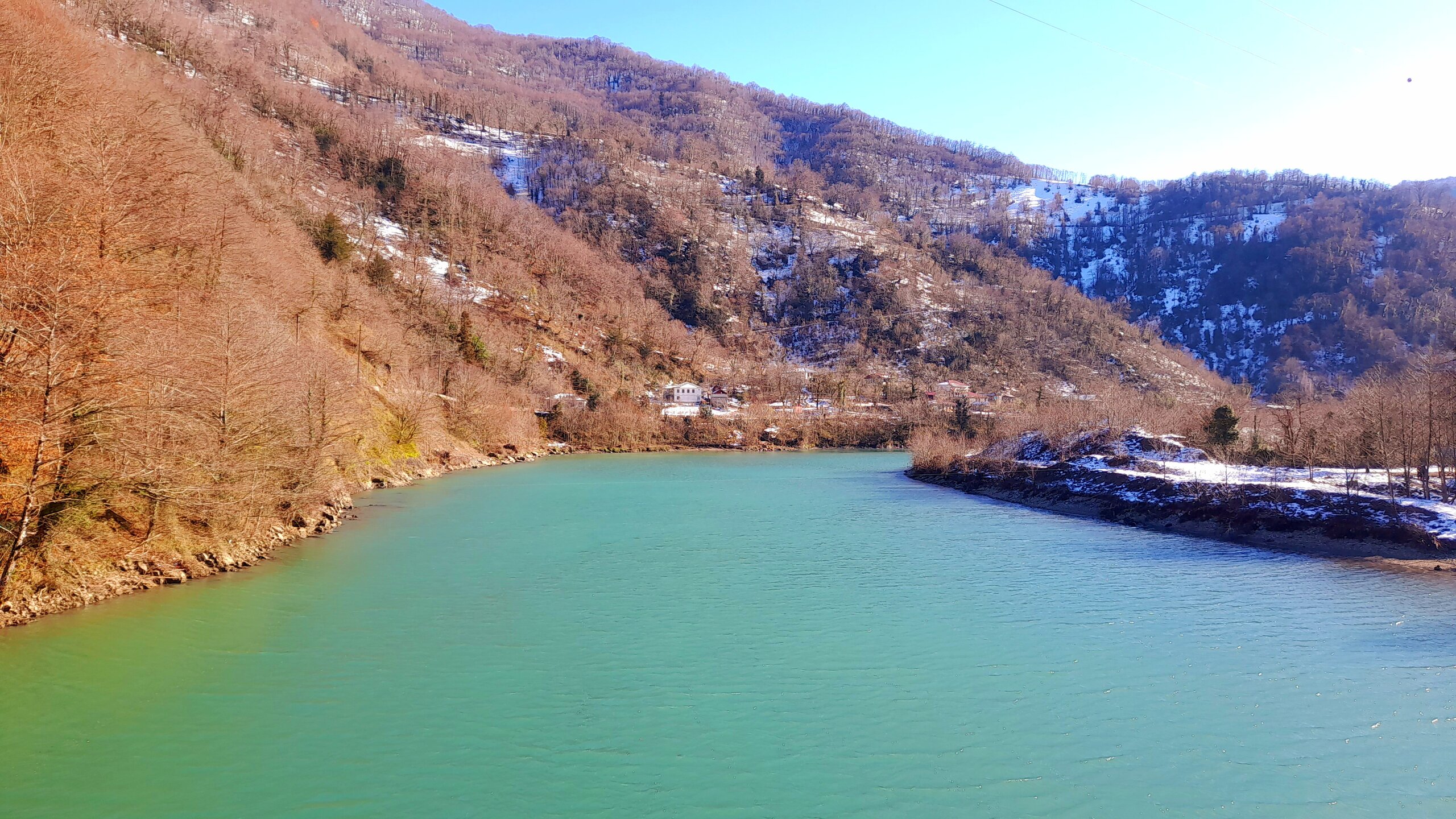 ГОРНАЯ АДЖАРИЯ. часть 2-я. 3 января. Поднимаемся в горы вдоль русла реки Чорох. Делаем остановку на месте впадения в неё реки Аджарисцкали. Виден водораздел мутных вод Аджарисцкали и бирюзовых вод Чороха. Поднимаемся ещё выше и останавливаемся у самого популярного у туристов, 30-метрового водопада Махунцети. Какой красавец! К водопаду оборудована тропа, вокруг которой ведётся оживлённая торговля мёдом, чурчхелой и вареньем. Я кроме традиционного магнитика приобрёл стаканчик жареных каштанов и глинтвейна. А всего в 500 метрах от водопада расположен старинный каменный мост, соединяющий берега Аджарисцкали. Как и всё древнее и таинственное, в Грузии называют именем царицы Тамары. Вот и арочный мост в Махунцети назван её именем. Его длина 29 метров, высота 6 метров. Я прошёлся по нему в обе стороны. Подробнее об этом старинном сооружении IX-X века можно почитать на демонстрационном стенде А вы обратили внимание на снег? Именно он стал преградой к подъему в национальный парк Мачахела, а также к грузинскому застолью в горах. А я дождя боялся! Продолжаем наше путешествие по Горной Аджарии и направляемся к ещё одному водопаду Мирвети. Надо по мостику перейти реку Чорох, пройтись по деревне около километра, и уже за поворотом показался ещё один аджарский красавец! Ну а грузинское застолье у нас всё же состоялось. Наш гид (и водитель минивэна) Давит договорился о проведения застолья в горном селе в грузинской семье своей родственницы. Столы ломились от аджарских и грузинских национальных блюд (сациви, хинкали, хачапури по-аджарски) , вина, чачи. Сколько было сказано тёплых, душевных тостов! А напоследок, уже с наступлением темноты, он нас завёз в заброшенный мандариновый сад и дал нам 15 минут на его "разграбление". Я даже домой привёз эти мандарины, очень вкусные.