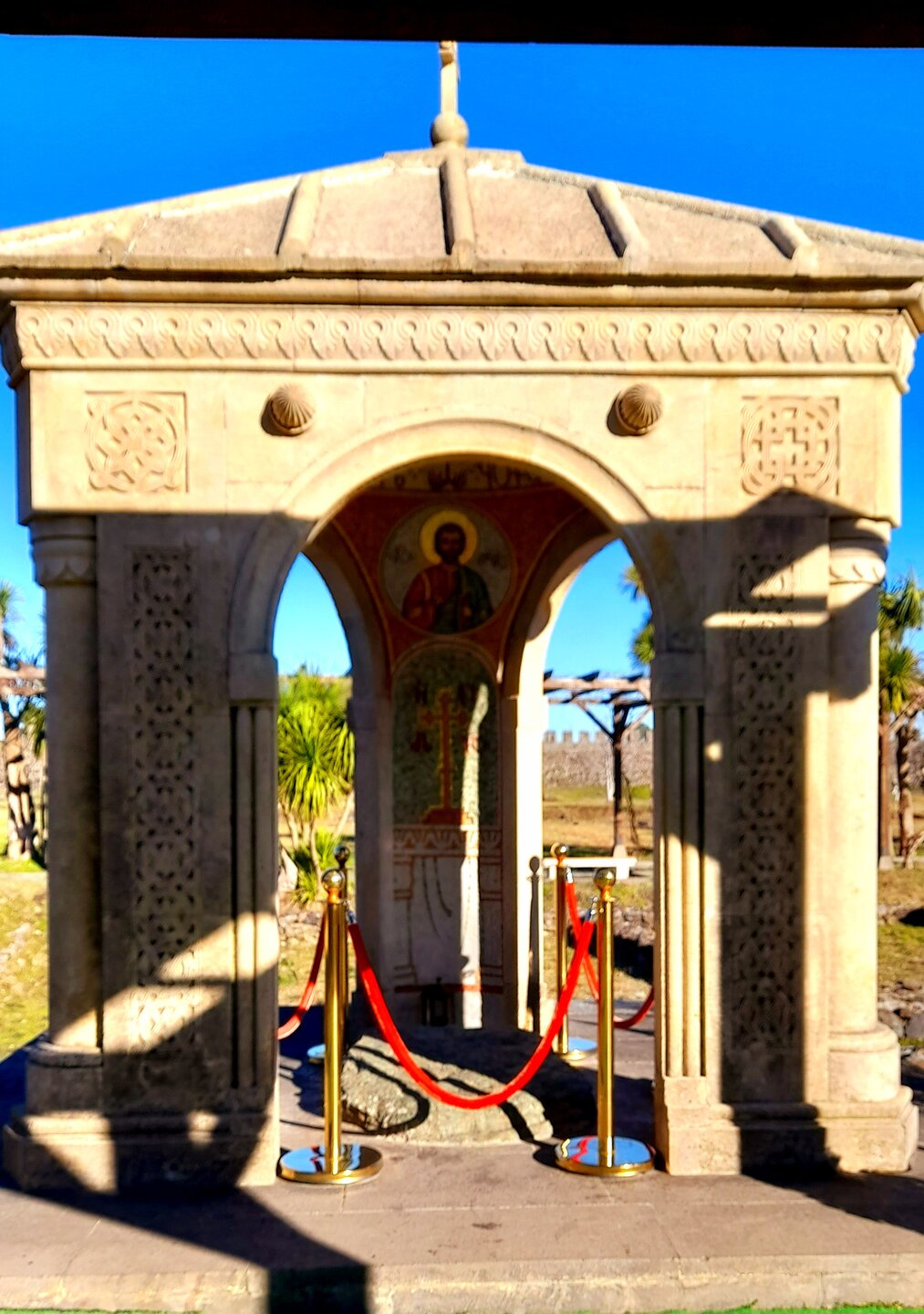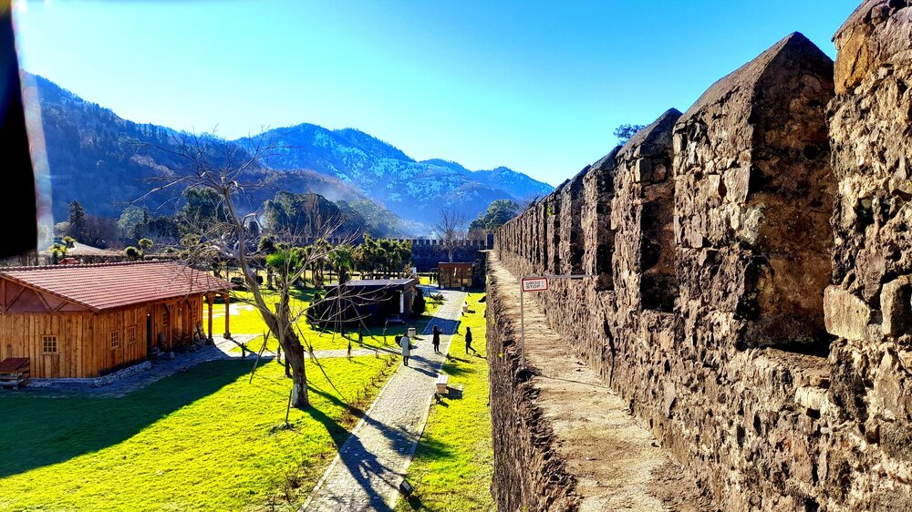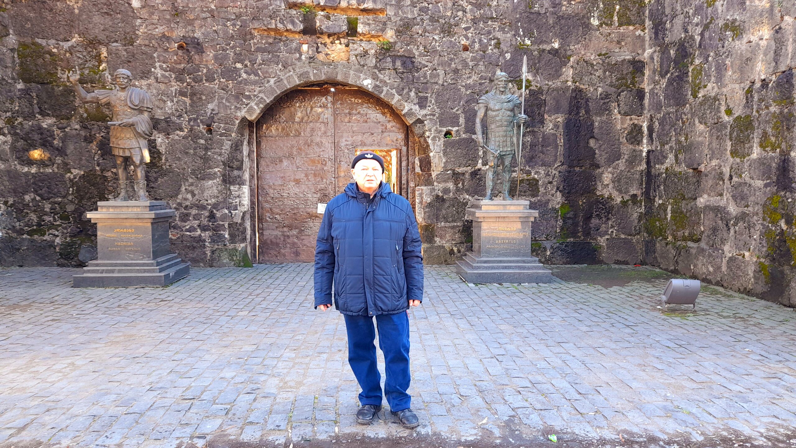 ГОРНАЯ АДЖАРИЯ. часть 1-я. 3 января. Эту групповую экскурсию я не мог пропустить, трижды её бронируя на разные дни. И причиной тому не только моя задержка в Краснодаре, но и ливни, накрывшие Батуми в предыдущие дни. Поэтому в последний момент я поменял местами посещение парков и садов и горной Аджарии, чтобы после дождей в горах было как можно меньше грязи. Похоже, это было ошибочное решение. Парки могли открыться 3 января (хотя это не точно), а экскурсия в Горную Аджарию была проведена и накануне. Собрав желающих на эту экскурсию по городу, мы первым делом поехали в Сарпи, к пограничному переходу в Турцию (всё что на фото за красным флагом - уже Турция). За несколько сотен метров от этого перехода находится наша первая локация - памятник апостолу Андрею Первозванному и водопад. Скульптура стоит на шоссе, тоже носящем имя апостола — в ознаменование того, что именно этим путём Андрей пришёл в Грузию, где начал проповедовать христианство и посвятил в сан первых грузинских священников. Побережье Чёрного моря, которое тогда называли Гостеприимным (Понтом Эвксинским), стало первым местом, куда направился Святой Андрей после того, как 12 апостолов, бросив жребий, разделили между собой земли, куда они понесут слово Божие. Возвращаемся назад и вскоре останавливаемся у крепости Гонио. Ей уже около 2000 лет. Это был римский форпост под названием Апсарос, в 15 км к югу от Батуми, недалеко от турецкой границы. От римлян крепость перешла к византийцам, а в Средние века здесь располагалась фактория генуэзцев. Сейчас это музей, где периодически устраивают костюмированные гладиаторские бои и театрализованные представления. Здесь же и могила под красивым каменным навесом апостола Матфея (который написал "Евангелие от Матфея"), но эту версию оспаривает итальянский Салерно. Оплачиваю 10 лари и у меня минут 40 на её осмотр. Вот здесь предполагаемая могила апостола Матфея. Ну а теперь сворачиваем с приморской дороги и поднимаемся в горы Аджарии...