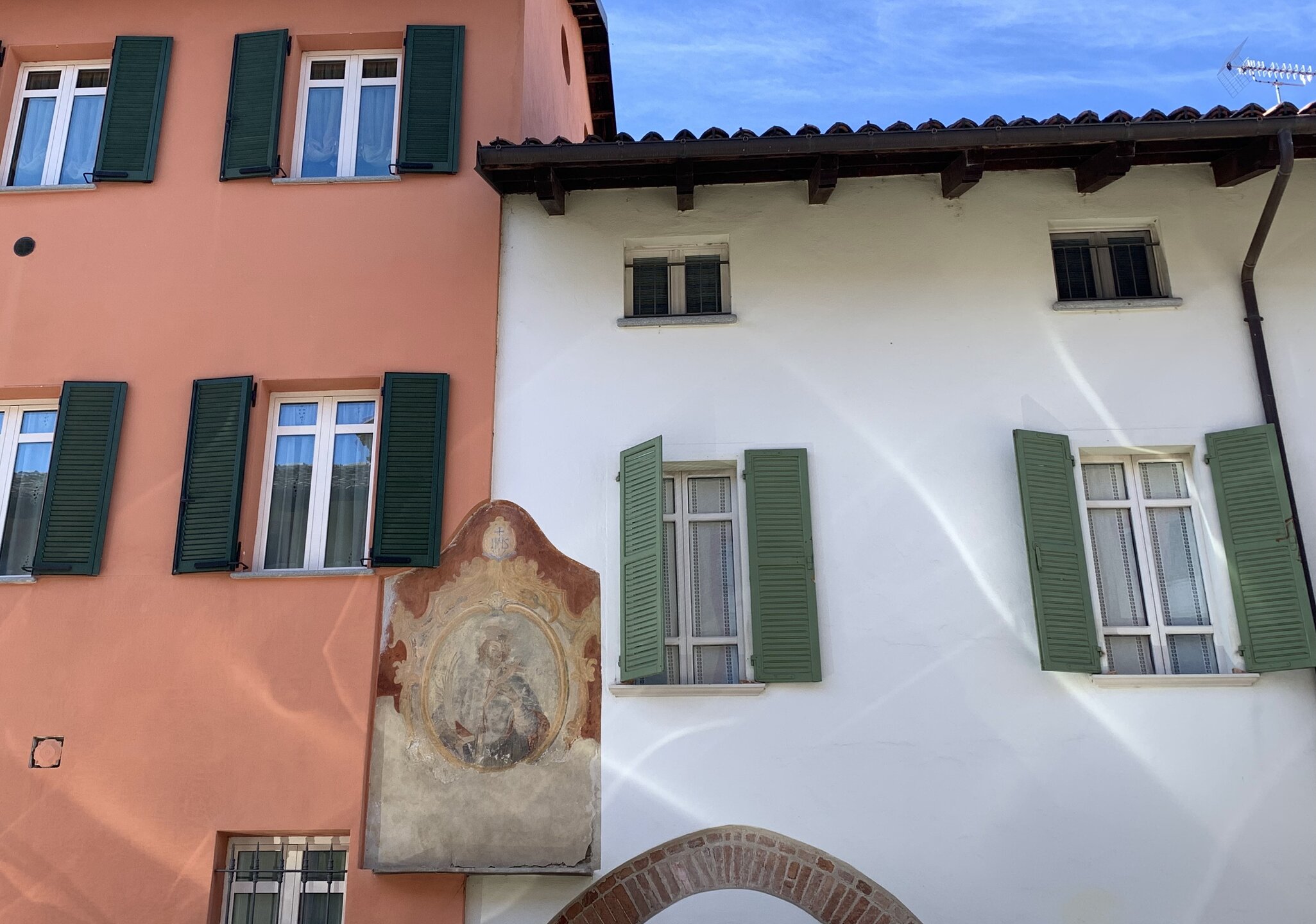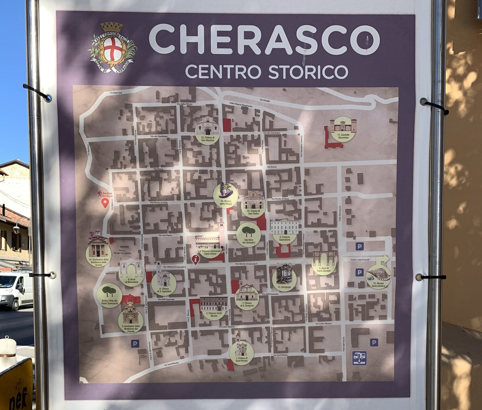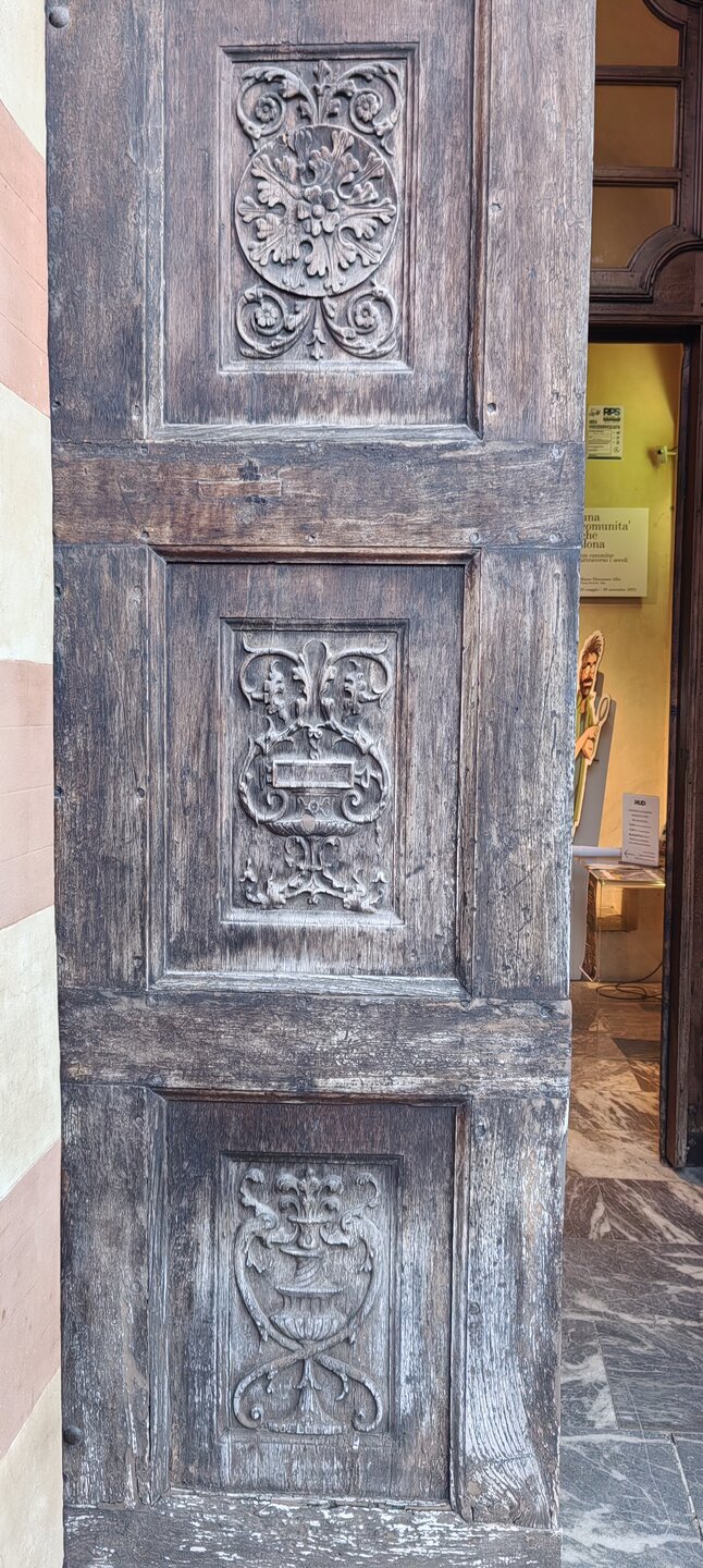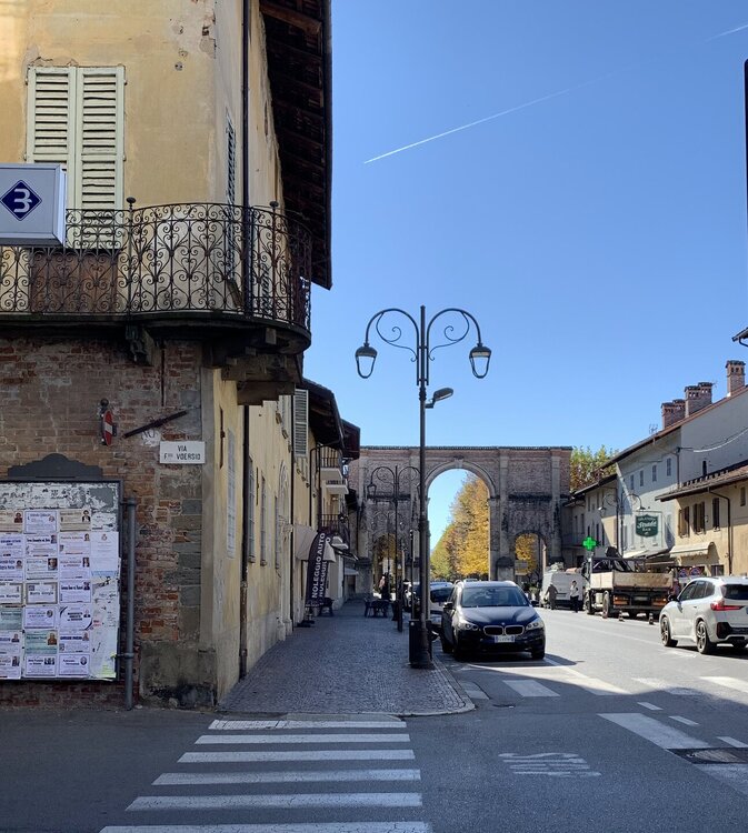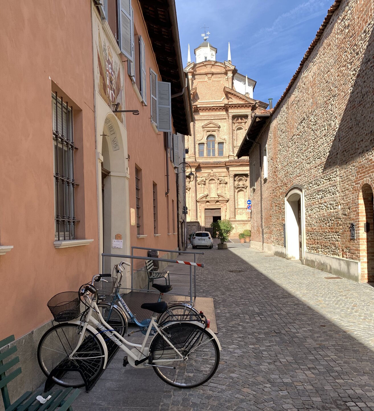 Утром после вкусного завтрака, включенного в стоимость, я переехала в Il Seminario. Заселяться было ещё рано, и мне дали ключ от комнаты с историческим "хламом", где я смогла оставить свои вещи. Свободна! Теперь можно отправиться на реализацию своих планов. А в планах в этот день был небольшой городок Кераско. Первоначально выбор был между ним и Асти. Но так как я любитель небольших городов, победил Кераско. Сначала на поезде за 20 минут доехала до Бра. На обратном пути ещё прогуляюсь здесь, а пока сажусь в небольшой микроавтобус типа нашей маршрутки и еду в Кераско. От Бра до него всего 6 км, автобусы, по итальянским меркам, ходят часто. Кераско. На въезде в историческую часть города щит с надписью «Кераско – город истории и искусства. Планировка его прямых улиц города – крепости сохранилась еще со времен римской эпохи. Заблудиться здесь сложно, городок небольшой, обойти его весь не понадобится много времени. Несколько палаццо, семь церквей, остатки бастиона и замок украшают его улицы. Автобус провез меня немного дальше исторического центр, и в город я вошла через арку Порта Нарзоле, которая когда-то была главным путем въезда в город. А в конце этой центральной улицы via Vittirio Emanuele II можно увидеть белую арку Бельведере, воздвигнутую жителями Кераско в благодарность Мадонне дель Пополо за то, что она уберегла жителей от чумы в 17 веке. Главная церковь города, посвященная Мадонне дель Попполо, находится неподалеку. Освятили ее к началу 18 века, а архитектором является местный уроженец Себастьян Таррико. Церковь красивая и очень светлая внутри. Купол выполнен в виде восьмиугольника. Рядом с церковью небольшой ботанический сад, находящийся сейчас в ведении кафедры лесоводства Туринского университета. Здесь растут как съедобные растения, так и декоративные цветы. За этим садом на протяжении веков ухаживали отцы-сомаски, которые создали его как для выращивания растений, в том числе съедобных, так и для медитаций. Палаццо Готти 17 века и дверям столько же лет. Новые экспонаты в мою коллекцию ручек и стучалок.