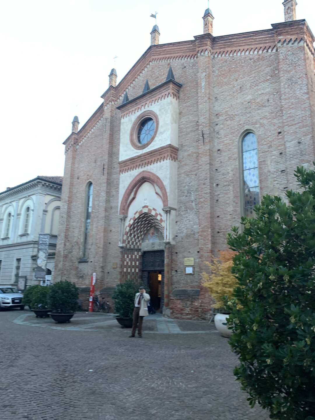 Альба ( продолжение). Бронь в этом отеле с прекрасным расположением у меня была только на одну ночь, на следующее две ночи я выбрала более бюджетное жилье. На воскресенье у них мест не было, а с понедельника любители белого трюфеля разъехались, и я смогла заселиться в гостевой дом Il Seminario Vescovile di Alba, Епископальную семинарию, основанную в 1567 году и до сих пор служащей школой, с не менее прекрасным расположением и богатой историй. Семинария в Альбе была одной из первых семинарий в Италии (и в мире) после миланских (1564 г.). Рим (1565) и Турин (1566). В начале XIX века семинария пережила период серьезного упадка после грабежей и разрушений. Епархия Альбы была упразднена, а имущество семинарии было распродано в 1803 году. Сама семинария, по сути, использовалась для размещения французских войск, которые ее разграбили. Наполеону было направлено ходатайство о ее повторном открытии, которое должно было состояться в 1818 году. Вместо этого реставрация началась в 1819 году. В 2014 году руководство семинарии приняло решение переоборудовать небольшую часть здания в «Дом религиозного гостеприимства» Номера простенькие, но чистые с просторным санузлом. Чайника не было, но, как потом обнаружила, в общей комнате есть кофемашина, чайник и микроволновка. Можно взять завтраки, а также обеды и ужины. Жильем этим я осталась очень довольна и если вдруг судьба еще раз забросит в Альбу с удовольствием поселюсь снова в Il Seminario. Днем я путешествовала по окрестностям, а вечерами гуляла по Альбе, благо исторический центр компактный, всё в шаговой доступности от отеля. Совсем рядом Церковь Святой Катерины, используется для богослужений православной общины. Внутрь не попала, церковь постоянно была закрыта. Театр Giorgio Busca тоже рядом. Его уникальность заключается в двойной архитектурной конфигурации: с одной стороны — исторический зал XIX века в форме подковы (зал Марианны Торты Моролин ), а с другой — современный зал с партером и галереей (зал М. Аббадо ). Между ними расположена единая центральная сцена, соединяющая старое и новое. Чуть дальше Церковь церковь Сан-Доменико XIII века. Во время Наполеоновских войн использовалась как конюшня, а затем была отреставрирована и обновлена. Сегодня она не действует, в ее стенах проводятся различные культурные мероприятия. Но на стенах можно разглядеть чудом уцелевшие средневековые фрески. Главная архитектурная достопримечательность Альбы находится на площади Рисорджименто. Это кафедральный собор Сан-Лоренцо, или, как его называют местные, Дуомо-ди-Альба. Храм 14 века построен на месте древнеримского святилища. На внешнем фасаде установлены четыре статуи с символами евангелистов (ангел Матфея, лев Марка, бык Луки и орел Иоанна), чьи инициалы (Ангел, Лев, Бык и Орёл) образуют название города. Прекрасный интерьер: нефы украшены крестовыми сводами, расписанными под звёздное небо. Особенно впечатлил деревянный хор XVI века с тридцатью пятью инкрустированными сиденьями. В Соборе находится серебряный реликварий с головой Сан Теобальдо. Современные элементы: крестильная купель и сетка из лампочек. В Соборе расположен музей с историческими артефактами и шедеврами искусства. По подземным помещениям проводятся экскурсии. Когда-то Альба была городом ста башен, но до настоящего времени «дожили» не все. Цены за бокал вина. Бароло и Барбареско самые дорог