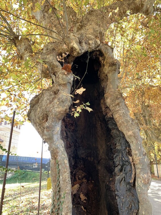 Продолжим прогулку по парку. Парк ухоженный, повсюду указатели с номерами, понятно направление движения. И цветущих растений достаточно, может они не такие яркие, как весной, но добавляют красок в осеннюю палитру. Маленькая долина. Видела фото весной, но осенью она не менее красива. Очень заинтересовало это необычное дерево, раскинувшее свои толстые ветви- стволы на несколько метров. Davidia Involucrata (Давидия обёрточная). Образец, посаженный в 1938 году инфантом Испании Доном Хайме в "Prato del Personalita", приобрел такие размеры, что представляет интерес даже в отсутствие ярких соцветий. Растение родом из Китая. Предполагаемый возраст этого дерева более 100 лет, высота 15 метров. Весной это дерево эффектно цветёт с образованием округлых соцветий, которые качаются на ветру, как куски ткани. Поэтому его еще называют «дерево-платок». Фото из интернета. Большой каскад – с эффектными цветниками, создающий красивое зрелище. Пруд. Лимонарий. Вилла закрыта для посещения. Здесь находится официальная резиденция префектуры провинции Вербано-Кузио-Оссола. Понравился этот небольшой пруд с ирисами. В стиле Моне) Сверху открывается вид на город И на озеро Маджоре. Парк Виллы Таранто мне очень понравился, он прекрасен в любое время года, и я ничуть не пожалела, что непогода изменила мои планы.