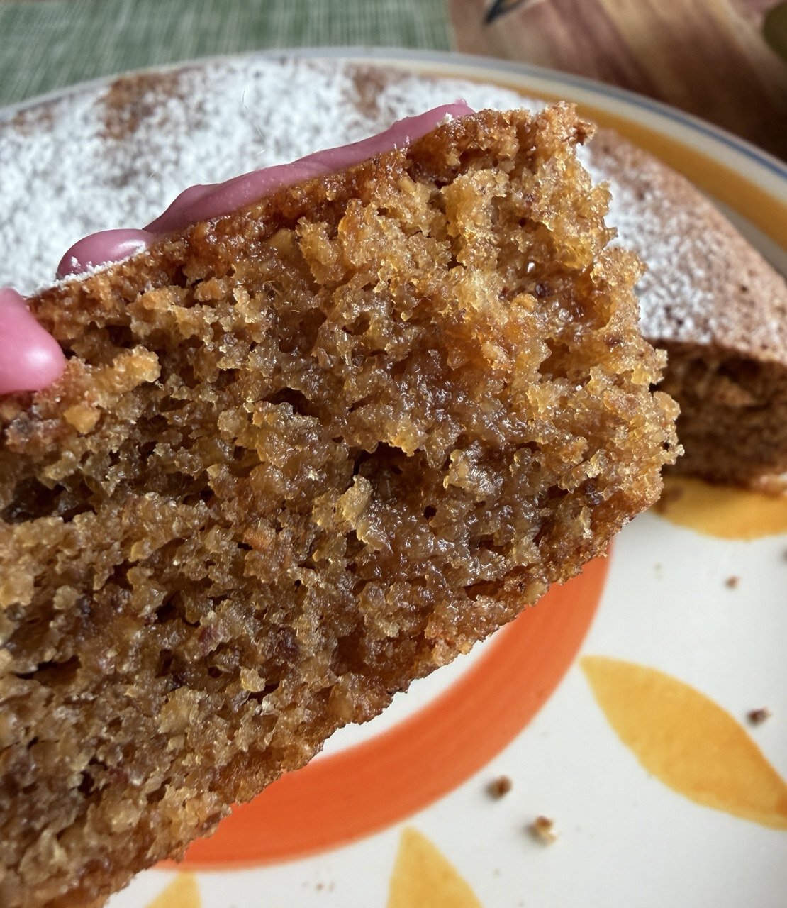 Это больше похоже не на муку, а на мелко молотые орехи и смесь не сухая. Не догадалась сделать фото. Орехи рекомендуют обжарить перед помолом. Если смесь сухая получится, можно немного сливочного масла добавить, но немного, а то в некоторых рецептах читала про 150гр😦 Иногда добавляют пшеничную муку, но я думаю, что без неё вкуснее и безглютеновый:) пирог получается. Я в эту поездку два раза его пробовала, про первый уже упоминала, в Вербании, и этот был очень вкусный. А вот второй раз мне не понравился, и вот сейчас думаю, что в тот пирог была мука добавлена.