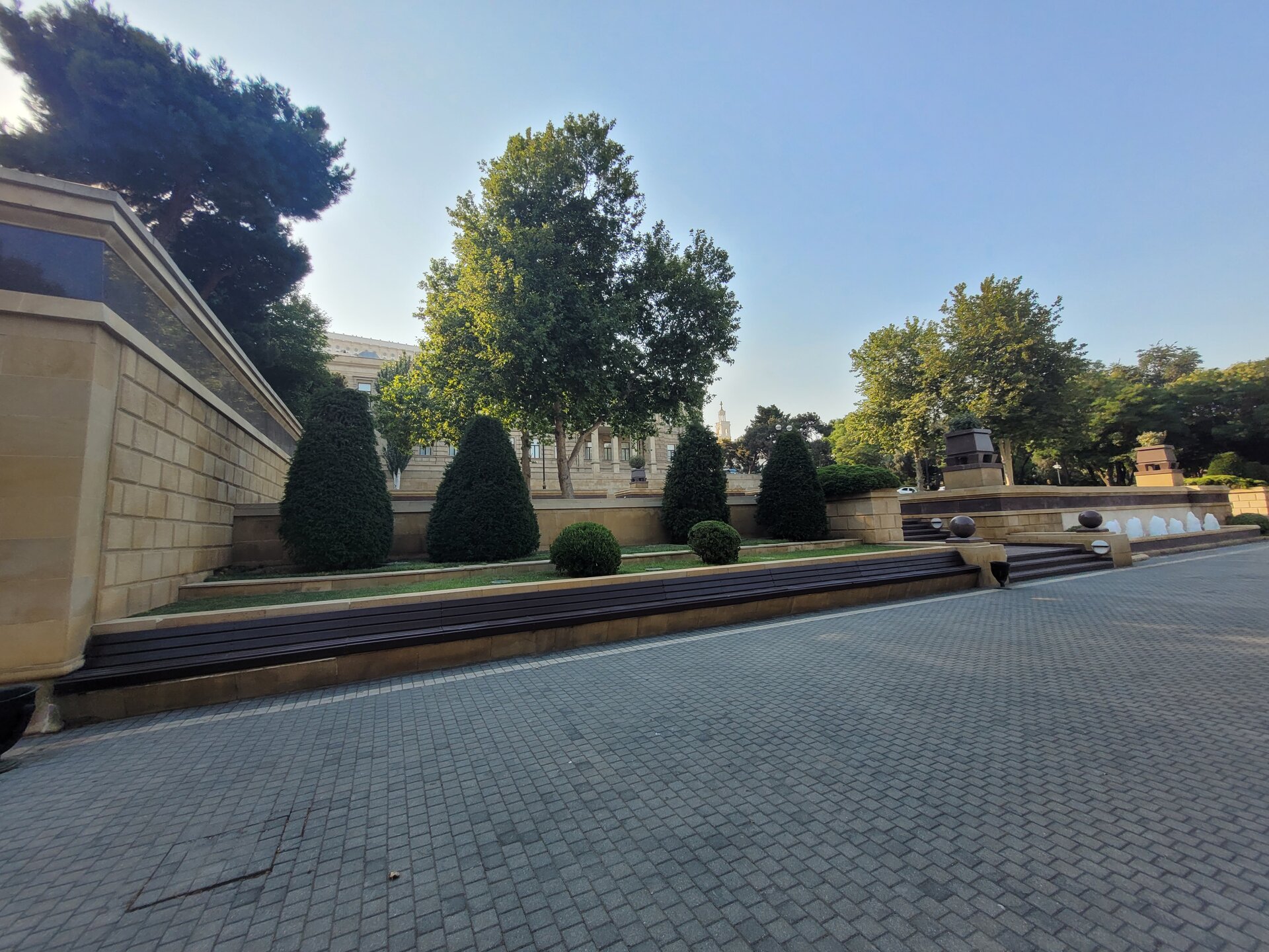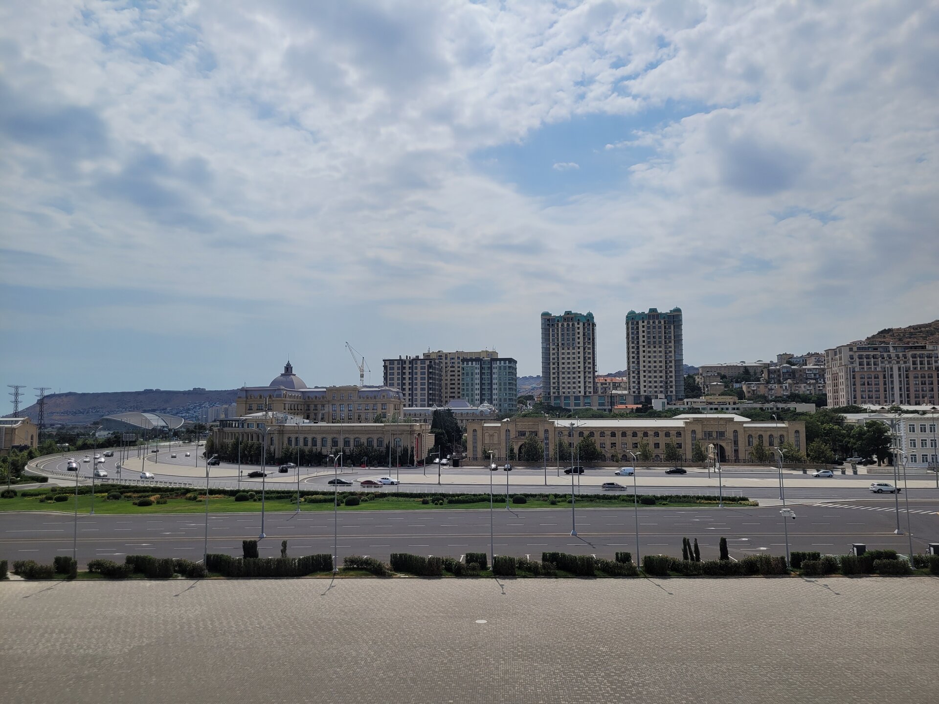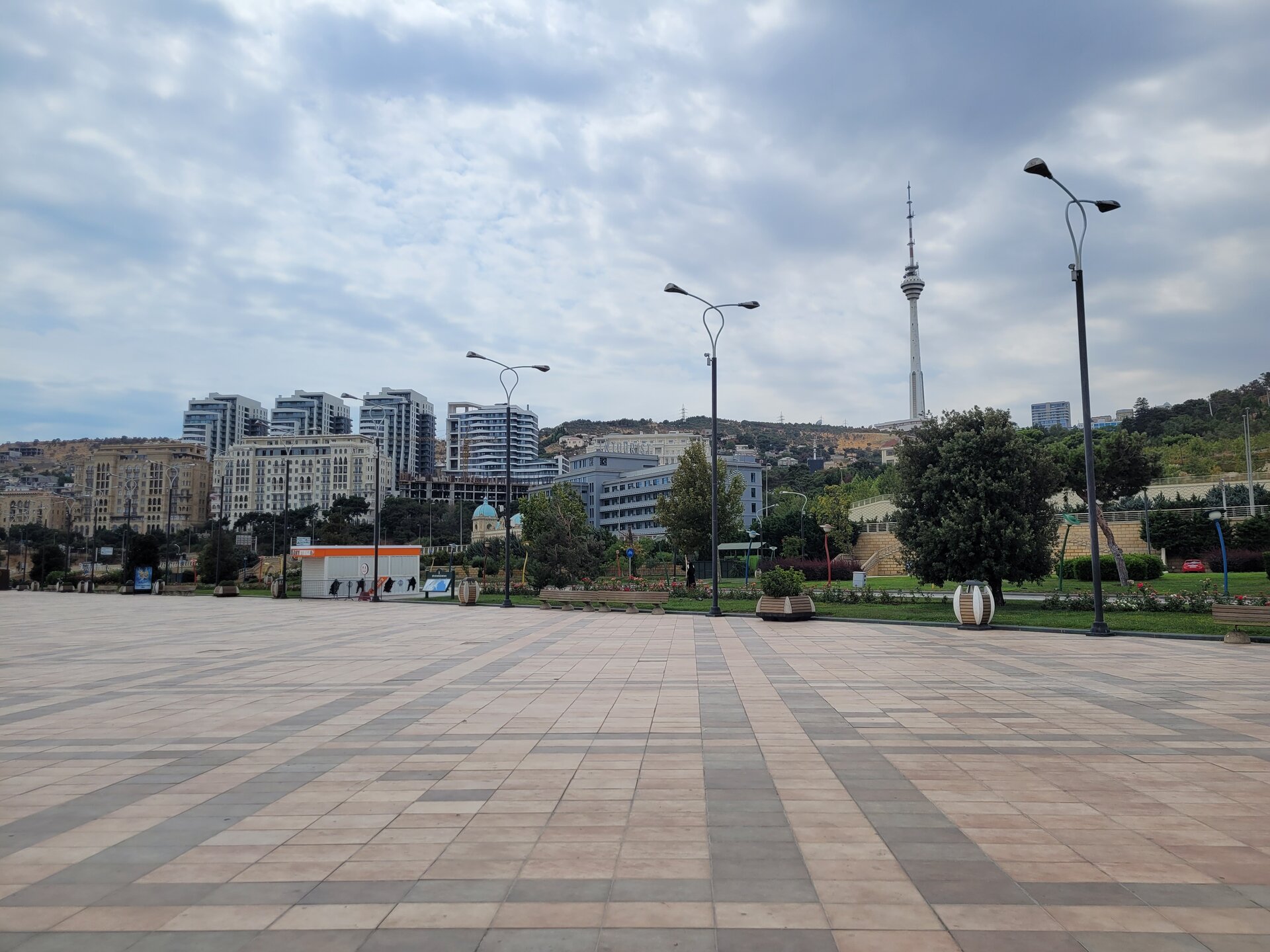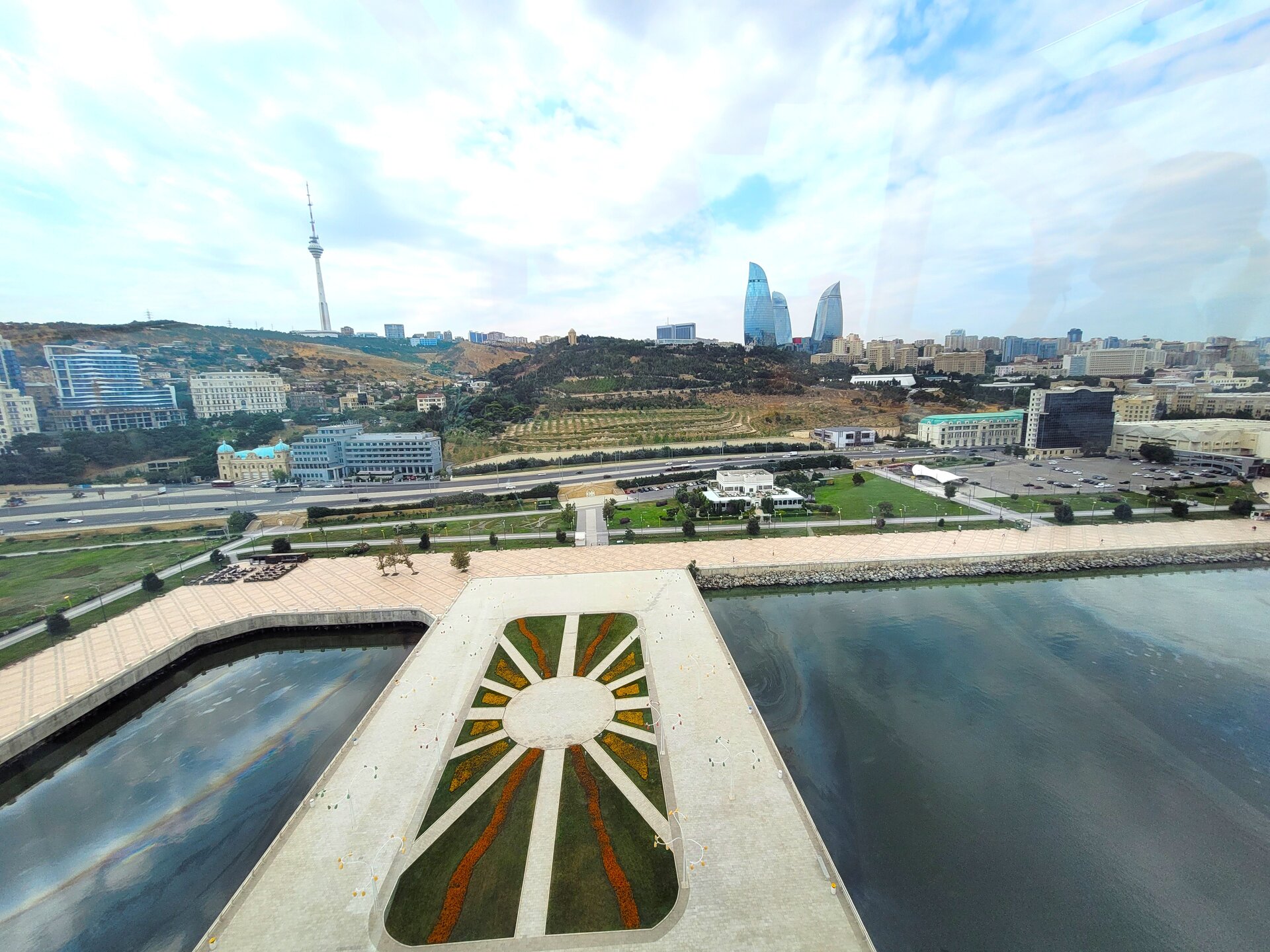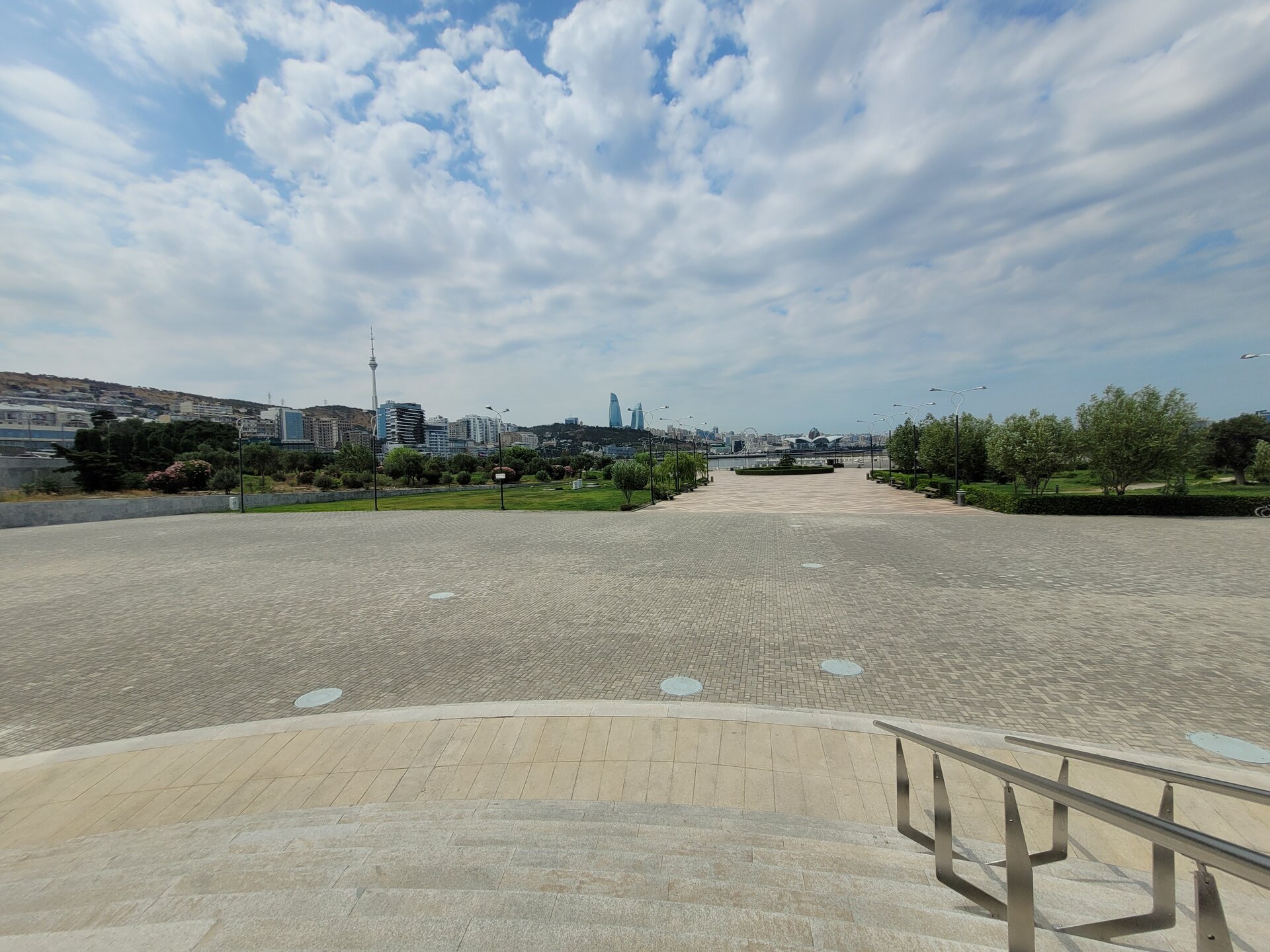 И что ещё большой плюс, именно отсюда открываются довольно впечатляющие виды на город. Здесь вроде как смотровая площадка. Мы когда поднимались, уже стали фотографировать эти виды на город. И отсюда было видно ещё одну значимую достопримечательность Баку, тот самый "Кристалл холл". Ну что, подойдём к нему поближе?
