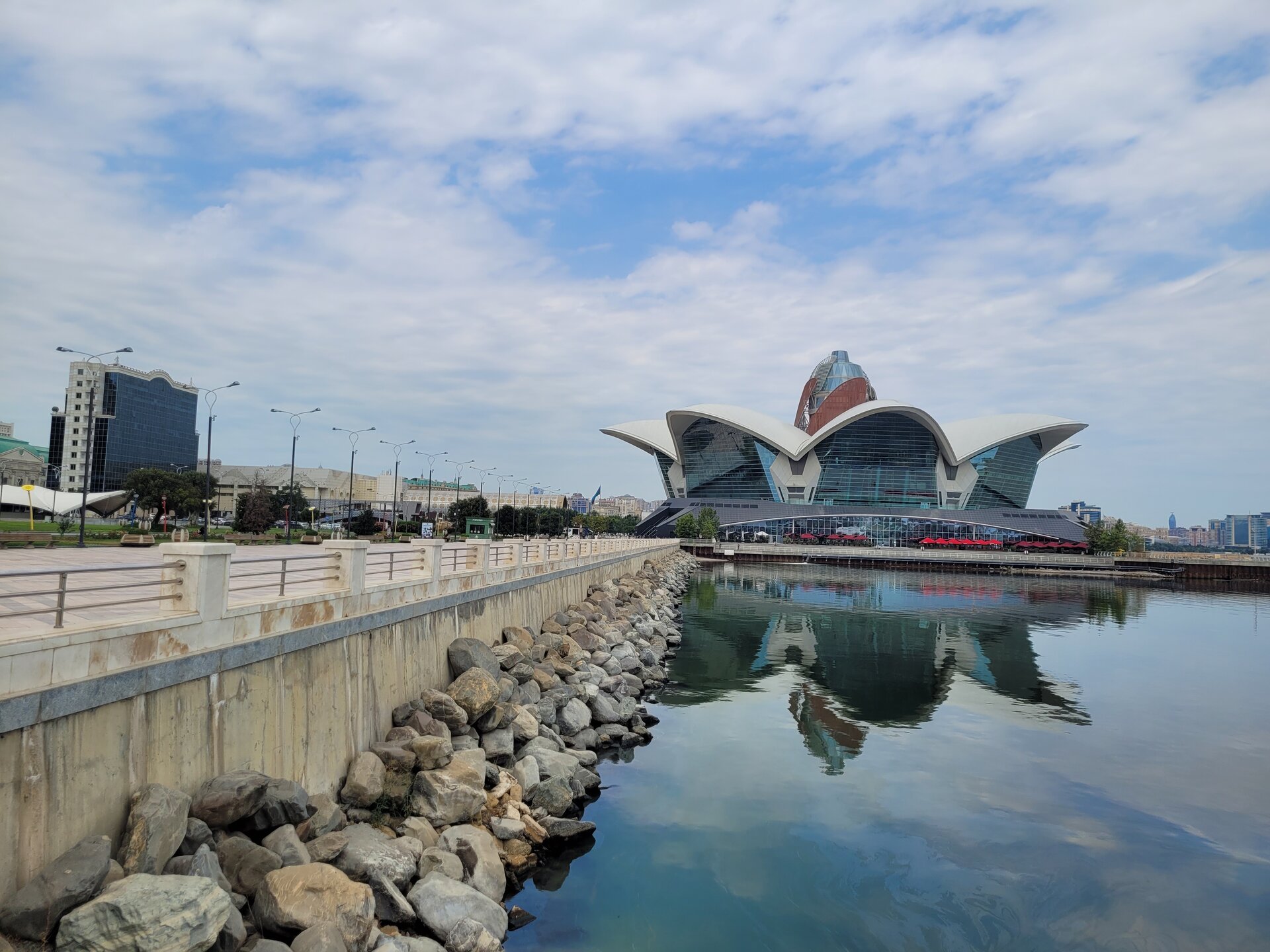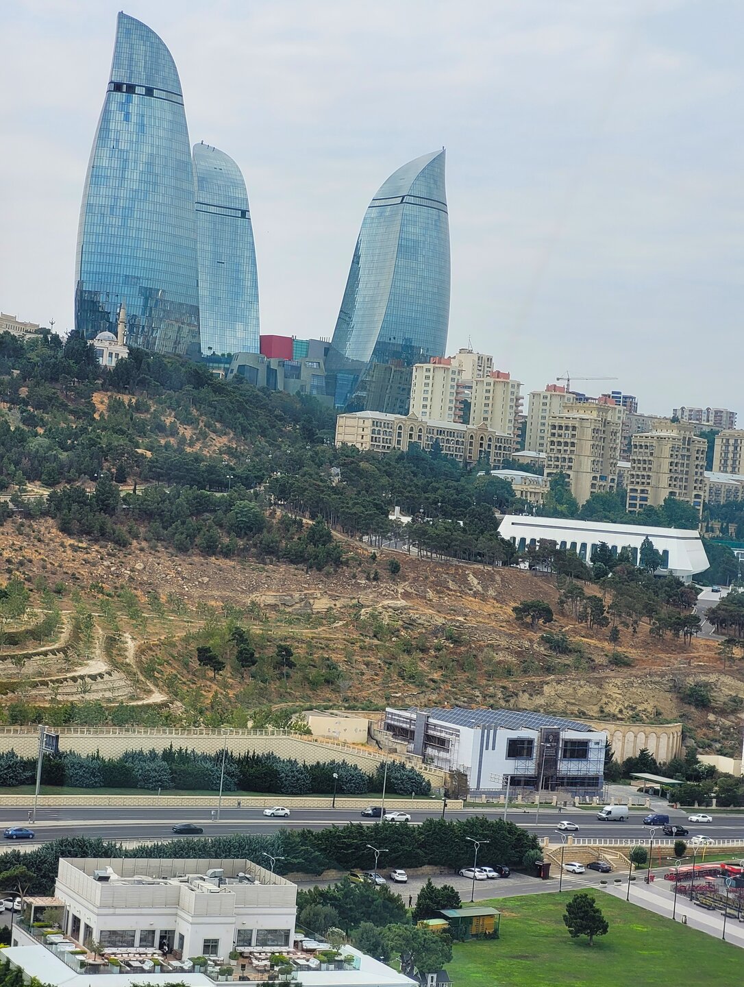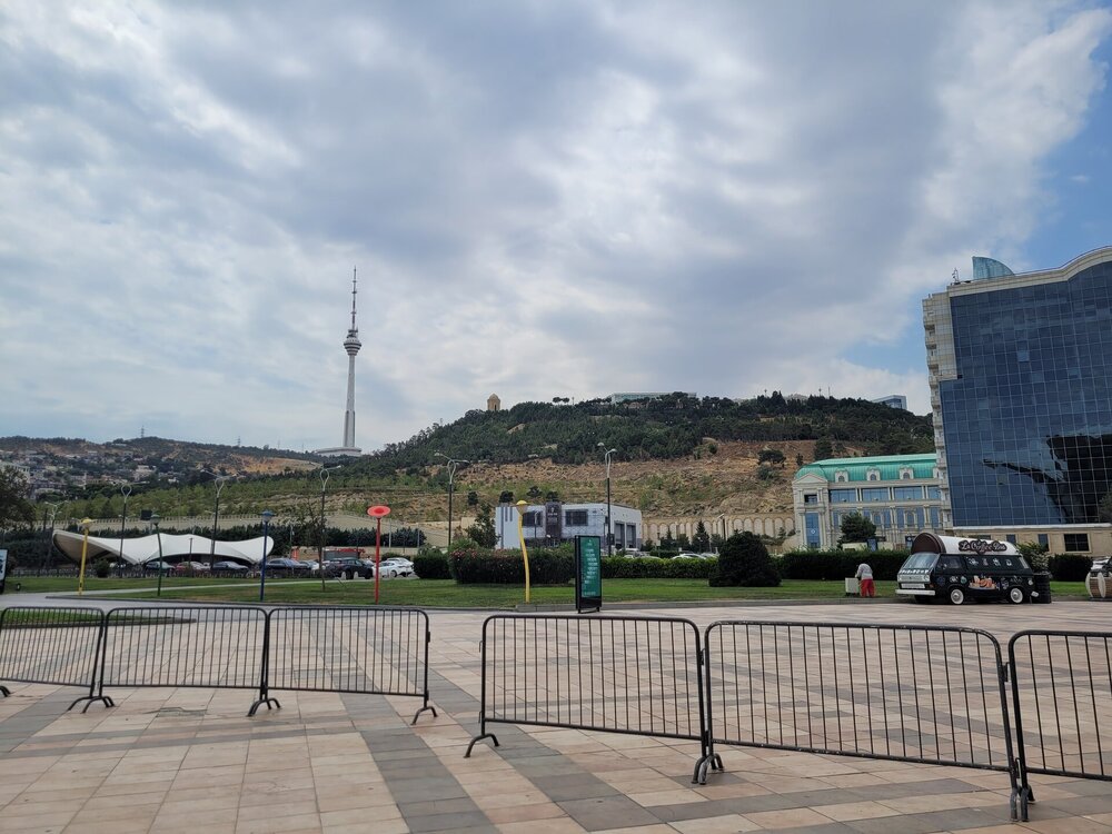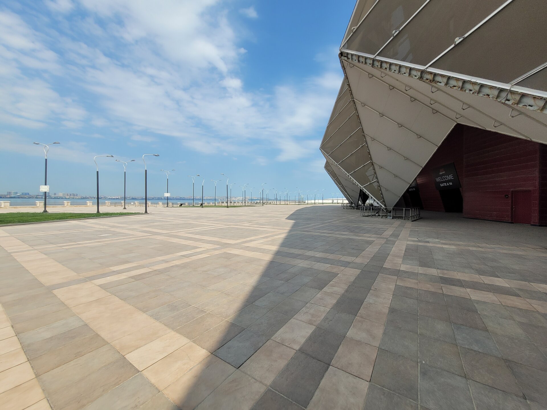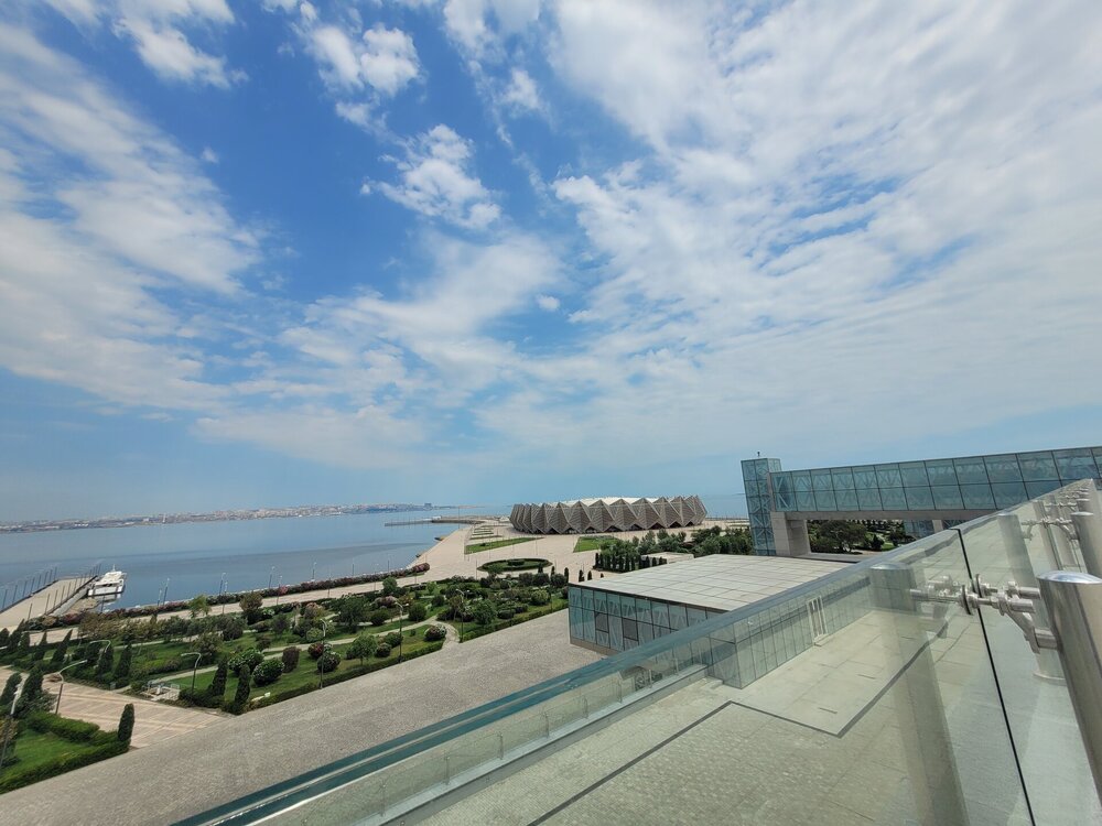 И что ещё большой плюс, именно отсюда открываются довольно впечатляющие виды на город. Здесь вроде как смотровая площадка. Мы когда поднимались, уже стали фотографировать эти виды на город. И отсюда было видно ещё одну значимую достопримечательность Баку, тот самый "Кристалл холл". Ну что, подойдём к нему поближе?