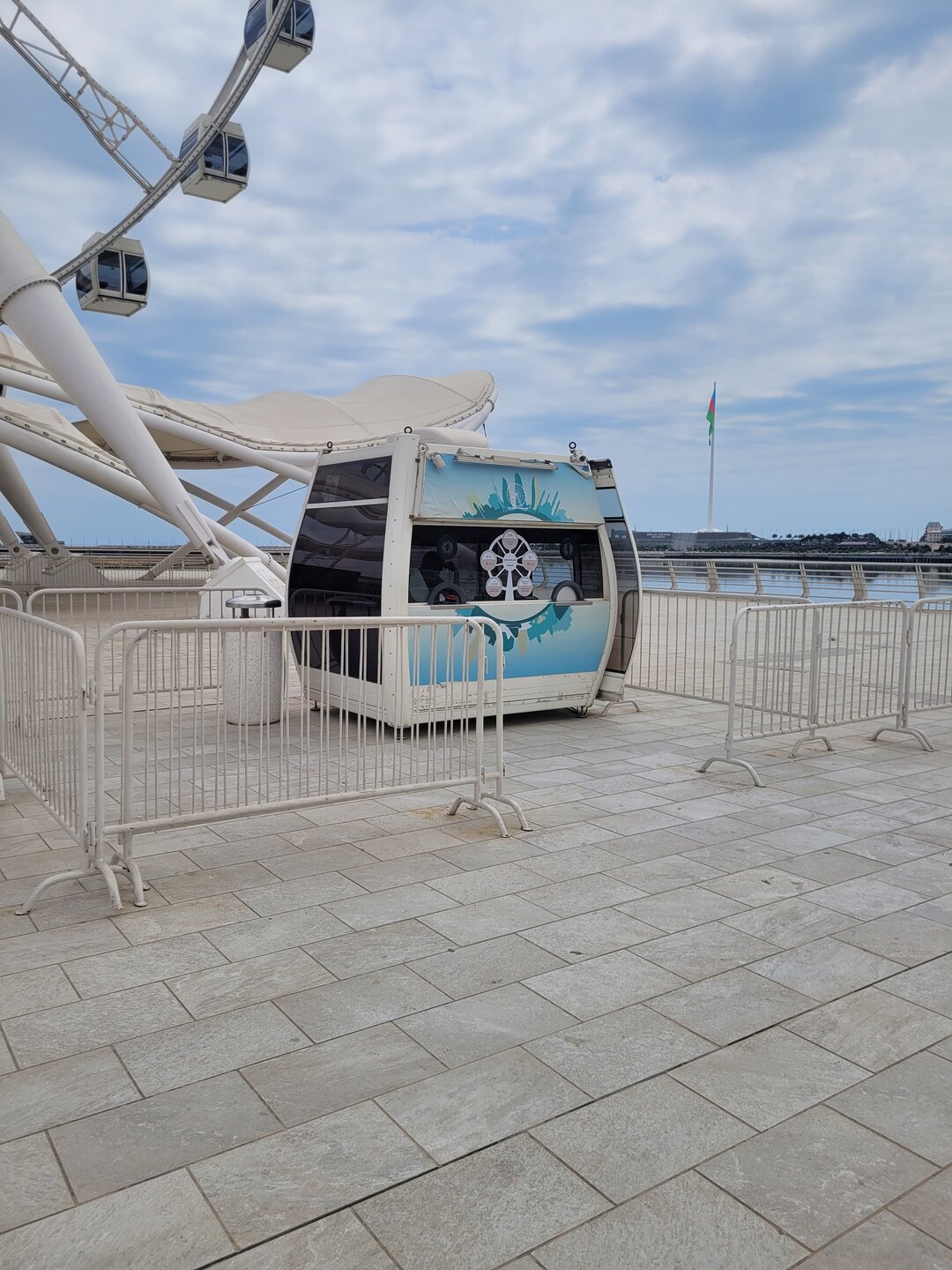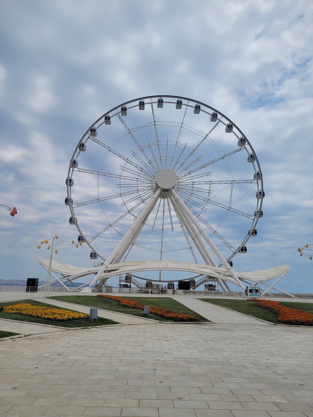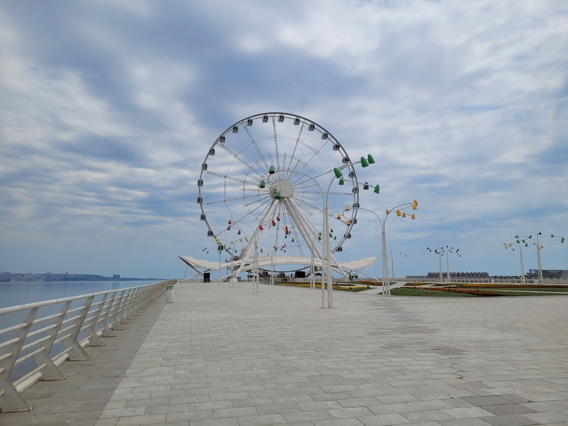 Гуляя по набережной, пройти колесо обозрения не получится, уж очень удачно оно расположено И именно колесо обозрения предлагает посетителям уникальную возможность насладиться захватывающими панорамными видами. С его высоты открывается великолепный обзор как на современный городской пейзаж Баку, так и на бескрайние морские просторы. Поездка на колесе обозрения позволяет оценить масштаб города и красоту его прибрежной линии. Но есть одно но... это блики. Увы, от них никуда не деться. Безусловно, будучи в Баку, на колесе обозрения прокатиться стоит. Даже если и не получится сфотографировать всё без бликов, зато с высоты птичьего полёта открывается великолепный вид на Баку и на Каспийское море