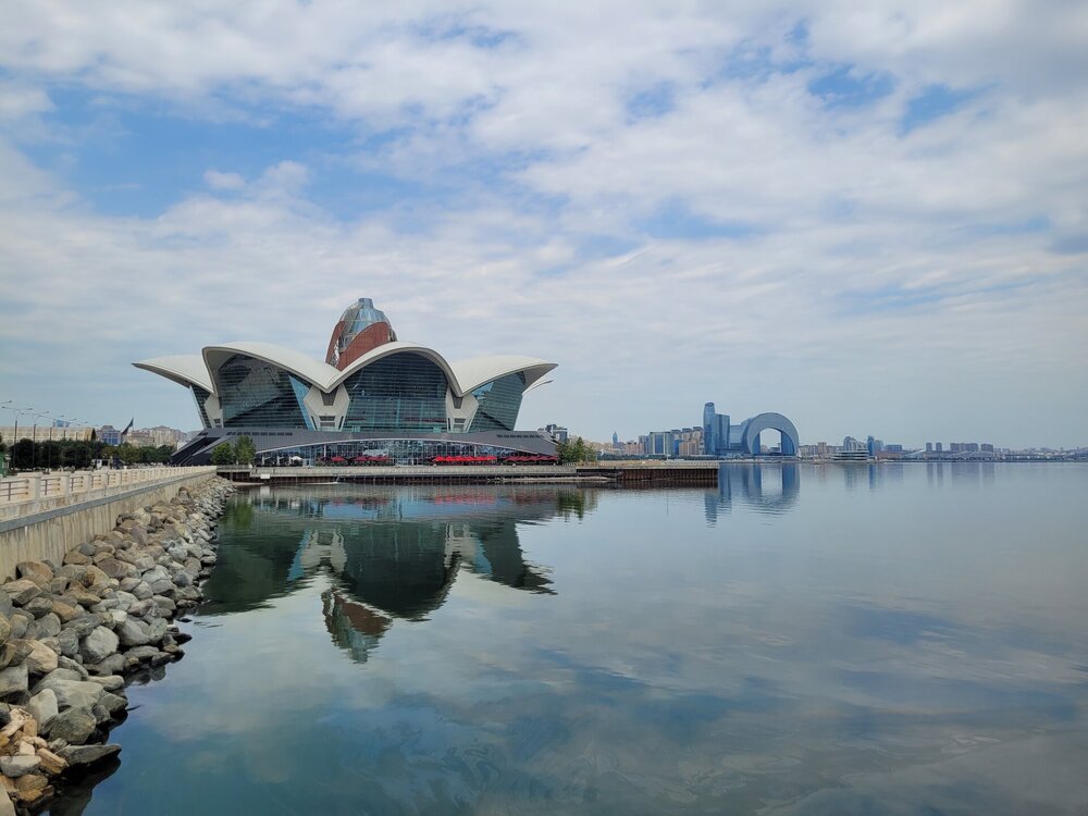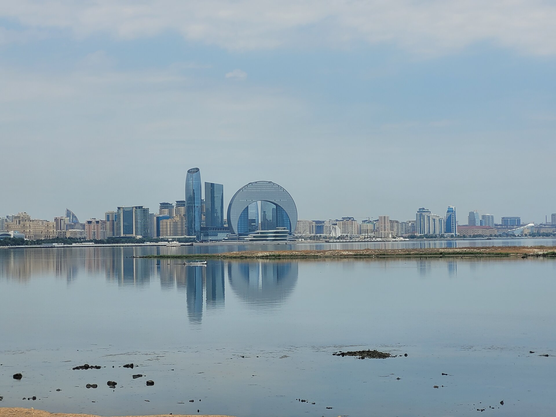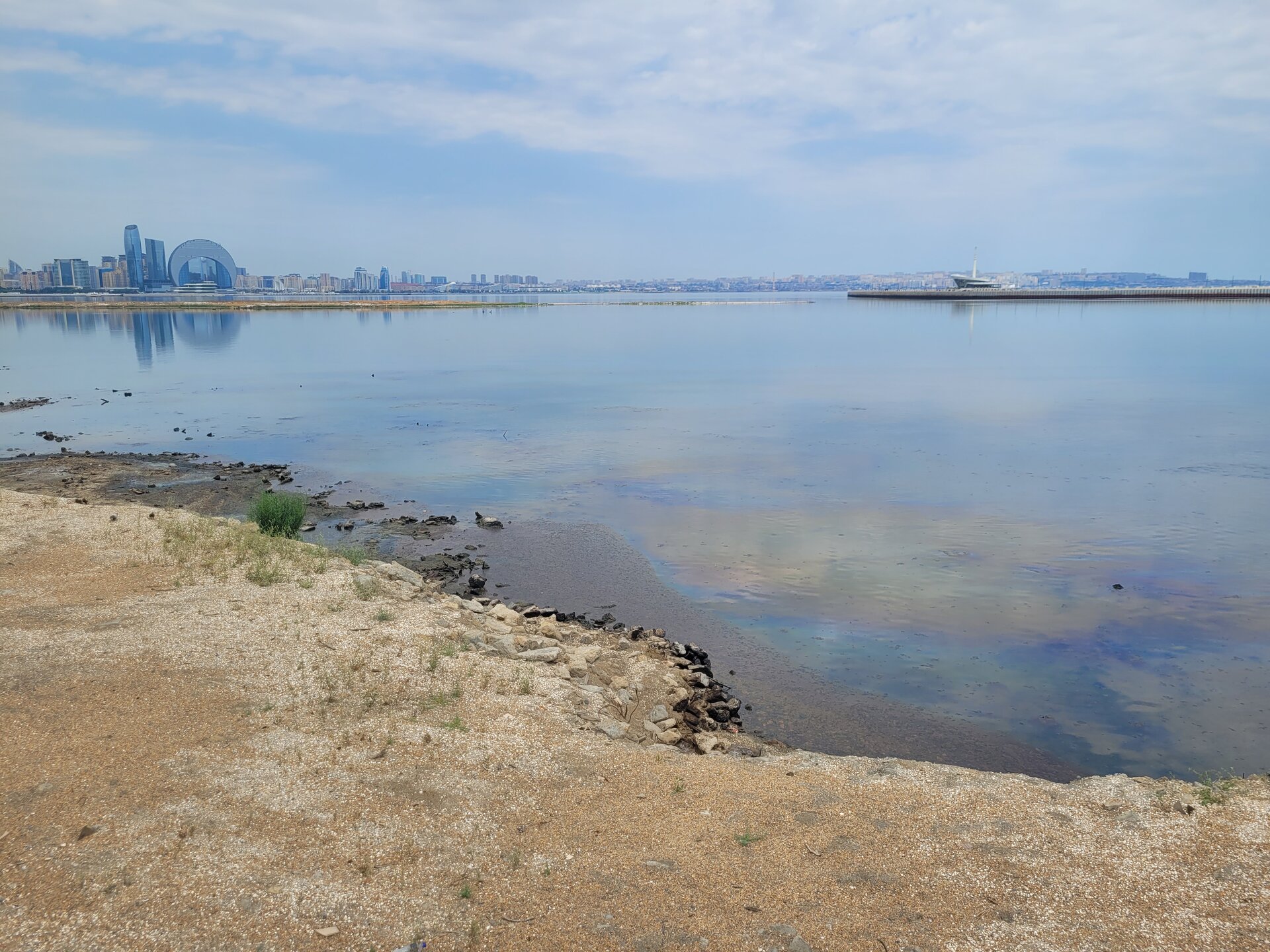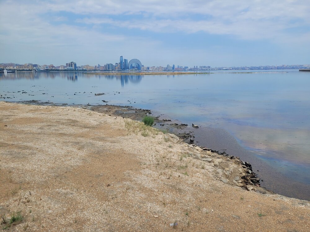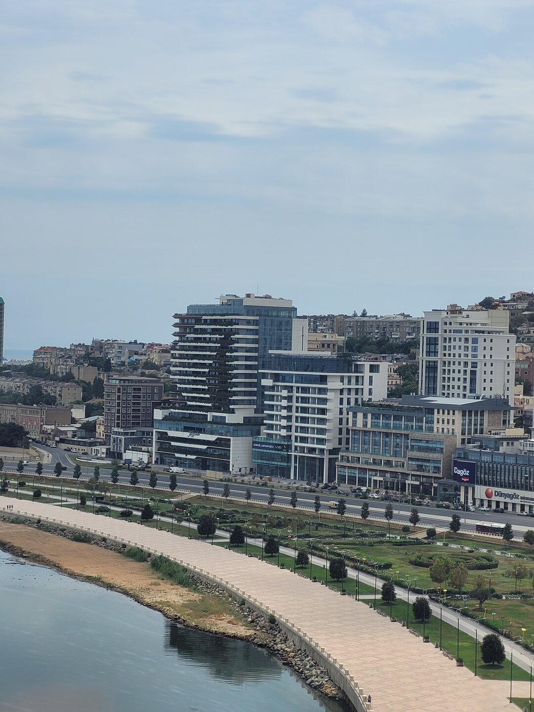 После колеса обозрения мы пошли дальше вдоль Каспийского моря, которое по сути оставляло желать лучшего и не просто так в пределах города запрещено купаться. Вряд ли найдутся такие отважные люди, которые захотят искупнуться в такой водичке. / Отсюда открывался впечатляющий вид на противоположный берег. Ещё раз повторюсь, именно около того здания, в виде полумесяца и можно посмотреть цветомузыкальный фонтан. И совсем недавно мы были практически там. Ну, идём дальше по Бакинскому бульвару, который часто часто называют «бриллиантовым ожерельем Баку». Это название как нельзя лучше отражает его красоту, особенно в вечернее время, когда включается подсветка. Бульвар играет важную роль в городской жизни, служа популярным местом для встреч, культурного досуга и просто приятного времяпрепровождения. Бакинский бульвар - это знаменитая набережная и одна из главных достопримечательностей Баку, столицы Азербайджана. Протянувшись на многие километры вдоль живописного побережья Каспийского моря, он по праву считается одним из самых красивых и ухоженных приморских парков не только в стране, но и во всем регионе. И сейчас о чём я жалею, что в один из вечеров мы в полной мере не прогулялись ещё раз по нему. А когда мы здесь гуляли днём, я честно сказать удивлялась, время вроде и не утреннее, но людей не было от слова совсем. Мы реально были одни. Ну, а наша цель - площадь Государственного флага, до которой нам было ещё идти и идти.