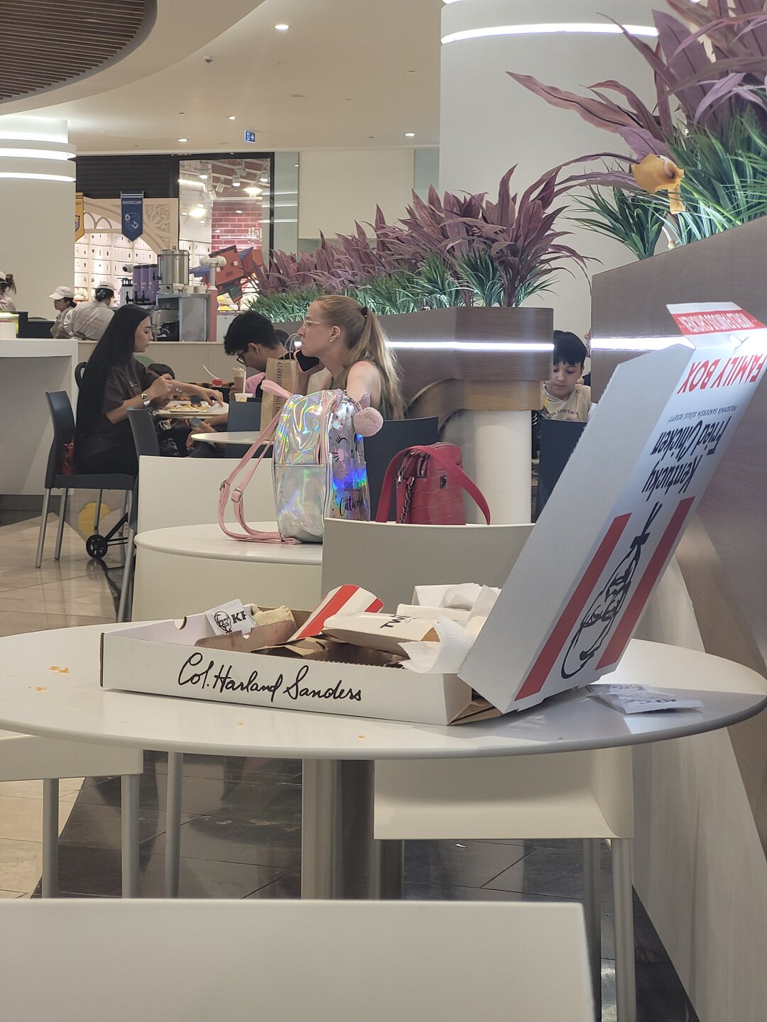 Я даже не знаю, сколько уже было время, но есть как-то хотелось. Будучи в других странах, мы всегда теперь посещаем Макдональдс и KFC, в этом плане Баку не стал исключением. И мы идём в торговый-развлекательный центр "Дениз Молл", который с самого начала, как только мы его увидели, напомнил нам здание сиднейской оперы. Что меня больше всего удивило в торговом центре? Ну, конечно, не реклама концерта Джастина Тимберлейка, который должен быть в Баку на следующий день. И не обилие разных бутиков, и не тем более сама атмосфера торгового центра. Меня удивили вот эти три брошенные сумки, которые стоят за столиком с коробкой. Мы спокойно сидели, кушали вкусняшку, тут я замечаю те самые сумки и не поняла, а сумки здесь вообще с кем? Они сами по себе? Я так была поглощена едой, что даже не заметила, как к этому столику подошли люди, положили сумки на стол, и отошли за едой. Я честно сказать шею свернула, так старалась смотреть по сторонам, но даже поблизости никого не увидела. Сумки просто стояли сами по себе. А у меня в голове крутился только один вопрос:" А что, так можно было сделать?". Потом, похожую ситуацию мы увидели в зоопарке. А ещё чуть позже у нас в "Магните". Я тогда тоже не поняла. Зашли двое мужчин, положили свои сумки и пакеты на стол и прошли в зал. Всё легко и просто. Помню, когда рассказывала про брошенные сумки в местном магазине, доча мне сказала: "Не иначе, как бакинцы". Ну, а тем временем, людей на Приморском бульваре заметно прибавилось. Заметно прибавилось людей и на фуникулёре, даже очень заметно.