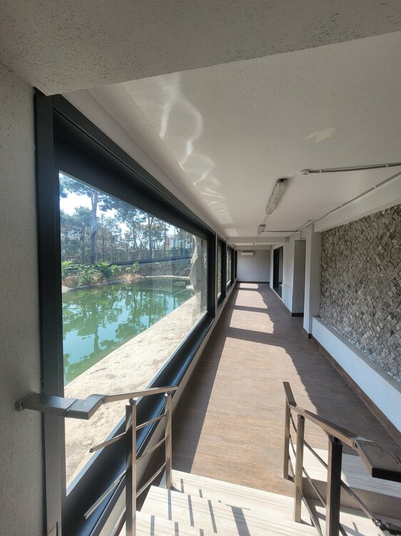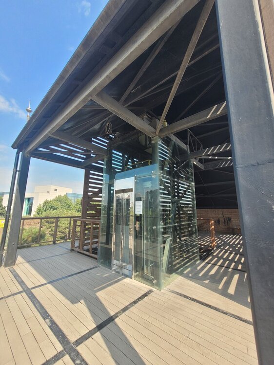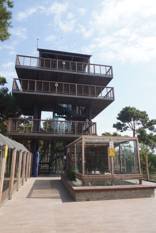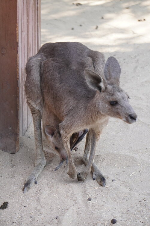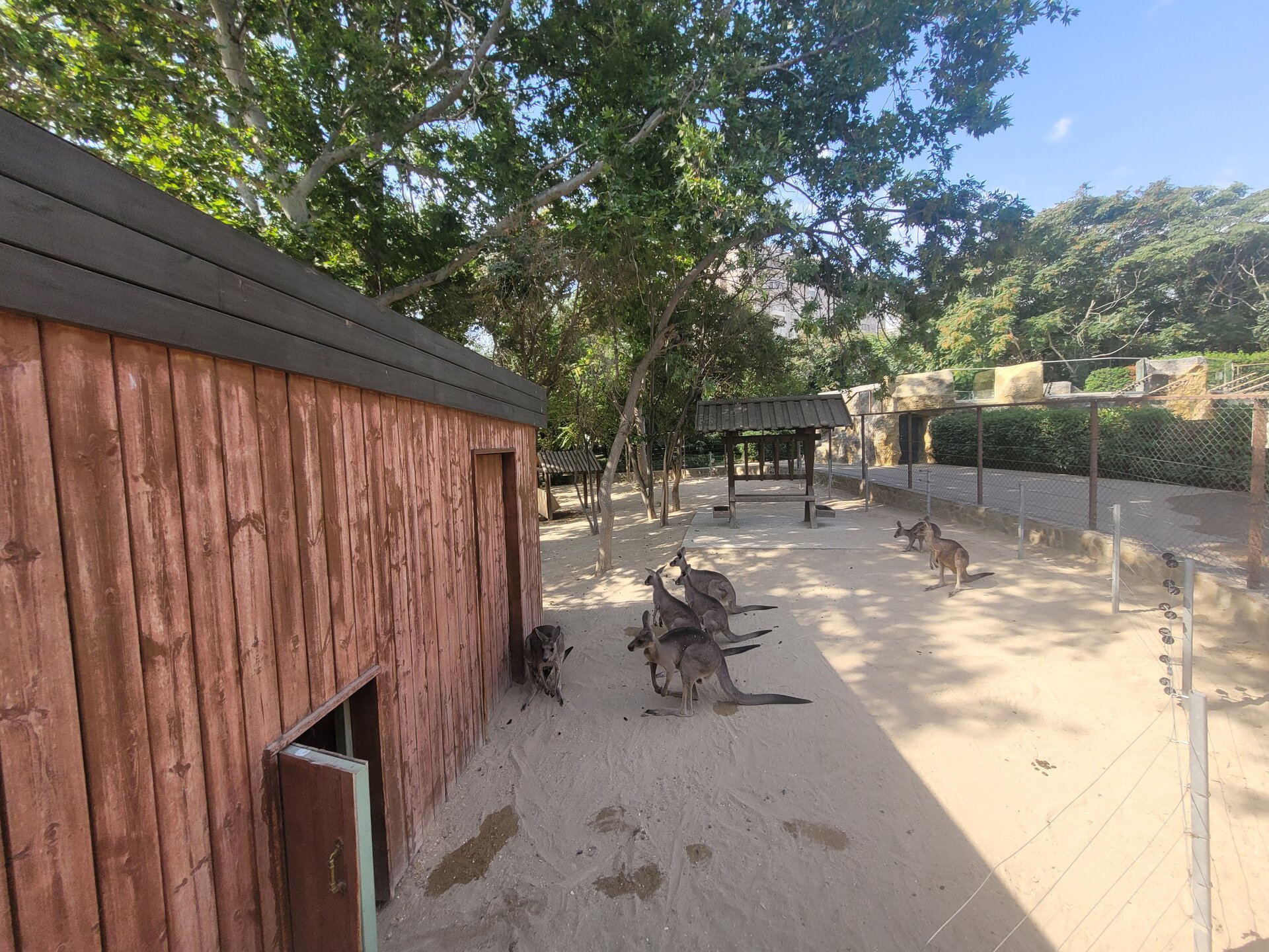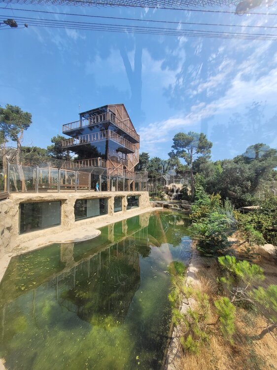 Что мне понравилось, так это то, что для удобного просмотра, в зоопарке сделаны разные смотровые площадки, где можно рассмотреть животных не только сбоку, но и сверху. А про это животное хочется рассказать чуть подробнее. Честно сказать, было жутко. У это зверя был такой зверский взгляд, он реально нас рассматривал как свою потенциальную еду. И если бы у него была такая возможность, он нас сожрал бы и не даже не подавился бы. А уж как он оскалился. А мы ведь просто стояли и смотрели, ничего плохого не делали. Он потом начал даже кидаться на сетку и пытаться допрыгнуть до самого верха. И мы решили от греха подальше уйти. А вот этому кенгурёнку, думаю, было очень хорошо. Сидит себе тихонько у мамы в сумочке. Мама устала стоять, упала вместе с ним. А у меня был один вопрос. Когда кенгурёнок то и дело вроде как вывалился из сумочки или в какой-нибудь неудобной позе был, так и хотелось его спросить: "Тебе там точно удобно?" И вот этому товарищу, я думаю, было тоже очень хорошо. Там водичка, там прохладненько, прям в гости к нему хотела напроситься. А это ещё одна смотровая площадка и пожалуй самая высокая. В нашем понимании, если есть такое сооружение, то на это сооружение необходимо обязательно подняться, что мы и сделали. Можно по ступенькам, можно на лифту. Не могу сказать, что виды потрясающие, но всё же подняться стоит. По крайне мере с высоты можно увидеть масштабы зоопарка. Спускались мы на лифте. Когда спустились, сбоку увидели лестницу. Ну раз есть лестница, ничем не огороженная, значит по ней можно спуститься. Когда спустились, там тоже была смотровая площадка, только расположенная внизу. Вот этим бакинский зоопарк и хорош. И сверху можно посмотреть, и снизу, и сбоку.