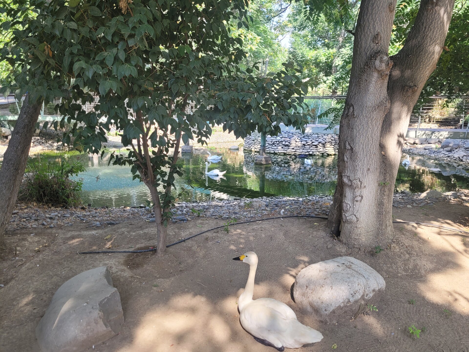 Вольеры для животных здесь просторные, зеленые, где-то затенённые от яркого солнца деревьями. Мне очень понравилось, что над местом обитания зверей действительно очень сильно потрудились. Глядя на некоторые вольеры, казалось, что мы гуляем не по зоопарку, а по лесу. Ну, а в этом вольере проходила целая операция по вылавливанию птиц. Сотрудников было человек 6 и все они бегали по вольеру как прирождённые спринтеры, а птицы от них разлетались в разные как ещё более прирождённые спринтеры. Мы начали снимать на камеру, но нас попросили этого не делать. Ну в принципе я их понимаю, снимем и выложим потом в интернет. По этому поводу есть вот такой юмор. Но это было так забавно, не то, что люди бегали по всему вольеру, а то, что между собой они разговаривали на азербайджанском, а нас попросили на русском, даже больше скажу, на чистейшем русском языке. Мы, конечно, не стали больше снимать, просто посмотрели и пошли дальше.