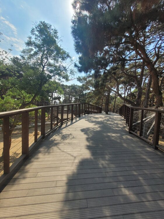 Если мы поднимались на фуникулёре, то спускаться решили по лестнице. И как я уже писала выше, она не идёт параллельно фуникулёру, мы немного спустились, потом прошли вдоль дороги, потом эту дорогу перешли и там опять была лестница. В общем, вот такой небольшой квест. Я когда увидела эту фотографию, вообще сначала не поняла, я здесь где? Каким образом оказалась над этой дорогой? Но благо стараюсь фотографировать каждую деталь, следующая фотография всё поставила на свои места. Слава богу поняла. Я просто с мостика фотографировала. Совсем про него забыла. Ну и как видно на этой фотографии, это именно то место, где встречаются два трамвайчика. Один выходит из туннеля, а тот который едет в Нагорный парк заезжает в туннель. Сначала рельсы были прям рядом с лестницей. Вот так близко можно было к ним подойти. Но чем ниже мы спускались, тем дорога фуникулёра становилась выше. 20250726_115556.mp4 Вот так у нас состоялось знакомство с Нагорным парком. Пожалуй, эта одна из немногих достопримечательностей, которая работает круглосуточно. Вход на территорию комплекса свободный. Добраться до самого парка можно, воспользовавшись фуникулером, или подняться от Приморского бульвара по лестнице. Также можно подойти к Нагорному парку со стороны Пламенных башен. Что ещё можно сказать? Пожалуй то, что далеко не всякий город может похвастаться наличием естественной смотровой площадки, с которой весь его исторический центр обозревается "как на ладони". В такие места нужно приходить, когда там внизу многое уже увидено и сфотографировано. И вот теперь здесь наверху ты внимательно разглядываешь городской ландшафт, с удовлетворением обнаруживая хорошо знакомые тебе здания. Впрочем, видишь еще и много мест, где не побывал.