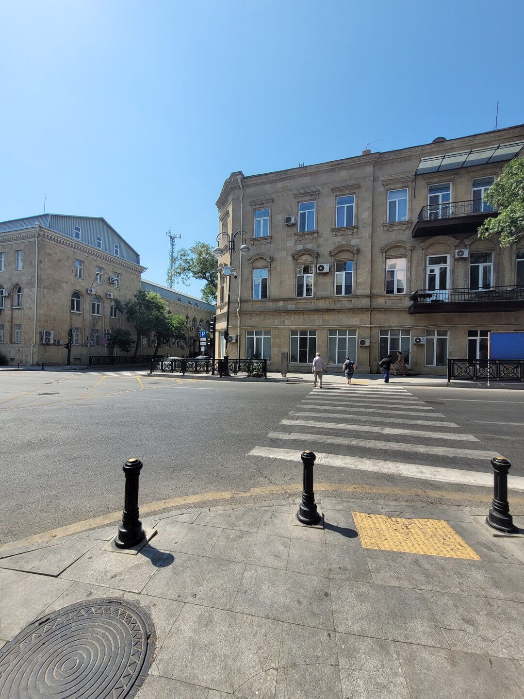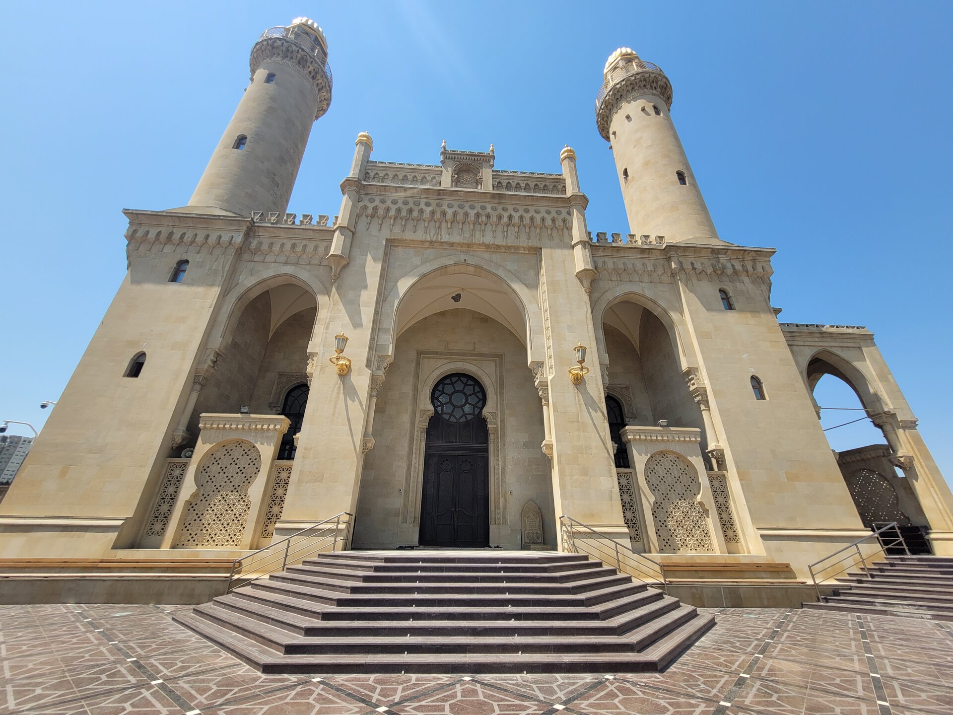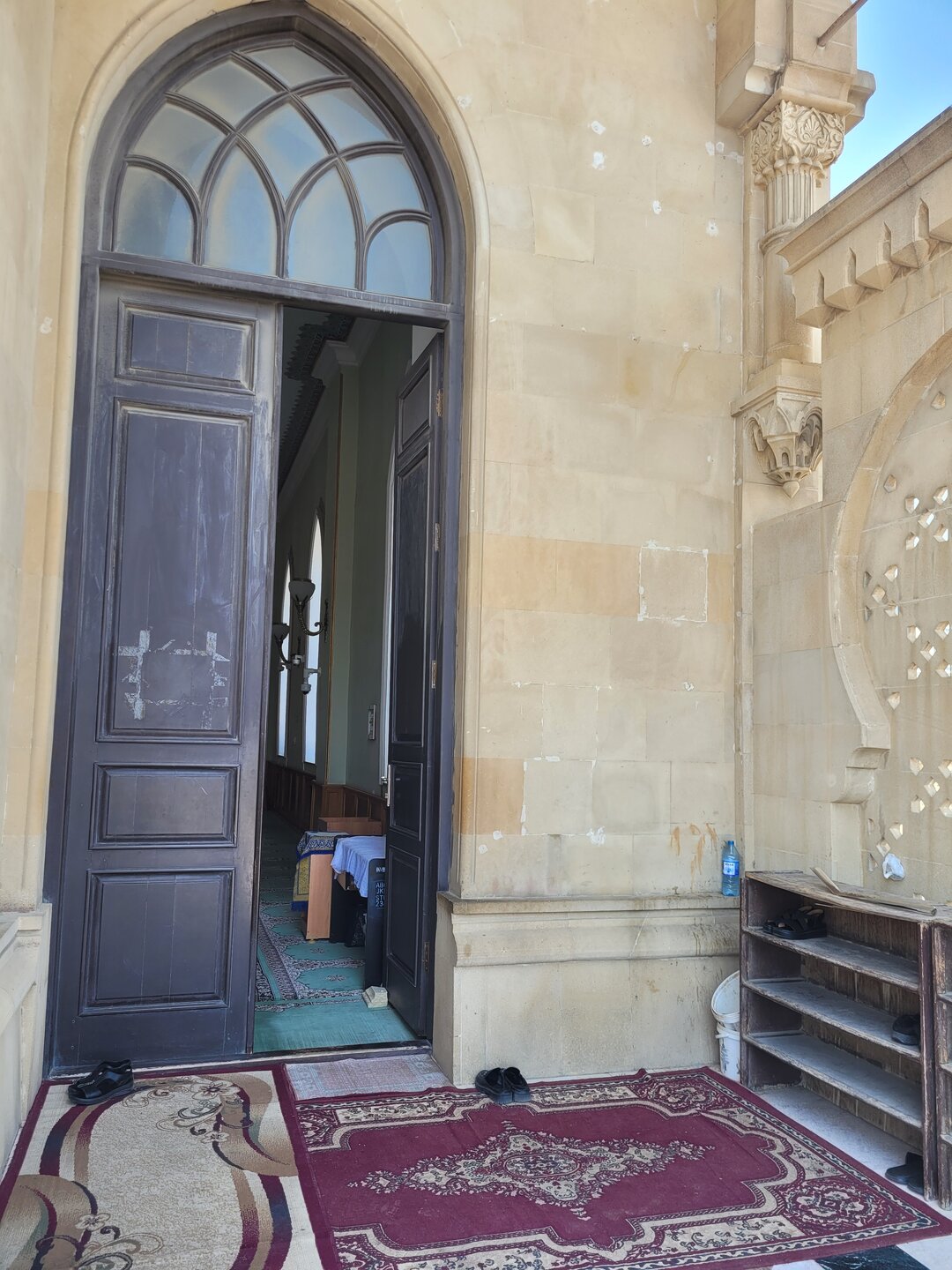 Один минус этого музея, негде было сходить попудрить носик, именно так я стала называть санитарную комнату после нашего тура в Грузию. В Тбилиси у нас был замечательный гид Влас, и во время наших с ним экскурсий и выездных тоже, он периодически нас отправлял пудрить носик, я реально сначала не понимала, да что ж такое, сколько этот носик можно пудрить? Как-то раньше гиды так завуалированы нам не говорили, всё было гораздо проще, кому нужно туалет, то вам направо. Всё было открытым текстом. А тут носик. В общем, в музее, то место, где можно было попудрить носик, было на ремонте. Но нам сказали, что можно попробовать сходить в отеле напротив. Когда мы зашли в этот отель, он был маленький, на ресепшене никого не оказалось, что сыграло нам на руку, мы сделали умный вид и как-будто так надо, быстренько, не подавая никакого намёка, что мы вообще к этому отелю не имеем никакого отношения, проследовали в секретную комнату. А вот обратно на ресепшене уже сидел сотрудник, но мы не растерялись, вид сделали ещё умнее и также быстренько проследовали на выход. Ну что, идём дальше? Вот такой местный колорит по дороге увидели. Впервые вот такое сохнущее бельё, развешанное на верёвках между домами или от балкона до куда-нибудь, я увидела в Грузии, в Батуми. Вот тогда это было необычно. А тут уже даже не удивились. А до нашей следующей достопримечательности было всего 7 минут пешком. Карта нам выдавала и пешком столько и на такси столько же, конечно, мы выбрали пешком, хоть прогуляемся. И так, мы идём смотреть мечеть Тезепир, строительство которой началось в 1905 году. Данная мечеть входит в топ-5 самых посещаемых туристами бакинских мечетей. Расположена она очень удобно. Неподалеку от Ичери Шехер. Строительство мечети было завершено в 1914 году и профункционировав три года, в связи с Октябрьской революцией мечеть была закрыта. В разные годы здесь был амбар, кинотеатр и лишь в 1943 году и по сей день мечеть функционирует вновь как мечеть. Ну что, идём смотреть мечеть изнутри? Не сложно было догадаться для кого этот вход, ну, конечно, для мужчин.