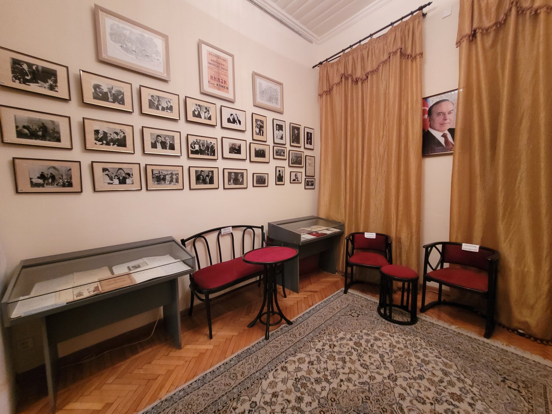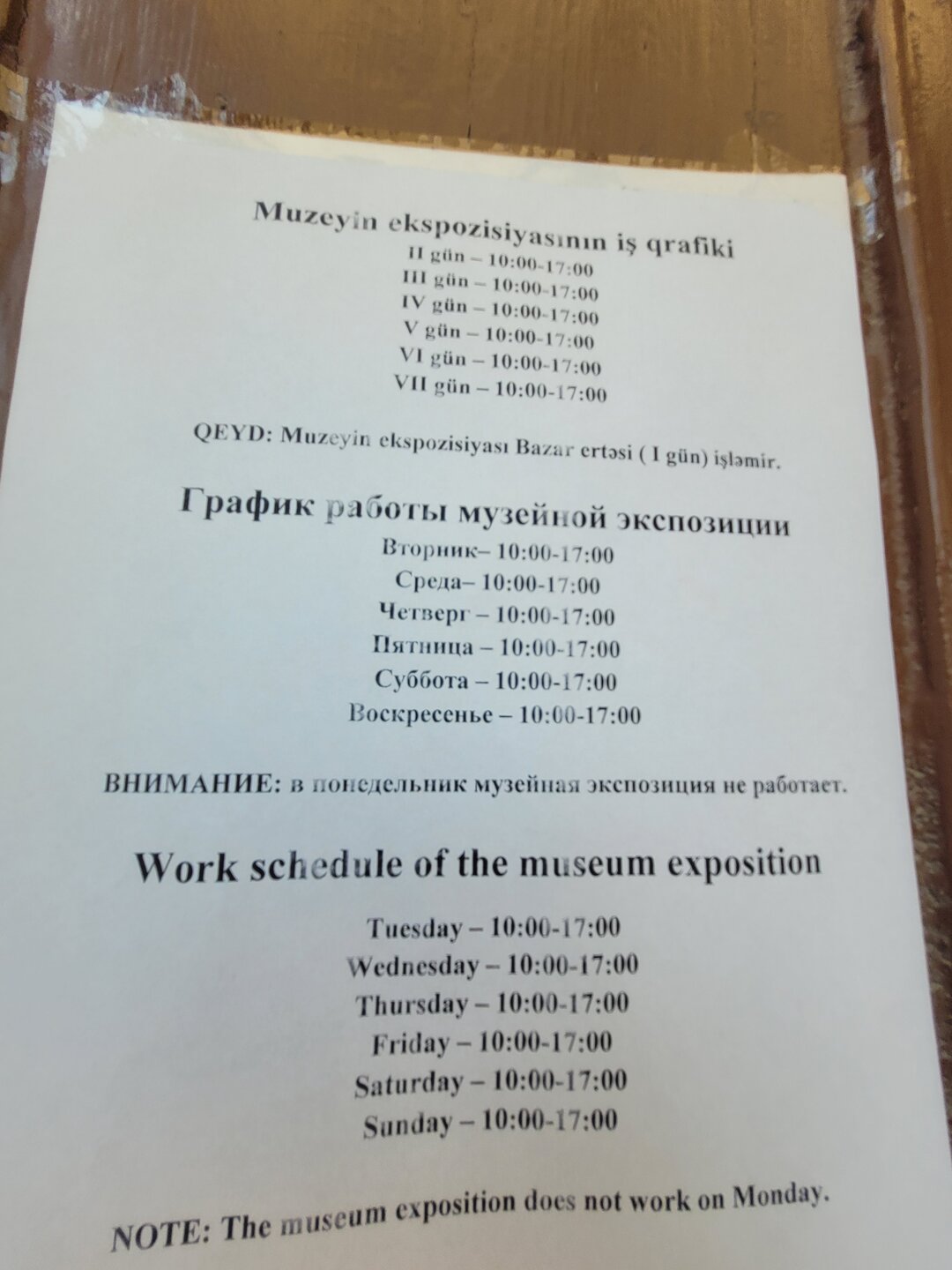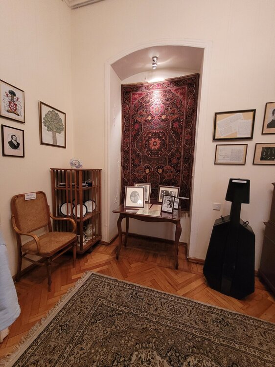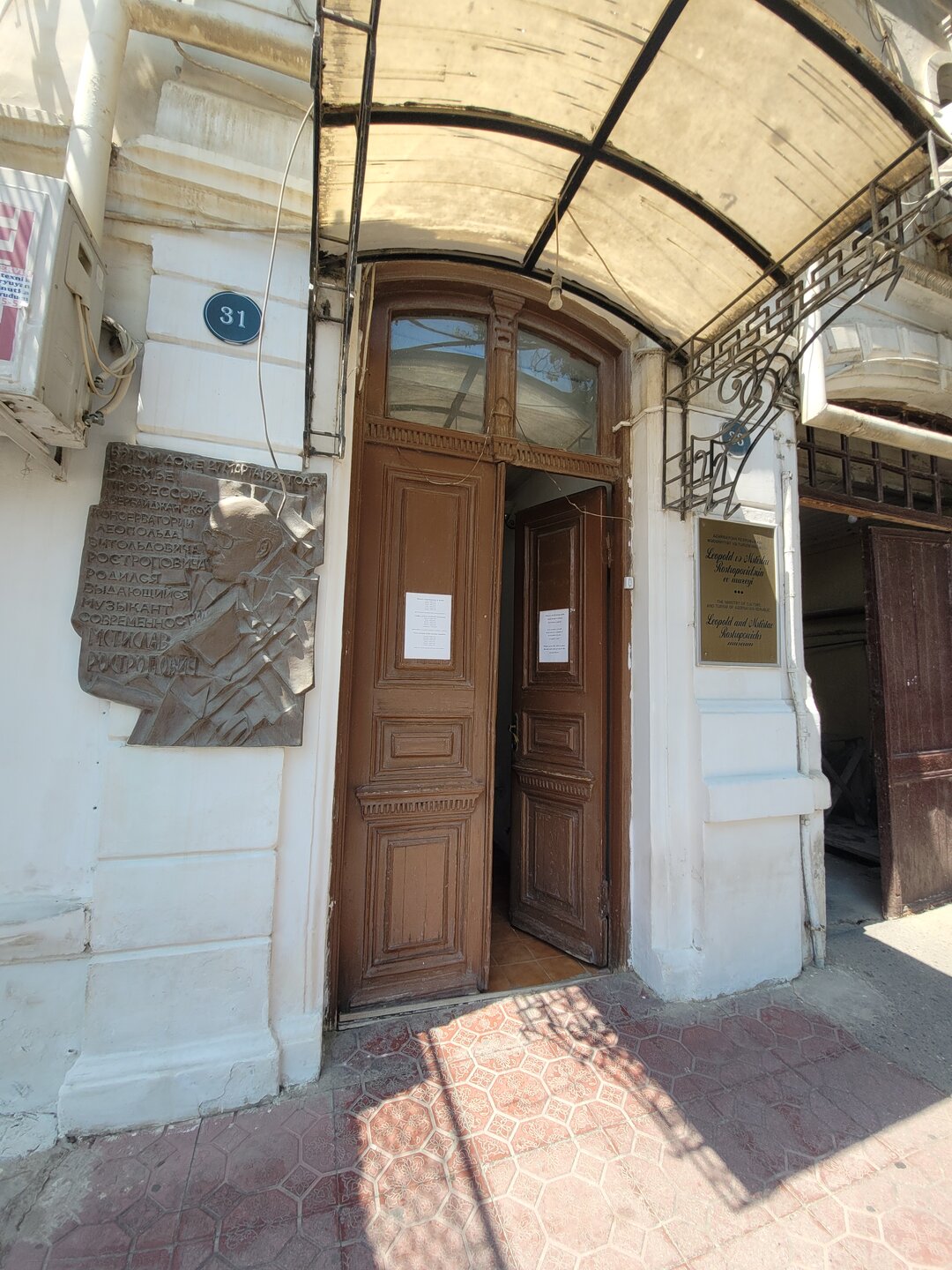 А вот далее мы пошли в музей, от почты идти около 12 минут. Забегая вперёд хочу написать, что если кто будет в Баку, обязательно посетите этот музей, я и доча остались в полном восторге, но обо всём по порядку. Шли мы шли с дочей и тут она говорит, а мы уже пришли. Честно сказать, глядя на карту Баку, казалось, что музей расположен не так близко от станции метро, но на деле всё оказалось гораздо проще. И так, мы идём в музей Мстислава и Леонида Ростроповичей, в музей, который был создан в 1998 году в здании, где семья Ростроповичей проживала на протяжении шести лет с 1925 по 1931 год. Леопольд Ростропович был приглашён в Баку в 1925 году из Оренбурга азербайджанским композитором Узеиром Гаджибековым. Леонид Ростропович принял приглашение и вся семья переехала в Баку, где он и его жена начали преподавать в Азербайджанской государственной консерватории. Как и везде, в этом музее выходной тоже понедельник. И рассматривая посещение музеев, мы этот факт учитывали. Но вот в чём мы не разобрались, это в том как в этот музей попасть. Вот всё было понятно. Нет чтобы по сторонам посмотреть и все бумажки, которые были прикреплены к двери прочитать, но вот этот факт мы упустили. И так, поднялись по лестнице. Здесь было всё понятно, тем более на стене был барельеф великого виолончелиста. Тут же рядом дверь и было понятно, что именно за этой дверью и находится музей. Но вот чего мы не поняли, почему эта дверь была закрыта. Я так и сяк, подумала, может дверь тяжёлая и открывается она не так просто. Куда там, дверь вообще никак не поддавалась и так стало обидно. Я очень хотела попасть в этот музей, на всякий случай посмотрели какой сегодня день недели, может чего перепутали? Но нет, всё хорошо и сегодня не понедельник. Но от этого легче не стало, дверь продолжала стоять как вкопанная. Я не теряя надежды, стала в дверь ломится, как ещё не вышибла её, вот такое желание было попасть в этот музей. И тут дверь открывается, и перед нами предстала молоденькая, симпатичная девушка, которая нам и рассказала, что там внизу есть звоночек и объявление тоже есть, где написано, что в этот звоночек надо позвонить. Блин, так было стыдно. И это я, которая всегда смотрю по сторонам и читаю всё, что на этих сторонах написано. Нас встретила милая девушка, которую зовут Милана. Прям тут же она нам предложила экскурсию по музею, цена вопроса за двоих 9 манат, на наши деньги это около 530 рублей. Заметьте, посещение музея и экскурсия. Конечно, мы согласились и ни разу не пожалели, что согласились взять экскурсию. Милана, именно она и провела для нас экскурсию, очень милая, эрудированная, много знающая экскурсовод, превосходный русский язык, а речь, а дикция, и не важно, что нас было всего два человека. Видно было невооружённым глазом, что она любит свою работу. В общем, от экскурсии мы остались в восторге. Поэтому я теперь всем говорю, будете в Баку, музей Ростроповичей к посещению обязателен, и обязательно возьмите экскурсию. Думаю, именно Милана и проводит с русскими туристами экскурсии. Как я смогла понять, не все сотрудники владеют русским языком. И ещё, музей сам небольшой, информация на русском есть, но очень мало. Поэтому просто пройти по музею и посмотреть, а среди экспонатов экспозиции очень много каких-то документов, бумажек и непонятно, что это. А так вас проведут по музею, расскажут о первых днях жизни Мсти
