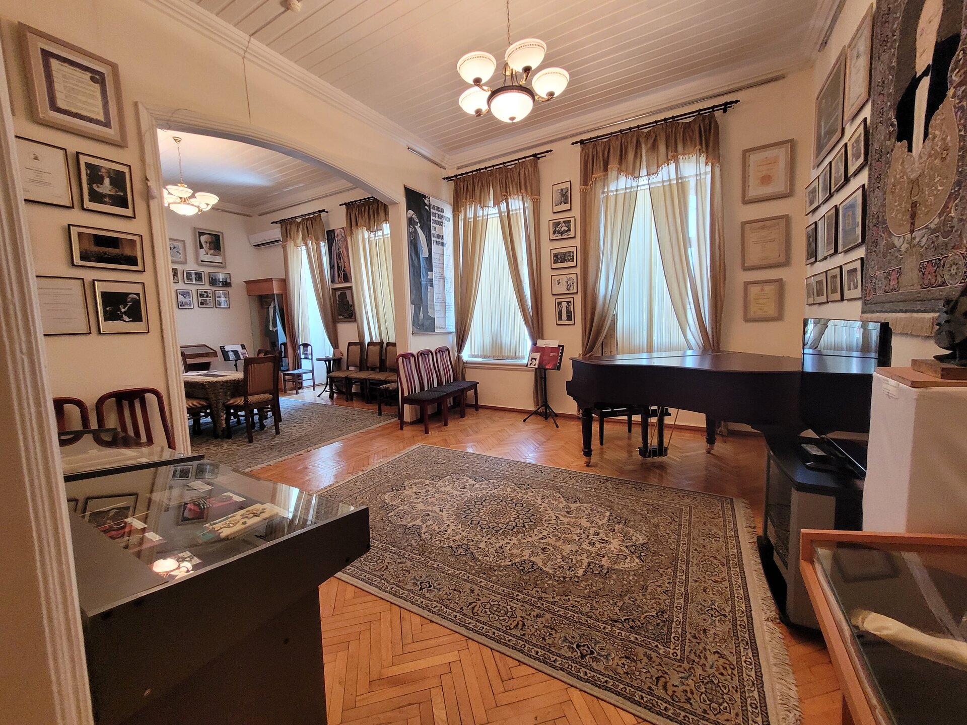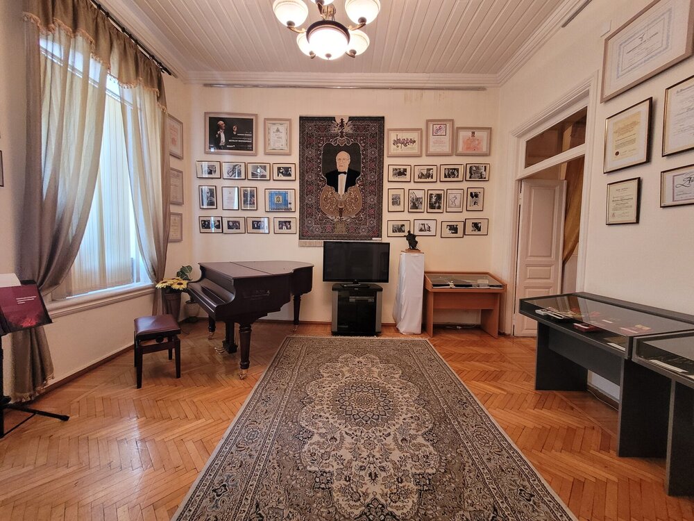 И, конечно, это не просто дом, где жила семья Ростроповичей, именно в этом доме, в одной из комнат родился будущий виолончелист, дирижёр и композитор Мстислав Ростропович. Не просто так мы этот дом чуть мимо не прошли, музей семьи Ростроповичей – неприметный домик, расположенный на одной из второстепенных улиц Баку. Но для музыкальной культуры города этот дом значит не меньше, чем филармония или театр оперы и балета. Не важно, что семья Ростроповичей (отец великого музыканта Леопольд Витольдович, также был виолончелистом) прожила здесь всего шесть лет. Тем не менее, здесь бережно хранятся письма, пластинки, награды музыканта. Возможно, потому что именно Ростропович – лучшее, что дала мировой музыке азербайджанская земля. После возвращения музыканта из эмиграции Баку был одним из первых городов, куда он отправился. И как я уже выше написала, сам музей был открыт в 1998 году. Мстислав Ростропович и Галина Вишневская, естественно, присутствовали на церемонии. Если писать про экспозицию музея, то она богата интересными материалами, отражающими детство, юность и деятельность М. Ростроповича. Экспозиция состоит из двух частей. Первая часть отражает атмосферу дома, где жила семья Ростроповичей, и обстановку того периода. Среди экспонатов музея – письма Леопольда Ростроповича к Узеиру Гаджибейли, предметы, принадлежащие семье Ростроповичей, ковры и мебель конца 19 – начала 20 веков. Во вторую часть экспозиции вошли важные моменты жизни и творчества М. Ростроповича, фильмы о нём, аудиозаписи выступлений маэстро. В музее также представлены фрак Ростроповича, в котором он был на концерте в Государственной филармонии в 2005 году, его дирижерская палочка, видеозаписи с концерта, фотографии и концертная программа с автографом маэстро. Ну и уже почти в конце нашей замечательнейшей экскурсии, у меня возник вопрос, который я и задала Милане: "А в какой конкретно комнате родился Мстислав Ростропович?" Вечно я лезу со своими вопросами, но правда было интересно. Пожалуй из всех имён и фамилий, те что связаны с Азербайджаном, фамилия Ростроповичей была самой известной, отсюда и вопрос такой возник. И после посещения музея возникло ощущение, что он особо не пользуется популярностью среди туристов, и это неправильно. Я очень даже рекомендую этот музей к посещению. И как я уже выше писала, обязательно взять экскурсию. А вообще, это очень хорошо, что хранится память о выдающемся музыканте в доме, где он родился.