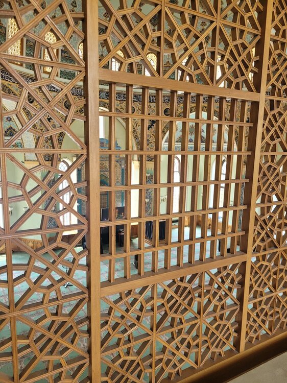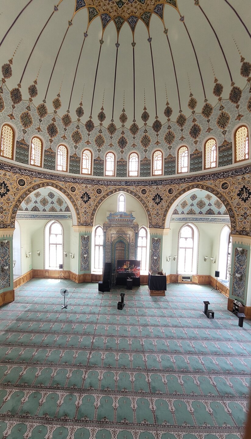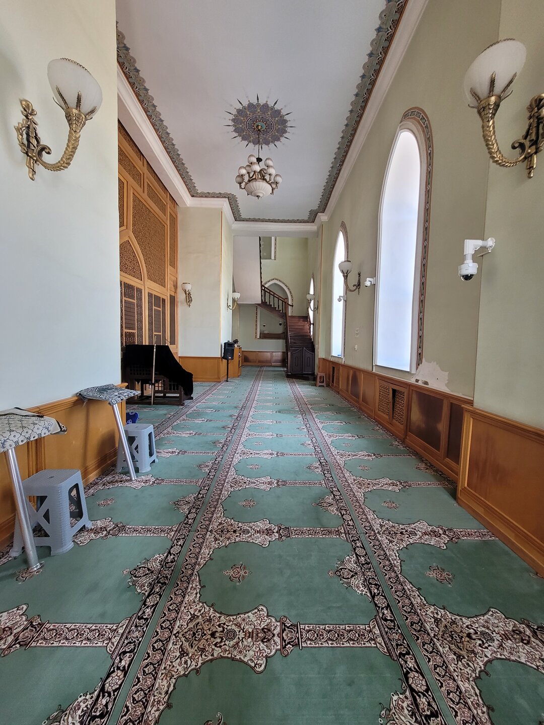 Ну, а вход для девочек был сбоку. Что радовало, в мечети была гардеробная, но у меня платье было длинное и даже несмотря на короткие рукава, мне разрешили пройти так, но платок, конечно, накинула. Инициатива постройки мечети принадлежала женщине-меценату Набат-ханым Ашурбековой. Однако в связи с её смертью, стройка была приостановлена. Впоследствии ее сын продолжил строительство, которое, как я выше написала, завершилось в 1914 г. Внутри помещение расписано редкими восточными орнаментами и узорами Азербайджанских живописцев. В качестве материала для постройки купола и михраба использовался мрамор. Только так и смогла сфотографировать мужскую часть мечети. Думаю эта часть красивая, но по достоинству оценить не получилось. Кусочек так, кусочек вот так. На этом пожалуй и всё. А эта женская половина мечети. Ну здесь можно было фотографировать во всех ракурсах. Но по сути, ракурс был один. Так как в принципе, эта и была вся женская часть. Мечеть Тезепир – это крупнейшая мечеть Баку и одно из наиболее значительных архитектурных сооружений, которые определяют облик города. Когда-то на месте этого культового здания стояла невзрачная одноэтажная мечеть. Благодаря удачному расположению, мечеть Тезепир великолепно видна из разных районов города Баку и является хорошим ориентиром. 20250729_122146.mp4 И на что ещё обратила внимание, как это было сказано в видео, что территория мечети очень большая, аккуратная, ухоженная. Также видно, что мечеть огорожена высоким и красивым забором, а большой двор вымощен гранитно-мраморными плитами. В общем, нам всё понравилось. А при выходе, девушка - дежурная, нам дала вот по такой конфетке. Кстати очень вкусная.