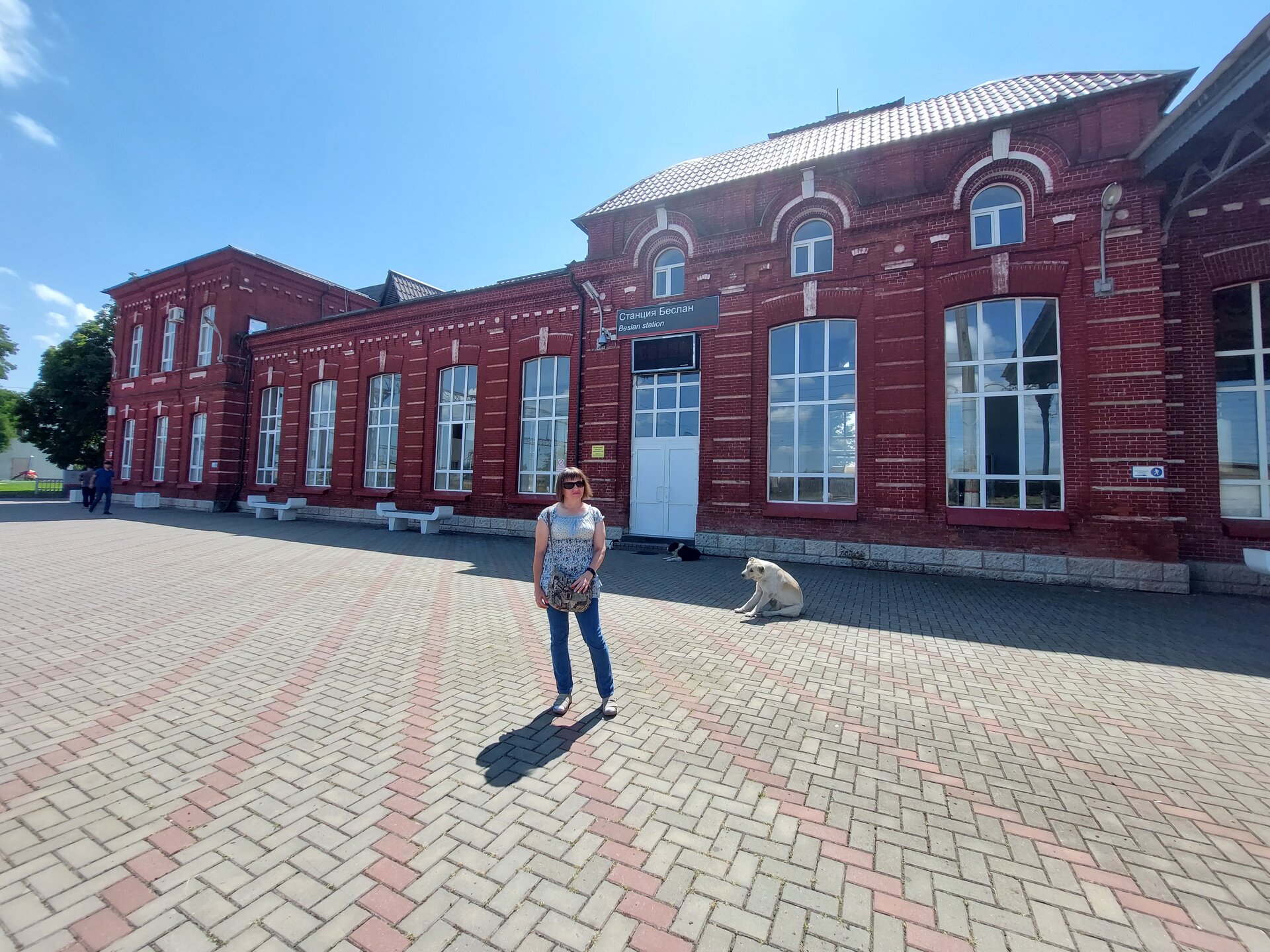 Своим ростом и значением Беслан во многом обязан прокладке здесь в конце 19 -го века Владикавказской железной дороги. Это превратило его в стратегически важный железнодорожный узел, связавший регион с центральной Россией. В советский период Беслан был известен на всю страну благодаря своему маисовому комбинату. Это было одно из крупнейших предприятий по переработке кукурузы в СССР, и его продукция пользовалась большим спросом. Но комбинат был ликвидирован 1 июня 2021 году, на основании суда о признании его несостоятельным, то есть стал банкротом. Возможно и это повлияло на современное состояние города. Что здесь сейчас так. А. возможно, это просто лето и все куда-то разъехались. Или мы, наверное, так далеко ушли от вокзала, что здесь вообще жизнь закончилась. Но тем не менее одно, довольно современное здание мы прошли, дворец культуры. Здесь проводятся всё городские и праздничные мероприятия. Сегодня это центральное учреждение культуры, одно из мест проведения праздников, юбилеев, фестивалей, творческих встреч, праздничных концертов, конкурсов, киносеансов, организации досуга и отдыха жителей и гостей города. И как было здесь не увидеть памятник Ленину. Я бы даже, наверное, удивилась, если бы его здесь не было. И всё же, какое бы современное здание мы тут не увидели, сложно, конечно, было говорить о Беслане, не видя на улицах города людей, как здесь бывает в другое время мы не знать не можем. Но то что видела я, могу сказать, что это богом забытый город, если бы не одно но....