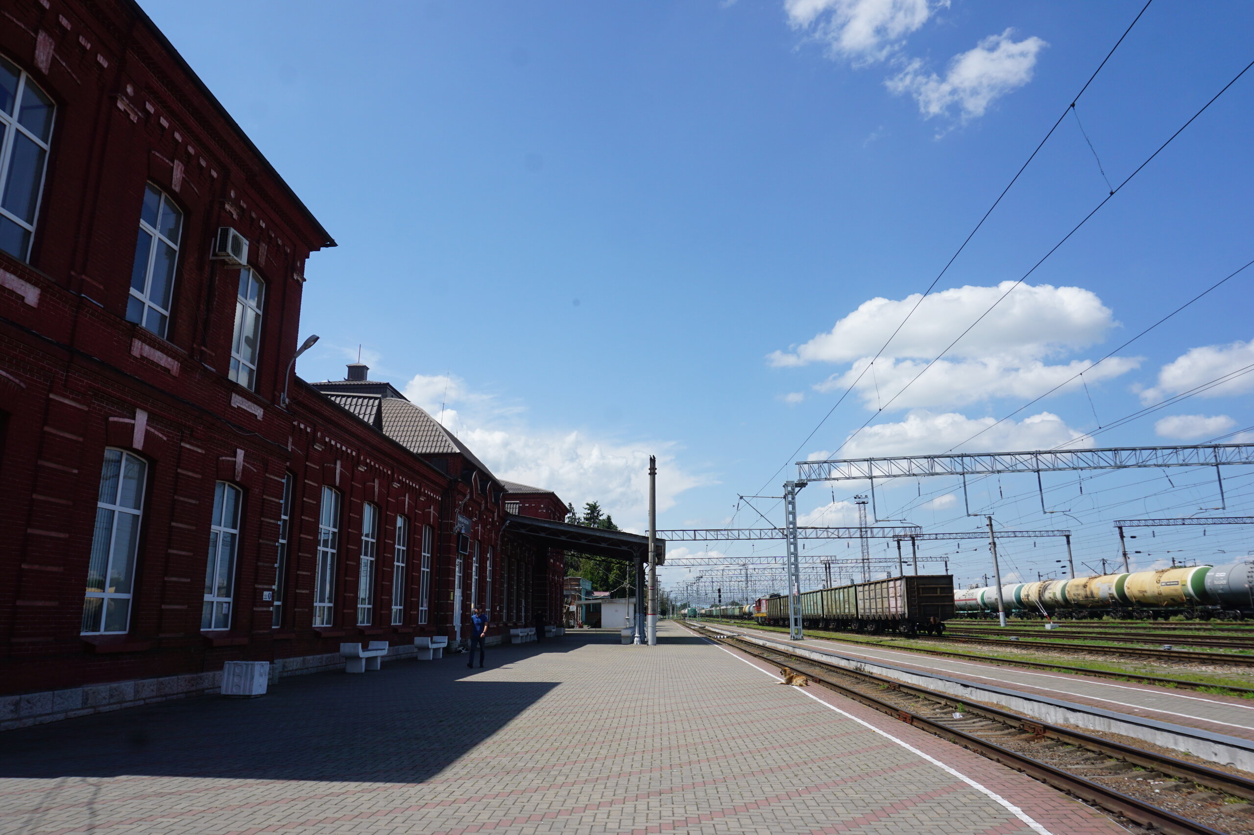 Доехали до ж/д вокзала. Очень достойное здание. И мне стало интересно, а вообще когда оно было построено? В принципе я не ошиблась, дата постройки 1875 год. Здание, выполненное в «кирпичном стиле», сохранилось почти в первозданном виде. Я наивно полагала, что здесь, как в принципе и положено на вокзале должна быть камера хранения. Но нет, уже при входе нам сотрудница сказала, что камер здесь нет, да, раньше были, а сейчас в этом нет необходимости. Ну нет здесь такого пассажиропотока. Вот так. И что делать? Два чемодана, ручная кладь. Эта же женщина, как вариант нам посоветовала обратится в один киоск, там, возможно, можно на время пристроить наш багаж. Но в киоске никого не было, поэтому пошли так, с двумя чемоданами и сумкой. На привокзальной площади мы увидели мемориал, посвящённый героям гражданской и Великой Отечественной войны. Надпись на памятнике гласит "Вечная память бойцам, поднявшим знамя Октябрьской революции и отстоявшим его в Великой Отечественной войне". В принципе здесь, около вокзала и привокзальной площади и была вся цивилизация. Здесь ещё как-то был народ, который с интересом поглядывал в нашу сторону. Хотя мне кажется на нас смотрели все. Сложно было не обратить внимание на двух людей, идущих с чемоданами. Ну, а мы идём знакомиться с Бесланом.