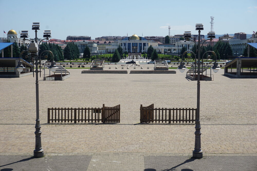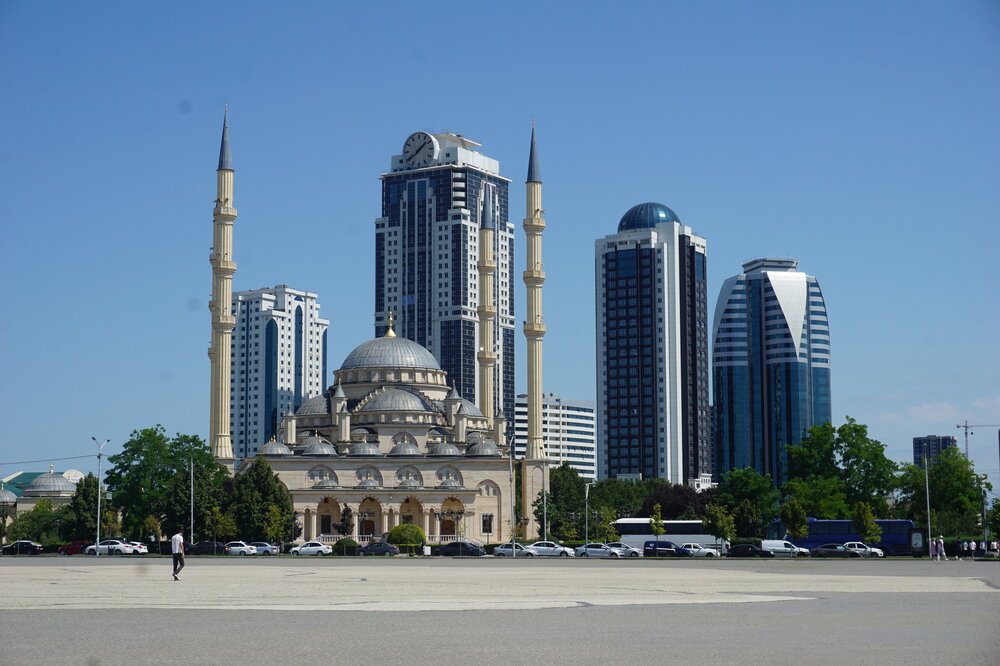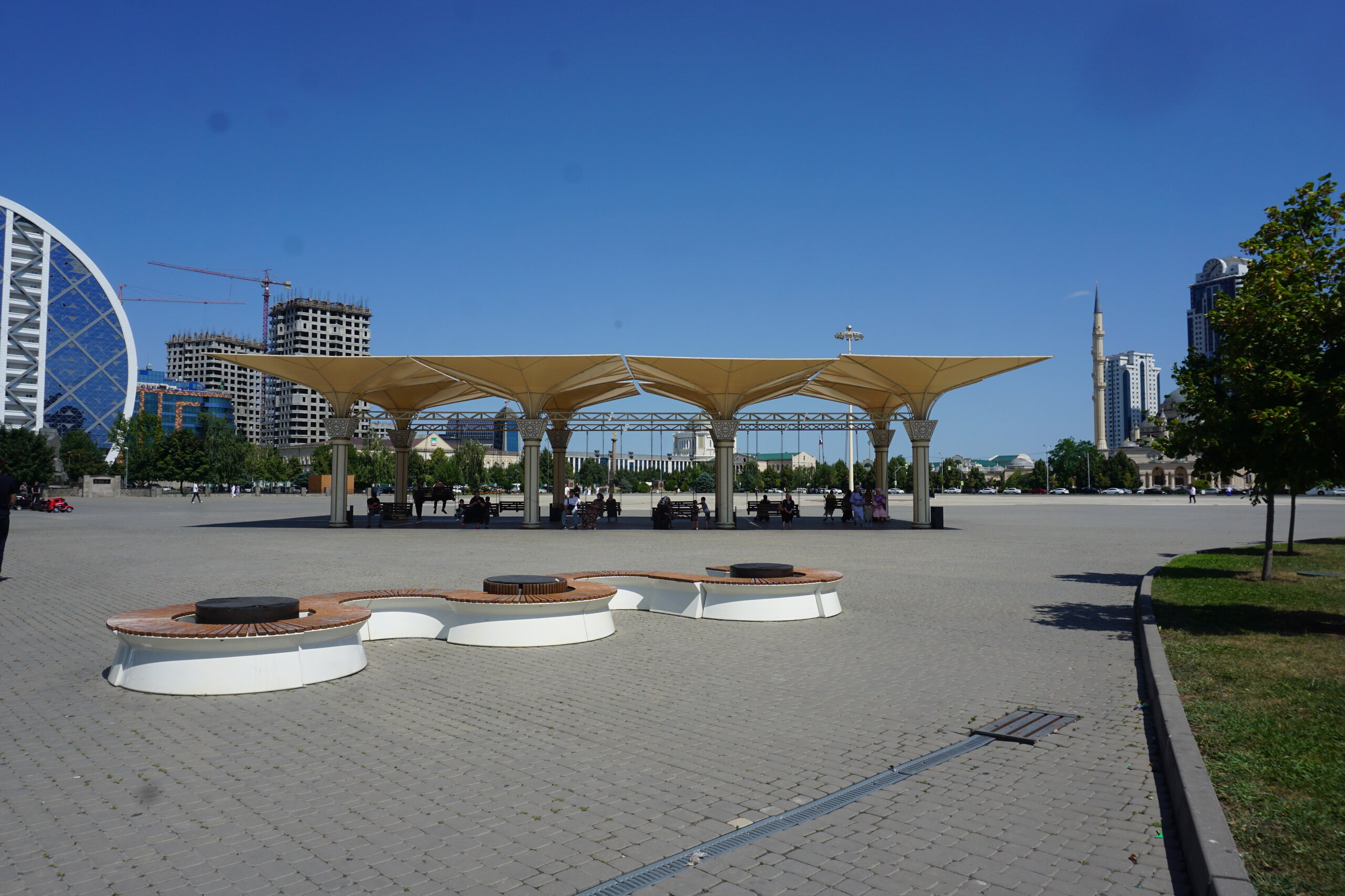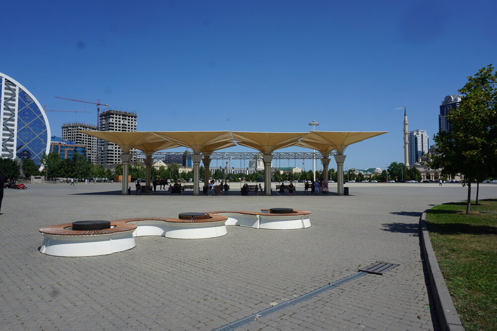 На мечети наша прогулка по Грозному не закончилась. Мне казалось, мы тут были не более трёх часов. Но судя по моему рассказу, такое ощущение, что мы тут были целый день. Но это, конечно, не так. Но пока пишу свой отзыв, понимаю, что хотелось прилететь в Грозный хотя бы на недельку, здесь есть что посмотреть и не только в городе, но и за его пределами. Знаю, что раньше был прямой рейс из Новосибирска, сейчас даже не знаю, есть ли. У нас то ставят какие-то новые направления, то убирают. Ну, а у нас оставалась ещё одна локация, это проспект Эсамбаева. В прошлый раз мы не успели по нему пройтись, так как поднимались на смотровую площадку, сейчас решили восполнить этот пробел. Но сначала мы прошлись по площади им. Ахмата Кадырова. Исторически на этом месте всегда была главная площадь. Только в разное время менялось название. В советское время площадь носила имя Ленина. После распада СССР была переименована в площадь Свободы. Сразу за центральной площадью имени Ахмата Кадырова расположен небольшой сквер Ахмата Кадырова. По первоначальной задумке памятник Ахмада Кадырова должен был возвышаться в центре над мраморными плитами, где выбиты имена погибших, при этом каждый район республики имеет свою плиту. Но мулла попросил убрать памятник и его заменили на бесформенную глыбу. Именно от этой площади и начинается главная пешеходная улица – проспект Эсамбаева. Исторически еще с царских времен эта улица считалась одной из главных. Однако из-за разрушительных войн от оригинальной архитектурной застройки мало что осталось. Нынешнее имя проспект получил в 2003 году в честь известного артиста балета и эстрады Махмуда Эсамбаева. А вот облик улицы сформировался совсем недавно после масштабной реконструкции в 2018 году. В целом на проспекте нечего смотреть. Просто ухоженная улица со всей необходимой инфраструктурой. Еще интересная особенность Грозного – это пиратские копии известных сетевых брендов. Практически все как раз расположены на проспекте Эсамбаева. Увидев данное заведение, я почему то сразу вспомнила KFC. Но это был, конечно, не он. А так очень даже похоже, но всё-таки что-то своё и за франшизу платить не надо. Ещё говорят, что весь город под видеоконтролем, поэтому в последнее время здесь такой низкий уровень преступности. Помню, когда в 2021 году на площади Кадырова мы увидели лоток с сувенирами, у нас по сути даже челюсть отвисла. В смысле? Просто лоток без продавца? Но это было именно так. Мы там даже что-то купили, оплатить можно было наличкой, денюжку надо было сбросить в дырочку сбоку, там же был написан номер карты, на который можно был сделать перевод. В общем, всё серьёзно. Мы тогда оплатили переводом, а потом я свой телефон тыкала в камеру, она сверху над башней, чтобы подтвердить покупку. Я даже не представляю как это выглядело с другой стороны камеры. Или даже как это выглядело, если кто-нибудь наблюдал за нами с улицы. Прикольно, наверное, было смотреть, как мы по очереди тыкали телефон в камеру, а я даже ещё что-то говорила, ну типа, вот посмотрите, всё оплачено. У меня даже в мыслях не было, что может там камера без звука, а может там вообще никого нет. Но у нас тоже всё серьёзно было. Без продавца, значит без продавца. Ну, вернусь к проспекту Эсамбаева, которому на мой взгляд не хватает каких-нибудь памятников, музеев, сувенирных магазинов, чтобы задерж