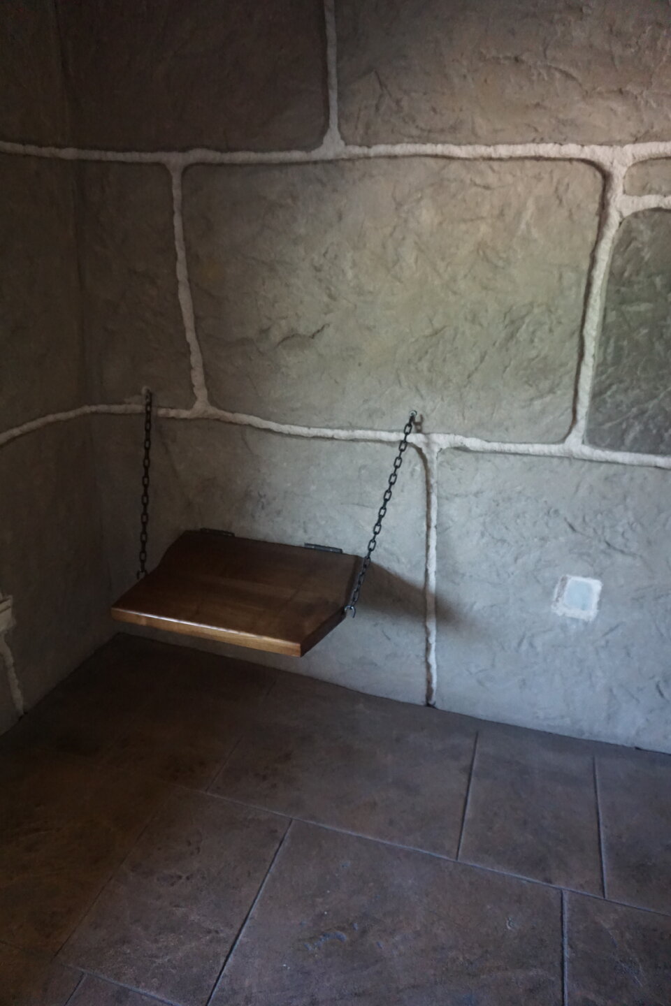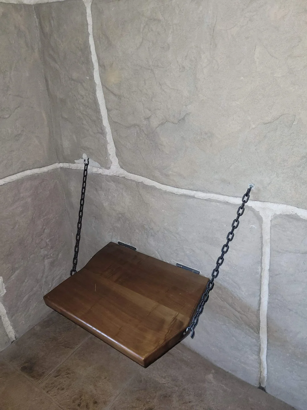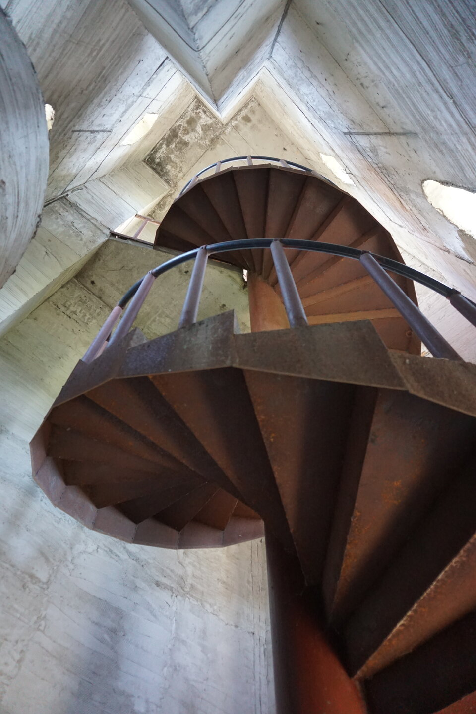 Ну что, настало время и нам подняться на башню. Наверх ведут не лестницы, а пологие пандусы. По пути можно увидеть стенды о дикой природе республики и многочисленные картины на исторические сюжеты. Мне наш подъём казался бесконечным, но читала, что путь равен всего километру. Не знаю насколько это так, мне казалось мы прошли километров 5, не меньше. Мы шли по бесконечным коридорам, и если бы ни какие-то просветы, то было ещё более романтичнее. Между этажами, хотя даже не знаю между чем, где тут граница между одним этажом и другим, в общем, периодически, где-то в уголочке, были вот такие стульчики. Устал, присел отдохнул, но нам отдыхать было некогда, но на фотопаузы иногда оставливались, а всё потому, что где-то в окошечках были очень интересные виды на город. И это один из таких видов на Президентский дворец. Вдалеке видно несколько подъёмных кранов, это говорит о том, что город продолжает строиться, пройдёт лет 20 и Магас будет совсем не узнать. А вот далее, пандусы Башни Согласия выводят к запертой этно-кафешке, за которой поднимаются уже не коридорами, а лоджиями. Впереди ещё 13 ярусов, но сужается башня весьма ощутимо. Высота становится всё ниже и ниже. Я не знаю как тут подниматься людям высокого роста, может пригнувшись? Проверить никак не могла, так как, что я, что доча невысокого роста. Но высота лоджий была реально вот такая, потолок можно рукой достать. И вот мы пришли, подъём мне понравился, насколько помню, у нас таких подъёмов ещё не было. Ни на лифте, ни по лестнице, ни по винтовой лестнице, а какими-то коридорами.
