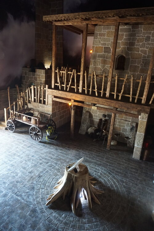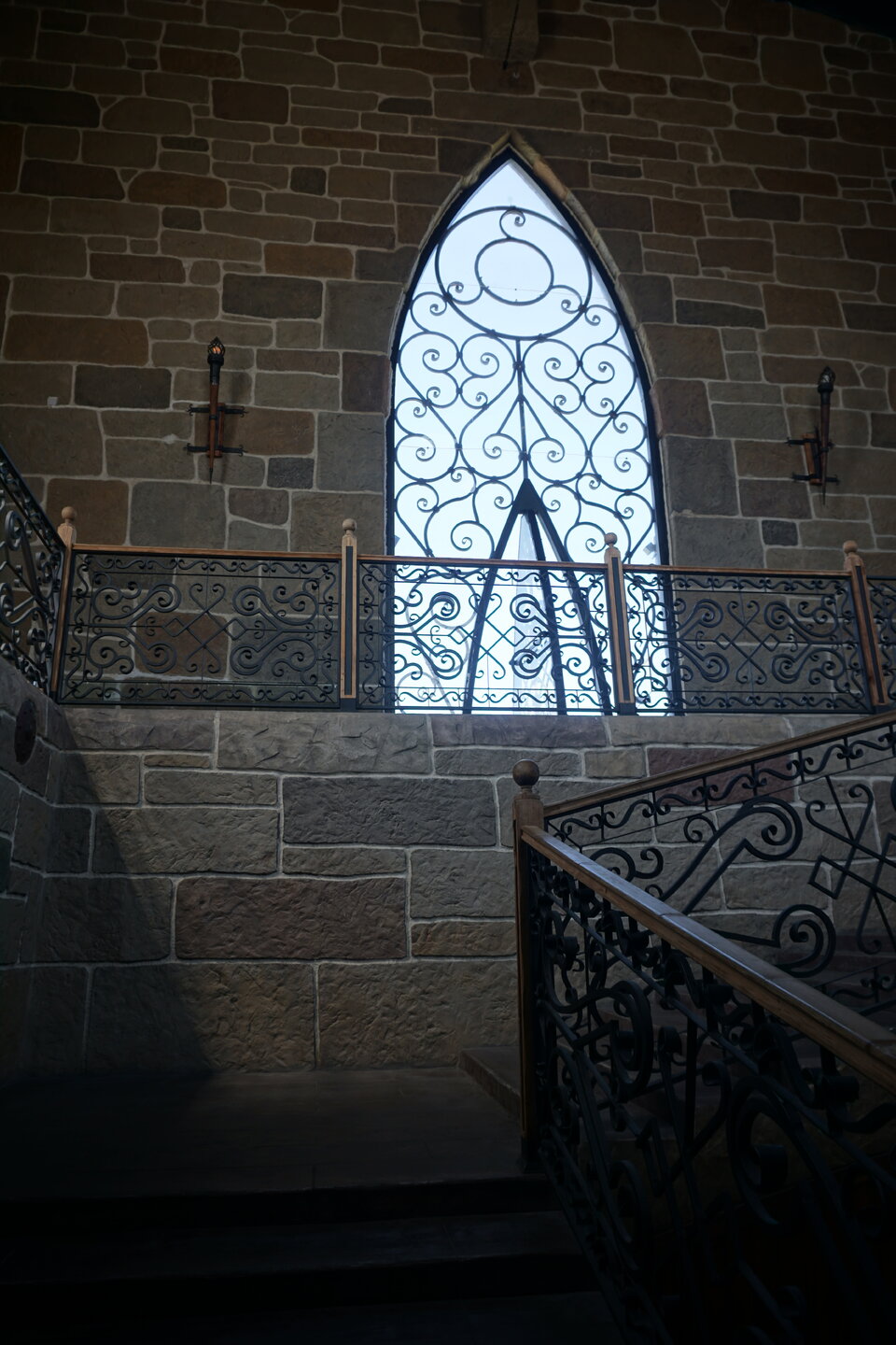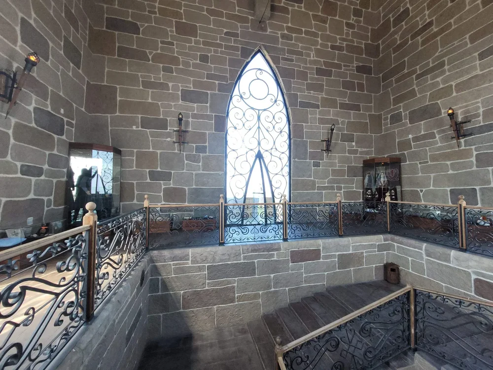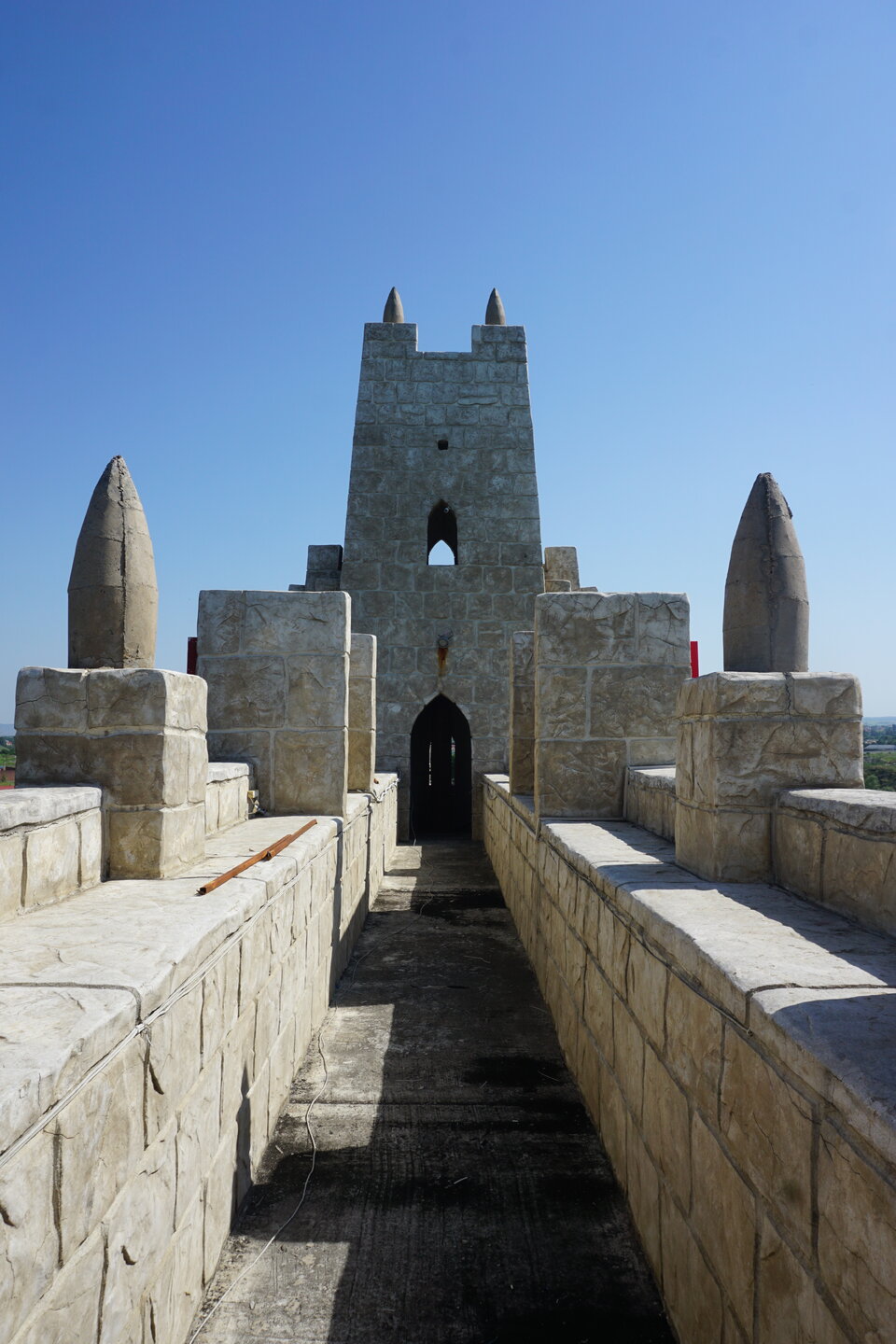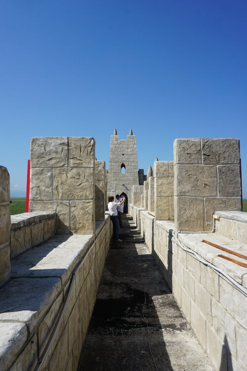 Поднимались мы по винтовой лестнице, такие лестницы расположены на обеих боковых башнях, ступеньки выводят на второй этаж, к импровизированному резному мосту. Подъём несложный, даже несмотря на то, что пришлось подниматься по кругу, высота башен всего-то 18 метров. А вот ширина ворот 24 метра. Стоит ли подниматься? Мне кажется да. Прям сногсшибательных видов здесь, конечно, ждать не стоит, но тем не менее есть что посмотреть. Если посмотреть в одну сторону, практически весь Магас виден. И даже башня Согласия отсюда была видна. Я больше скажу, башню Согласия было видно и с трассы. Вот такая она приметная. Ну, а если посмотреть в другую сторону, то почти видна Назрань, до которой от этих ворот всего-то 3 километра.