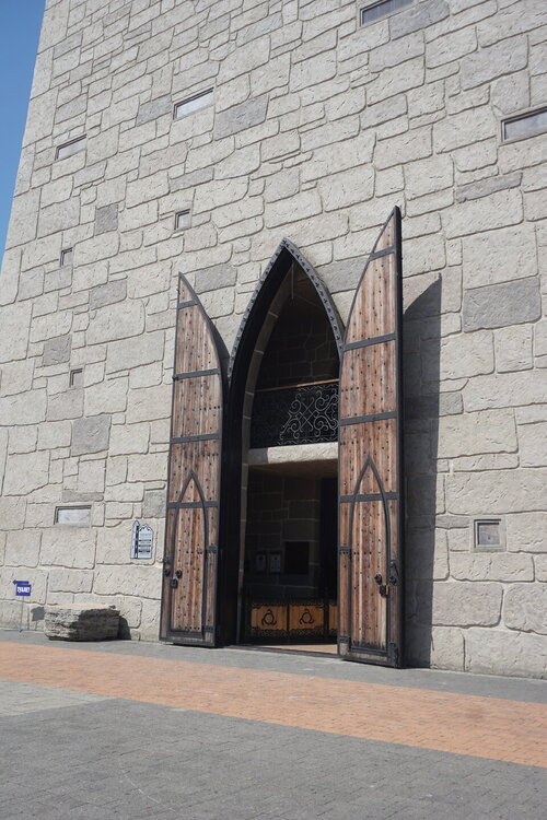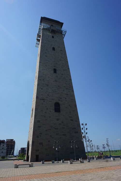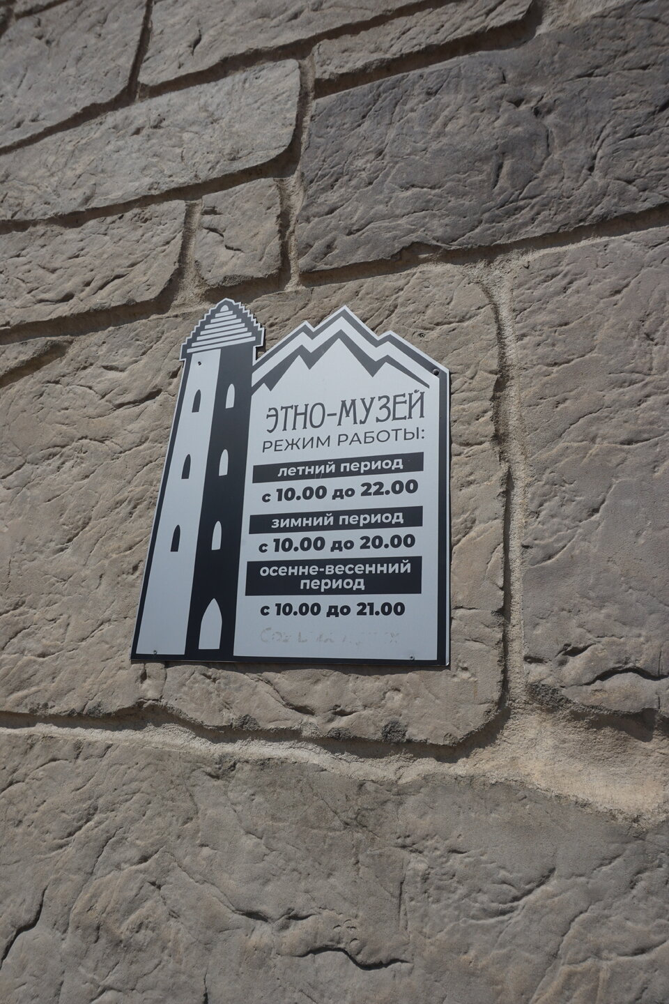 И вот она самая, одна из самых главных и пожалуй приметных достопримечательностей Магаса - башня Согласия. Эта самая большая башня республики. «Магас Тауэр» имеет высоту 100 м, что в 4 раза выше национальных ингушских построек. Если средневековые башни принадлежали какому-то тейпу или роду, то башня Согласия — символ единения всего ингушского народа. На высоте 85 м находится обзорная площадка, откуда открываются хорошие виды на Кавказские горы и улицы города. И забегая вперёд напишу, подъём на башню обязательно стоит поставить в пунктик достопримечательностей Магаса. И то, что в башне нет лифта и надо будет подниматься пешком, это нисколько нас не напугало. И на мой взгляд, это очень здорово, что здесь нет лифта, мне кажется башня уже не смотрелась бы как историческая. Ведь по сути раньше, хот башни и были гораздо меньше, но там же не было лифтов. Вот и здесь он был лишним. Высота башни, конечно, впечатляет, 100 метров, это больше 30-этажного дома. А ещё меня больше впечатлила сама смотровая площадка. Мне не было страшно, мне было очень страшно. Но прежде, чем мы стали подниматься, прошлись по небольшому этномузею, который расположен на первом этаже башни. Экспозиция музея небольшая и рассказывает об истории и быте ингушей. Мы очень удачно пришли сюда, музей работает с 10.00. А мы пришли около 10.15.
