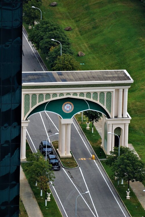 Пока ждали что кто-нибудь подъедет, походили около ворот, которые считаются одним из символов великого, свободолюбивого народа, напоминающий о его несокрушимой истории. Идея создания этого памятника возникла как дань уважения древним аланам, предкам современных ингушей, и их культурному наследию. Аланские ворота торжественно открыли 21 декабря 2015 г. Проект инициировал глава Ингушетии совместно с мэром столицы г. Магаса. Средства на постройку сооружения спонсировал городу Алихан Харсиев, тот самый бизнесмен, который финансировал возведение Башни Согласия (чуть позже я о ней расскажу). В церемонии открытия участвовали не только люди, но и главный символ страны – свободный и гордый орёл, который по окончании мероприятия беспрепятственно взлетел в небо. Аланские ворота начали строить в мае 2015 года и всего за полгода объект был завершён, и теперь величественная арка предваряет въезд в столицу – молодой и цветущий город Магас. Но не всё было так просто. В связи с постройкой Аланских ворот возник некий исторический спор, поскольку именно это словосочетание использовалось также и в отношении Дарьяльского ущелья. Но постепенно разногласия утихли, а великолепная двойная арка продолжает радовать гостей города и его жителей. Для Магаса ворота стали одной из визитных карточек, воплощая гармонию между прошлым и будущим. Они подчёркивают богатую историю Ингушетии, её вклад в культуру Кавказа и стремление к сохранению традиций. Также ворота ассоциируются с доброжелательным характером ингушского народа, их гостеприимством. И если посмотреть на ворота, то невозможно не обратить внимание на два герба. На каждом из них изображён золотой орел с огромным солнцем, сверкающим над головой птицы. Ночью изображение подсвечивается, становясь еще более фактурным и ярким. Профессиональная подсветка разработана не только для гербов, но и для всей арки в целом: как только на Ингушетию опускается вечер или даже ещё лучше ночь, боковые и центральная башни отливают чистым серебром с примесью мрамора, а сами арочные проёмы сверкают янтарно-медовым золотом. Конечно, фото из интернета, но в какой-то степени нам посчастливилось увидеть и такие ворота, а также красиво подсвечивающую башню Согласия. Но об этом чуть позже. Немного погуляв около Аланских ворот, я была ещё раз удивлена, что к воротам подъехала машина. Я не то что удивилась, мы же ждали, что сюда кто-нибудь приедет, больше была удивлена, что так быстро подъехали. Хотя....Магас город очень небольшой, это не то что выбираться по нескончаемым "пробкам" Новосибирска. Магас за часа 1.5 можно пешком весь обойти. Ну, а пока поднимаемся на смотровую площадку и посмотрим на Магас с высоты птичьего полёта.