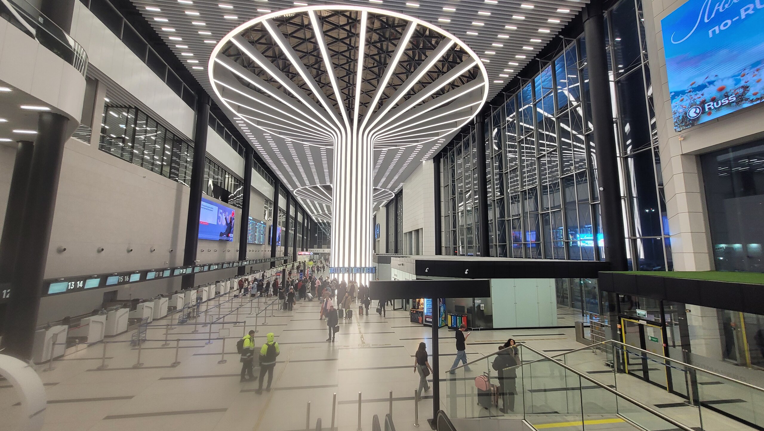 Хотела вставить видео, но что-то никак не получается, жаль конечно. Но тем не менее, отзыв свой начала и собираюсь его продолжать. Для меня эта поездка стала незабываемой. Во-первых, была она на Новый год, а во-вторых, так далеко я ещё не уезжала и не улетала. Хотя нет, улетала, но в противоположную сторону, в Калининград, ну и теперь настало время полететь в другую сторону, там я ещё не была ни разу. Да чего греха таить, дальше Красноярска я вообще нигде не была, всё как-то больше на запад ездила, и на юг тоже успела сьездить, почему бы теперь восток не начать осваивать. В общем, летим. Отмечать Новый год вне дома, для меня стала хорошей, доброй традицией. Сначала это был Калининград, потом Бишкек, потом Шардж. Куда же на этот раз? Когда меня спрашивали, где я буду встречать Новый год? Мой ответ был, понятия не имею. Так я отвечала за две недели до праздника, также я отвечала и за два дня до Нового года. Народ меня не понимал. В смысле? Праздник практически завтра, а ты до сих пор не определилась? Но я, действительно, не знала, вернее у меня было два варианта. И тут я вспоминала наш хороший, добрый, новогодний фильм "Ирония судьбы, или с лёгким паром! Помните, как там пассажир, который летел до Красноярска говорил, в худшем случае я Новый год встречу в этом кресле, а в лучшем тоже в кресле, только в воздухе. "Вы встречали Новый год в воздухе?" - спрашивал пассажир. Вот и мы до этого Нового года не встречали Новый год ни в кресле в аэропорту, ни в кресле в самолёте. И даже не знаю, какой из этих вариантов лучше, потому что могу рассказать только об одном. Ну, а почему были такие непонятки? Всё просто, наш рейс по расписанию был 31 декабря в 22.50. Будь где-то нелётная погода и кресло в аэропорту нам было бы обеспечено. Я за неделю до 31 декабря смотрела табло Толмачёво и, действительно, в один из дней самолёт вылетел ночью. Ну, а всё началось у нас сначала с метро, где мы ехали с дедом Морозом и Снегурочкой. Вот когда бы мы ещё так ехали? У нас с аэропортом хорошая транспортная развязка, единственное переживание было, а вдруг "пробки", всё-таки Новый год, да ещё и вечер. Сначала мы доехали до нашего железнодорожного вокзала. Никаких машин, никаких парковок, которые тут совсем ни к месту. Само здание вокзала было построено в 1939 году и если присмотреться, то напоминает паровоз. Ну и раз Новый год, как же без ёлочки. Переживания были напрасны, мы ехали практически в пустом автобусе 111 Э, именно он курсирует каждые 30 минут между аэропортом и ж/д вокзалом. И доехали мы за 30 минут, так быстро я доезжала только рано утром. А тут вечер 31 декабря. Может все уже разъехались, а может ещё только будут разъезжаться, и было просто ещё рано? Но как бы чего не было, мы были рады, что всё хорошо сложилось и мы прИехали в аэропорт без нервотрёпки. Потом мы как-то быстро зарегистрировались, вообще на стойке регистрации не было никого, потом мы как-то подозрительно быстро прошли досмотр, тоже никого не было. И тут мне стало тревожно. Где подвох? Забегая вперёд, напишу, подвох был, не зря мне тревожно стало, ну не может быть так всё хорошо.