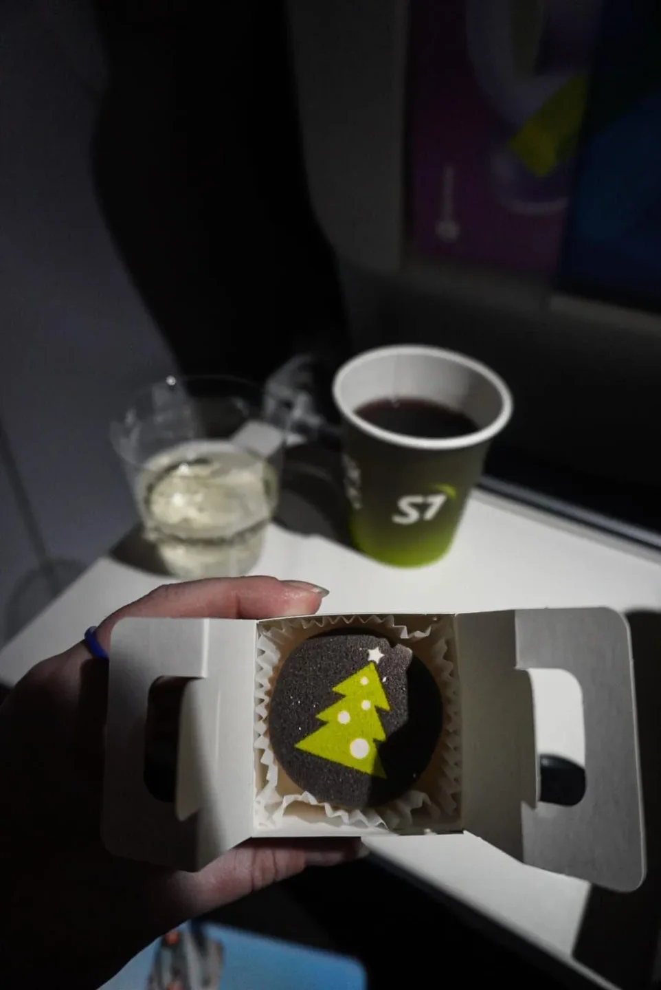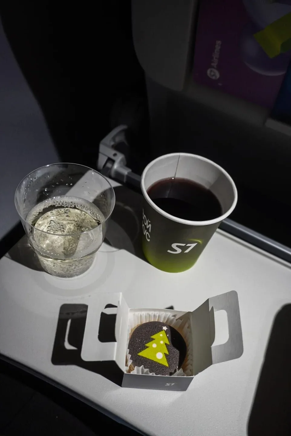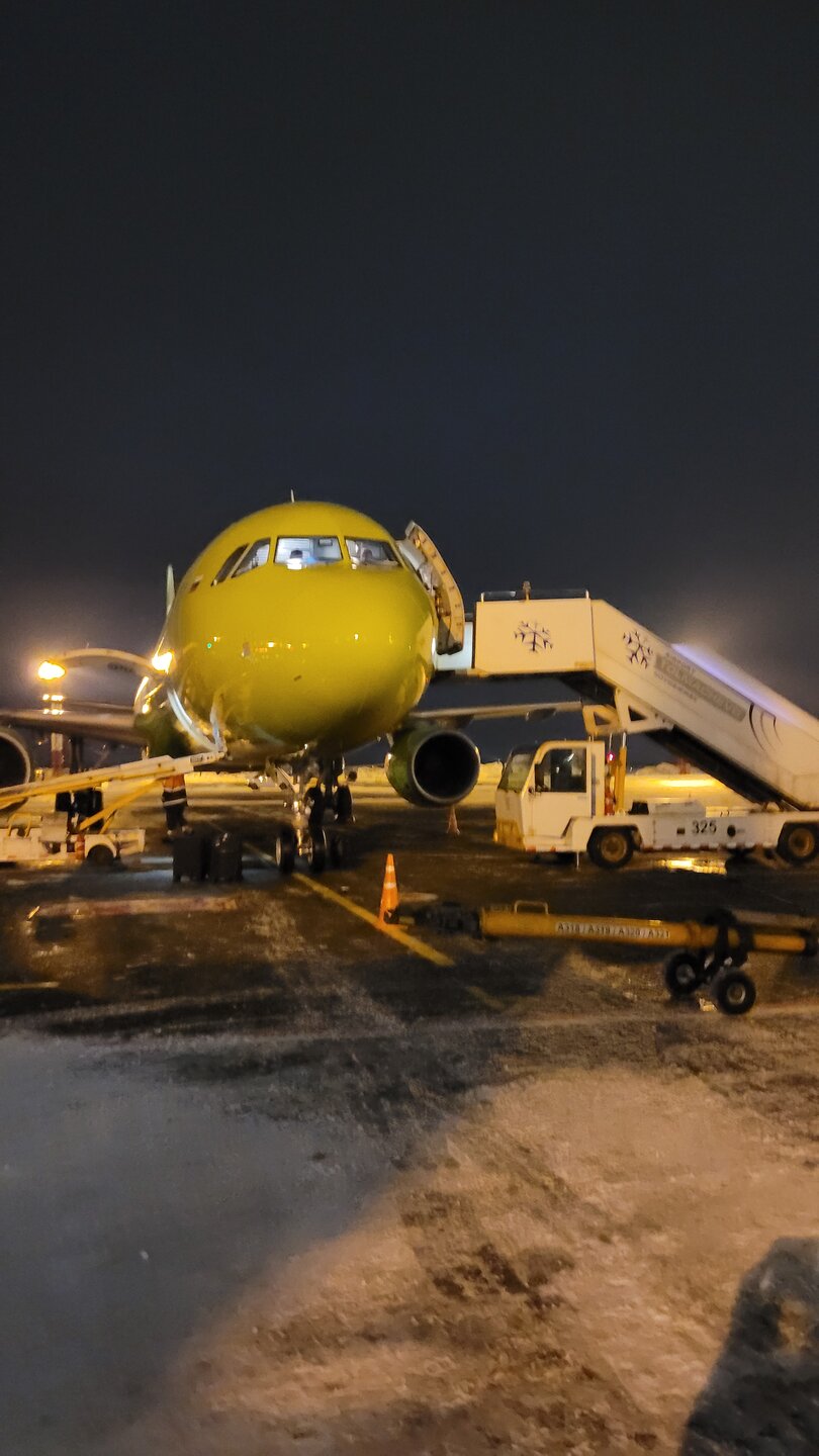 Выход нам назначили самый-пресамый последний. Аэропорт то не маленький. Я честно сказать, думала, что мы пешком до Владивостока дойдём. Ну очень долго шли по переходу. 20251231_212152.mp4 Неужели дошли. А ещё нам на регистрации предложили ручную кладь сдать в багаж. Мы честно сказать думали об этом, будет такая опция предложена или нет. Предложили, и мы такие радостные с ходу согласились. Много ли человеку для счастья надо? Да хоть не думать как эту ручную кладь впихивать в багажный отсек, которые у Севен всегда забиты под завязку. Может они поэтому и стали предлагать такую услугу? Когда мы летели в Баку, и из Баку нам тоже предлагали. Посадка началась вовремя, и мы уже точно знали, что встречать Новый год будем в воздухе и теперь я знаю как это происходит. И есть у меня один вопрос, вернее три. Говорят, как Новый год встретишь, так его и проведёшь. Вот отсюда эти вопроса. Я буду весь год летать? В планах вообще такого нет. Или я весь год буду уставшей? Так как время всё-таки было вечернее и усталось чувствовалась. Или я весь год буду замученной? И такое тоже присутствовало. Но первый вариант мне, конечно, нравился больше. Но он был менее всего вероятней. Хотя кто его знает. Я когда-то Новый год встретила в постели с температурой 39, но я не болела весь год и в постели весь год тоже не провела. В общем, примета не сработала. А вот и наш самолётик. Не по рукаву, и не на автобусе, мы спустились по лестнице вниз, вышли на улицу и вот он стоял, мы до самолёта дошли пешком. По поводу ручной клади я переживала зря, в самолёт мы зашли самые первые. И нам предстояло скоро встретить Новый год, ещё по нашему Новосибирскому времени. Мы когда сидели ждали посадки, впереди нас была какая-то семья с двумя детьми и я понимала, что они тоже на наш рейс. Девочка вела себя не лучшим образом, кричала, кусала своего брата, которого не было не видно, не слышно, и прям очень хотелось, чтобы эта семья была как можно дальше от нас. Лететь 6 часов с таким ребёнком....удовольствие сомнительное. Переживала я зря, даже не знаю где сидела эта семья. А вот прям перед нами была очень весёлая компания женщин. Эта была очень весёлая компания, веселились они от души. Но потом я поняла, как же хорошо, что эта компания оказалась рядом. Я прям счастлива была.
