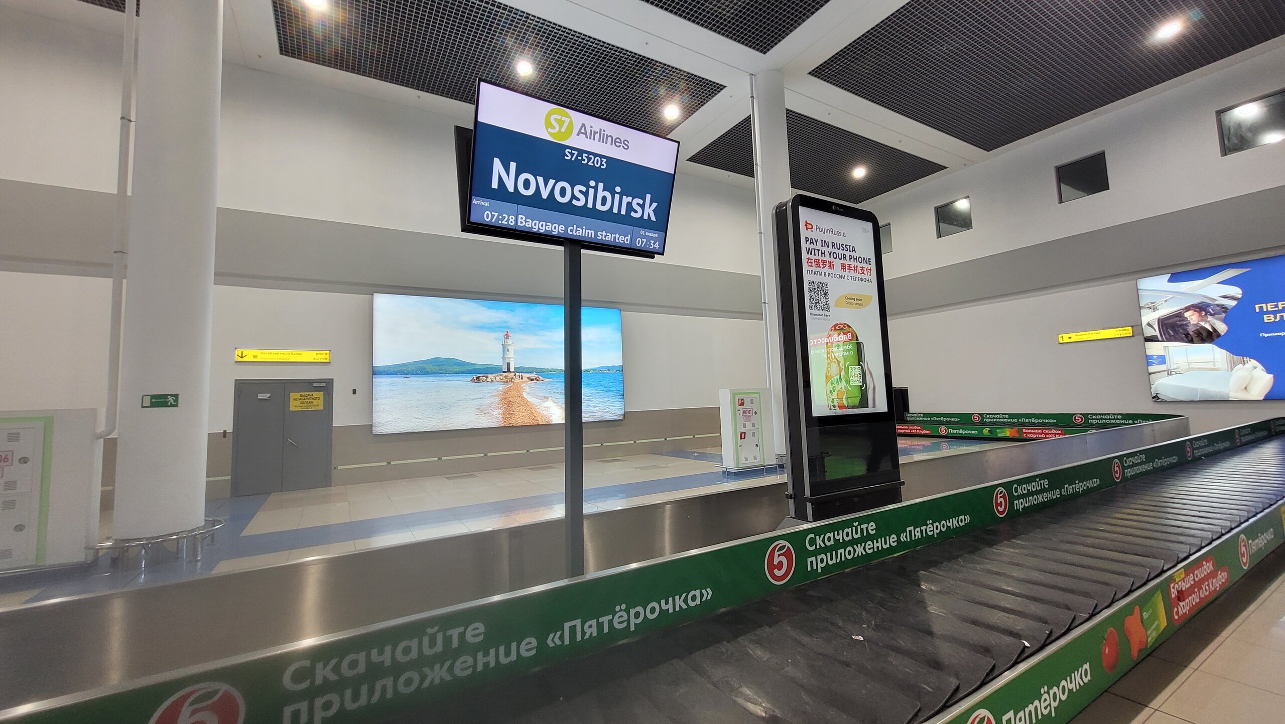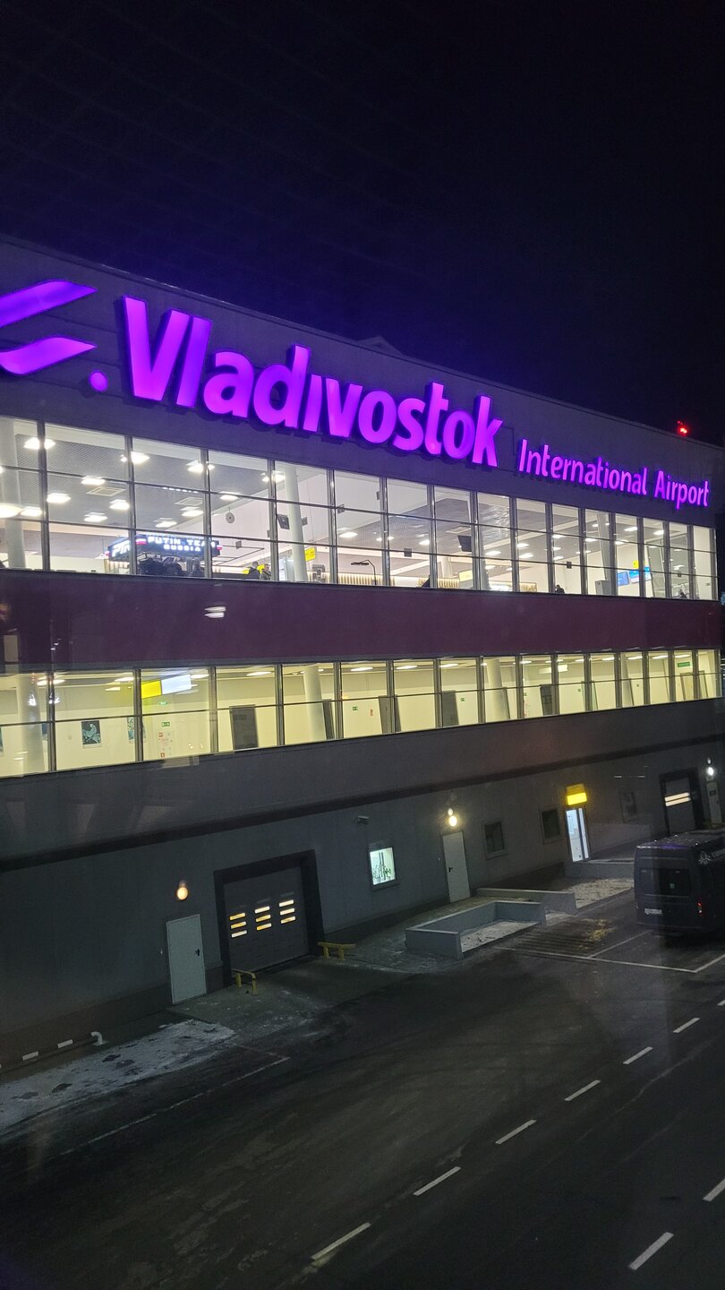 И вот он Владивосток, даже не верилось, я на самом краю России, я на востоке. Где Новосибирск, а где Владивосток. Я прям счастлива,что у нас есть прямой рейс в этот город. У нас и поезда ходят, но как подумаю ехать поездом 5 дней туда, 5 дней обратно, я уже устала. Хотя летний отпуск мне позвоялет только на дорогу тратить 1.5 недели. Но нет, никогда. Я людей которые ездят поездом столько дней, считаю героями. А если из Москвы, это вообще неделя. Две недели тратить на дорогу? Нет, и ещё раз нет. Только самолёт. Да и время терять не хочется. Ну, а это уже телетрап, именно так нас выпускали из самолёта. Хоть где-то, в Новосибирске какая-то проблема с этим. Получили ручную кладь. Никого в зоне выдачи багажа не было. У нас тоже такое бывает, редко, но бывает. До поездки я просматривала способы как добраться до города, и самый лучший, самый быстрый - это электричка. Очень удобно. И при этом не надо выходить из здания аэропорта. Но мы вышли, уж очень хотелось сфотографировать аэропорт, да время нам позволяло. Нас даже не волновало, что надо будет заново проходить досмотр, где нас попросили расстегнуть верхнюю одежду. У нас в Новосибирске такого нет. А вот в Норильске при входе в аэропорт не то, что расстегнуть просят, просят снять верхнюю одежду, прям как на досмотре после регистрации. Из аэропорта мы думали, что уедем в часов 10 утра, поэтому никуда не спешили, делали как можно всё медленно, заселение всё-равно было только с 14.00. Но вроде все сделали, поэтому пройдя досмотр на входе в аэропорт, мы пошли на электричку. И только сейчас подумала, а с улицы нельзя было пройти сразу на элекричку? Честно сказать, даже голову не крутили, чтобы понять, да мы вообще не подумали тогда об этом. Да и по светлому зданию как-то лучше гулять, чем по темноте. А то гуляние по темноте ещё не дай бог в традицию войдёт.