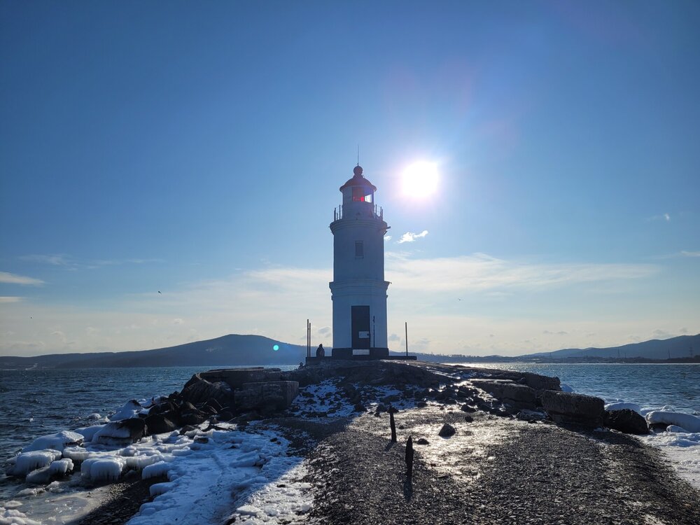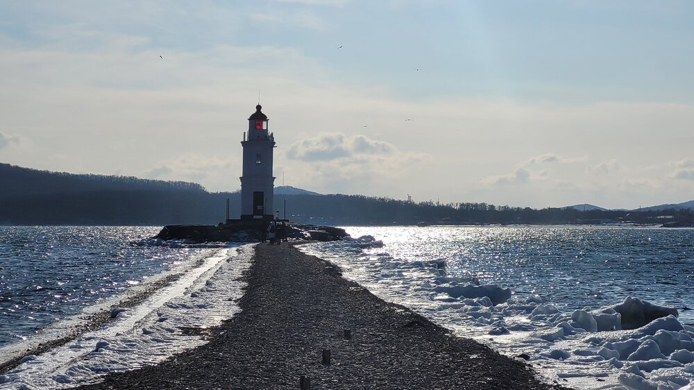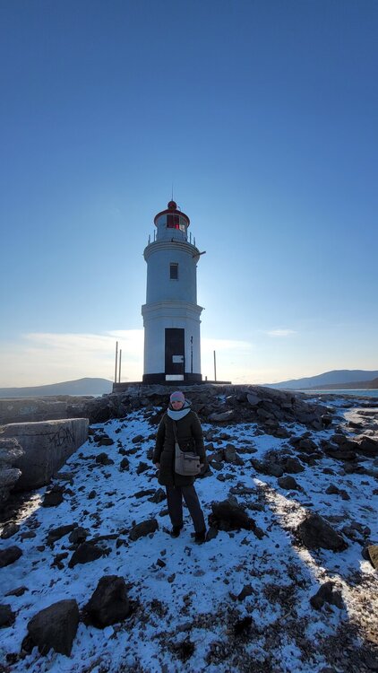 А вокруг была такая красота. И было непонимание. Ну как так? Около берега куча льда, а дальше вода. И несмотря на сильнейший ветер, я была так счастлива. Даже не верилось, что я на самом краю России. 20260101_112413.mp4 И вот он Токаревский маяк, который начали строить в далёком 1910 году. Мы до тебя дошли. Финансированием строительства занимался Отто Линдгольм – самый богатый промышленник на всём дореволюционном Дальнем Востоке. Его судьба настолько удивительна, что заслуживает отдельного рассказа. Токаревский маяк Отто Линдгольм строил, кстати, за свои личные деньги. Маяк назван в честь Михаила Яковлевича Токаревского, военного моряка и гидрографа, который служил на Балтике и никогда не бывал во Владивостоке. В 1862 г. экспедиция В.М. Бабкина (исследователь побережья Приморского края) описывала залив Петра Великого и в память о Токаревском назвала его именем мыс, на котором позже установили маяк. Место очень живописное в любое время года и часто посещаемое. Здесь обязательно нужно пофотографироваться и оставить себе на память колоритные фотографии, особенно в периоды рассвета и заката, что мы и сделали. В туристических программах данное место обязательное к посещению и отмечается, как одна из визитных карточек Владивостока. Сюда привозят гостей города и туристов, чтобы показать место, символически отмечающее "край земли и откуда берёт начало Тихий океан".