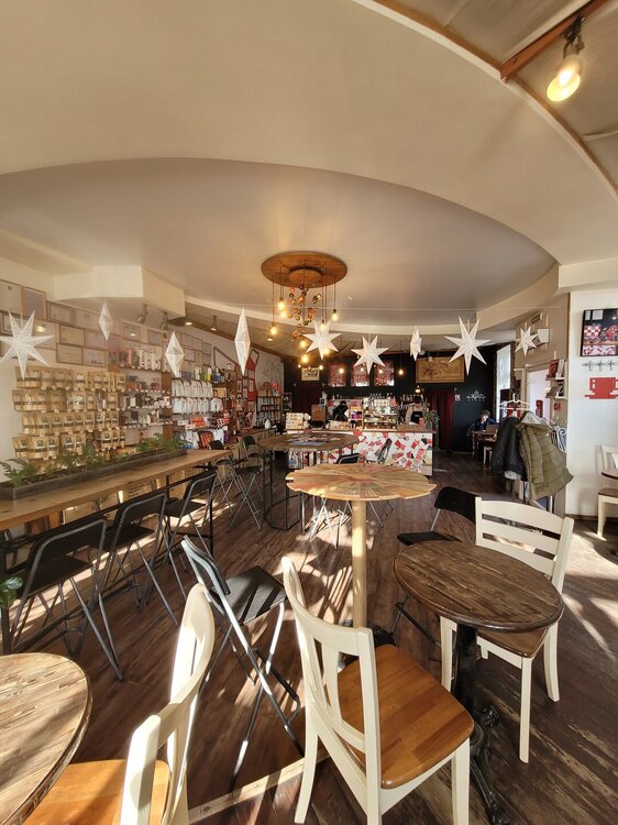 Если бы мы сразу пошли в отель, то это было бы слишком как-то грустно. По дороге зашли в одну кофейню, особо кофейню не выбирали, просто шли мимо, и не прогадали, очень интересный интерьер, а также уютная и какая-то даже домашняя атмосфера. И кофе был на высоте.