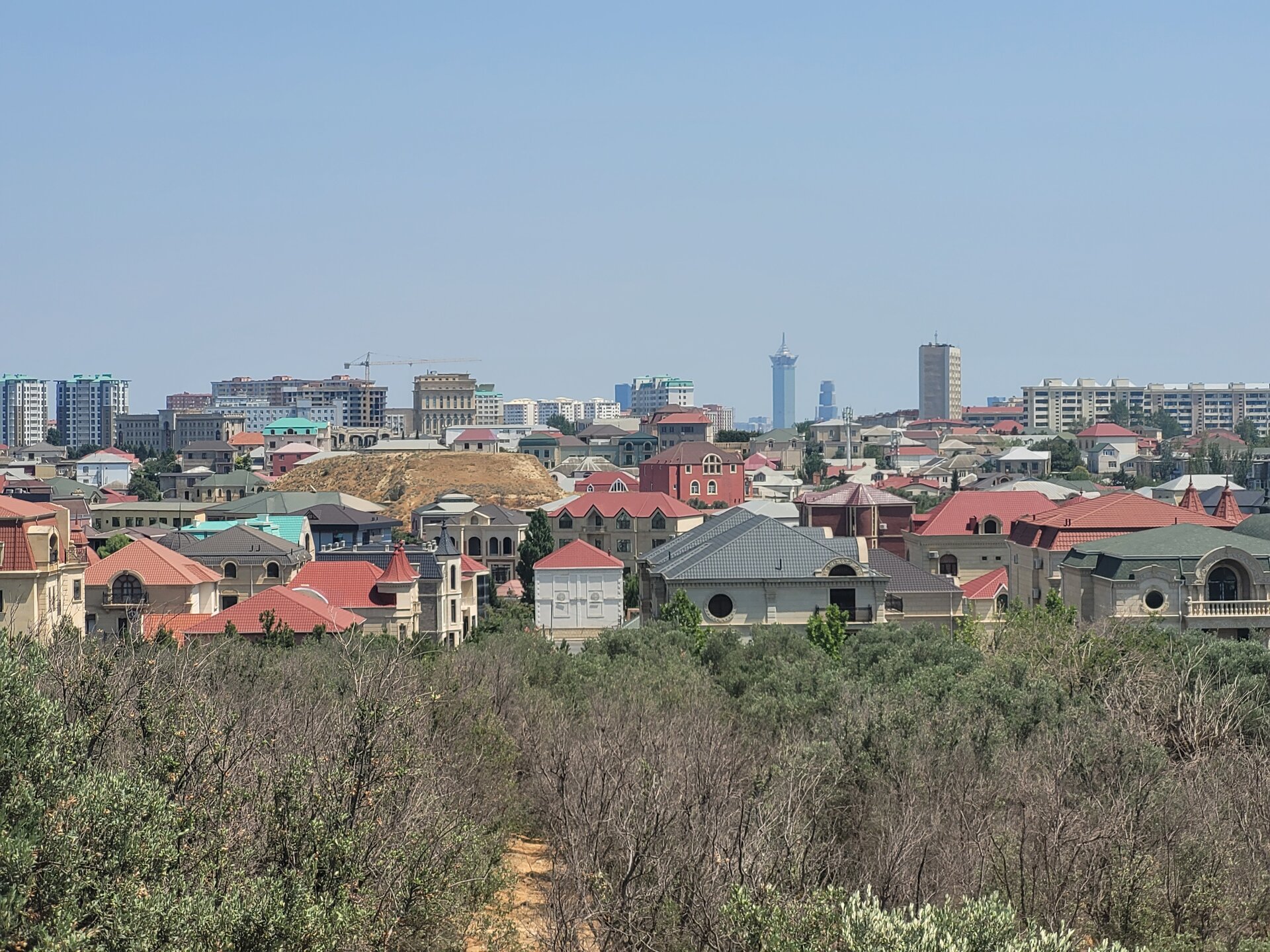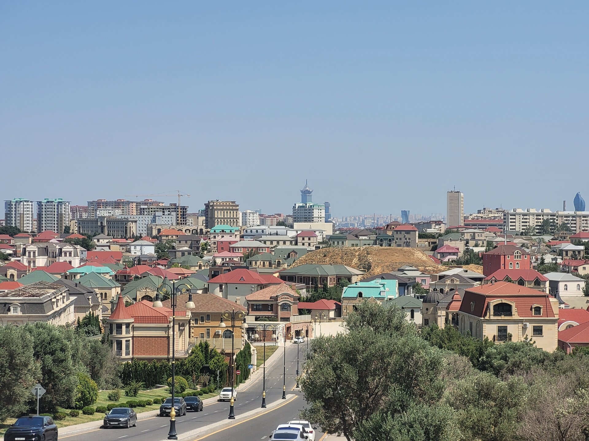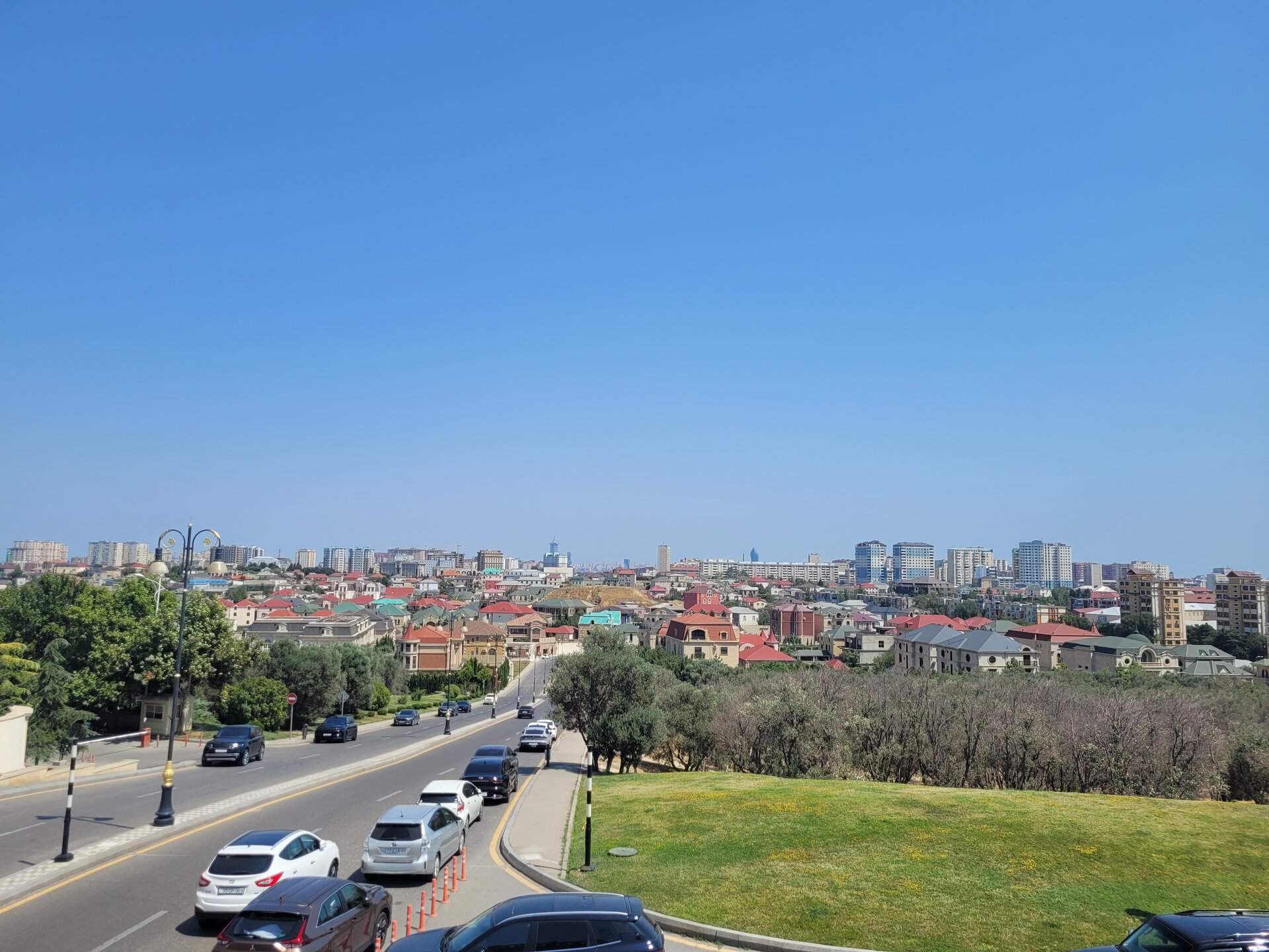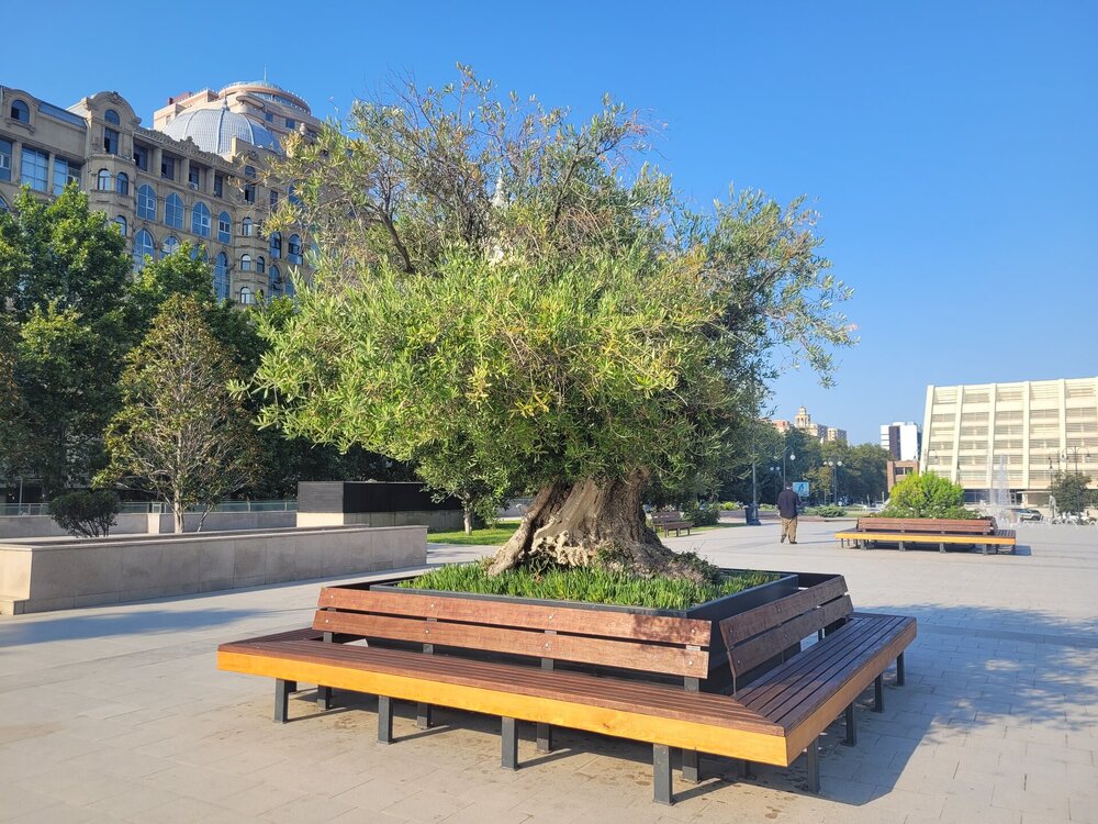 Баку — столица контрастов, где Старый город с крепостными стенами, средневековыми дворцами и мечетями соседствует с небоскрёбами, фешенебельными отелями и бутиками. Где-то до сих пор стоят советские многоэтажки и старинные дома, а на улице бельё сушат на верёвках. И чтобы понять какой Баку, и настолько он разный, нужно гулять не только по набережной или в центре города, нужно уехать чуть дальше, вот тогда и будет более ясная картина. Но одно могу сказать, Баку потрясающий любой. В каких-то районах строят элитные ЖК, шикарные парки, памятники современной архитектуры и торговые центры, а в каких-то районах всё гораздо проще. И когда мы шли к станции метро Насими, решили купить ягодку, вот так, прямо у обочины дороги. Уж очень хотелось попробовать их ягодку. Продавец, молодой парень, как мы поняли, по-русски ничего не понимал, может что-то понимал, но общаться всё-равно было не легко на русском. Ну тут, как из под земли вырос другой продавец, уже в годах, вот с ним мы и поговорили. Как я уже выше писала, с кем бы мы не заговаривали, кто бы с нами не заговаривал, все спрашивали откуда мы. Все нам говорили, что рады видеть туристов из России и рады, что мы к ним приезжаем. А мы тем временем доехав до дома, хотя это ещё ничего не значило. Мы лишь приехали, чтобы перевести дух, поесть ягодку и делать дела дальше. А это наш двор, где каждый день, при чём утром, днём, вечером и ночью, было примерно машин 100. Как они все умещались в одном дворе, остаётся только догадываться. Как я уже писала, в Баку какое-то миллионное количество парков, скверов, обойти их, даже если объехать, то всё-равно вряд ли такая затея увенчается успехом. Но вот один из таких парков был рядом с нашим домом. И как я стала всё чаще говорить, не откладывай на завтра то, что можно сделать сегодня. Иначе мы просто никогда не дойдём сюда, это же рядом, ну завтра дойдём, в итоге так и не доходим. В общем, идём знакомиться ещё с одной достопримечательностью Баку.