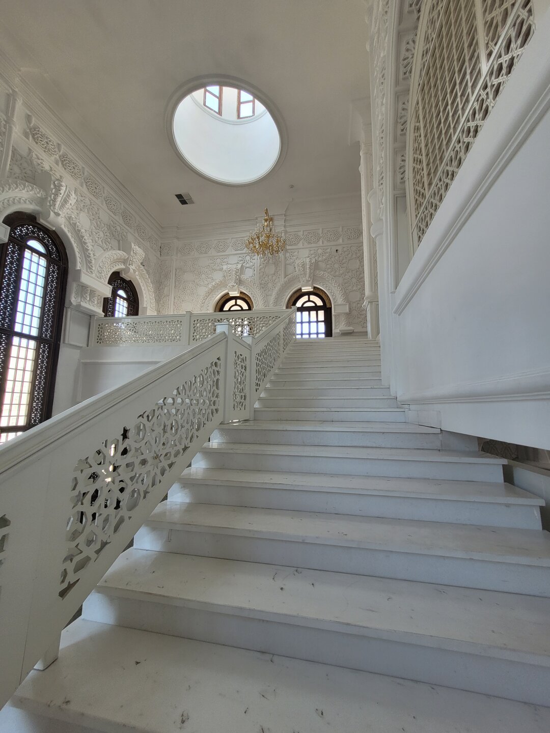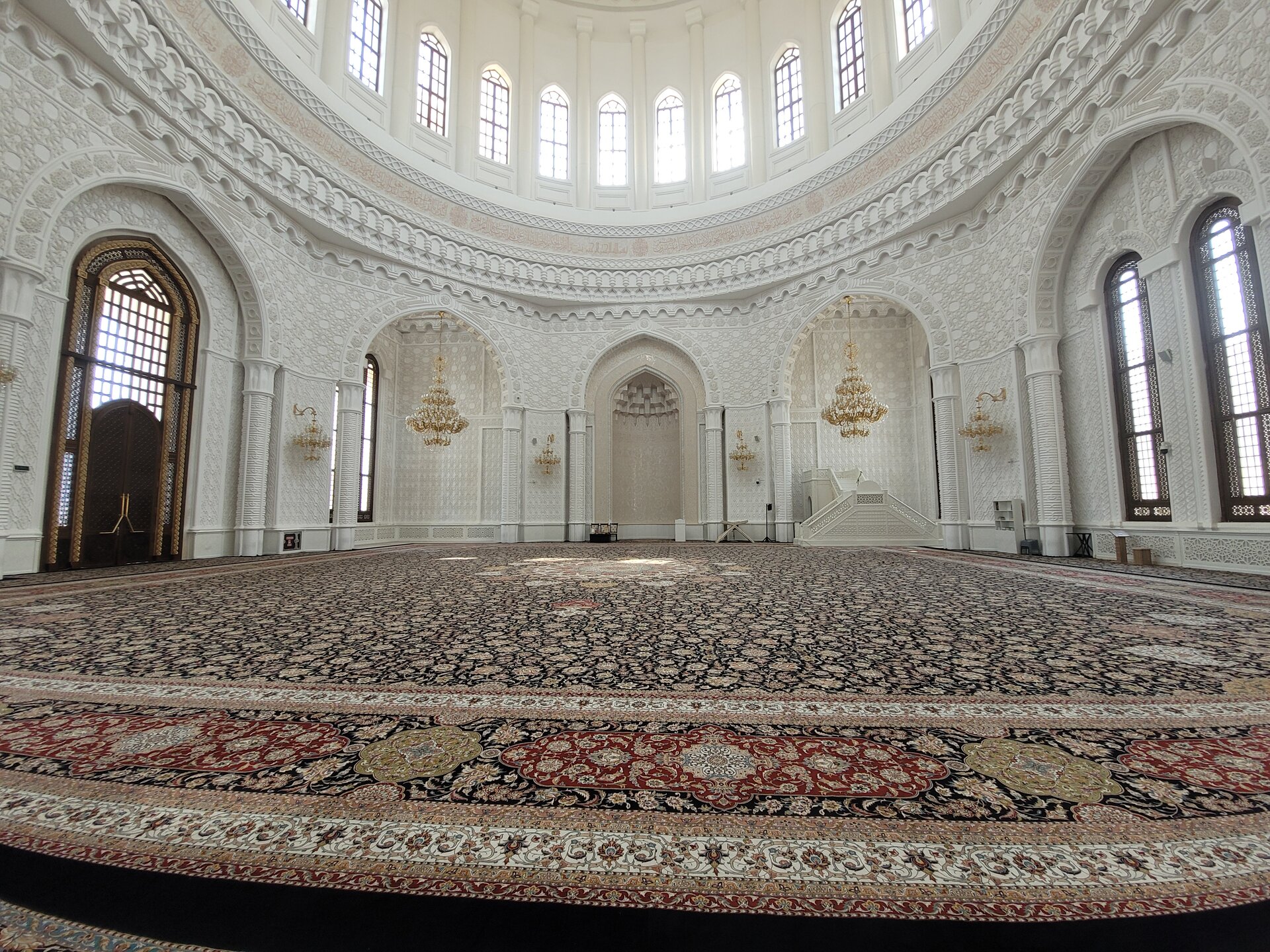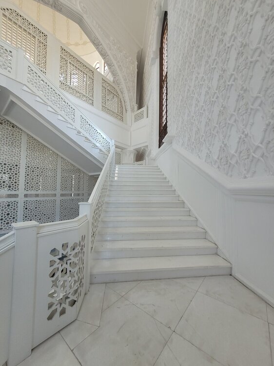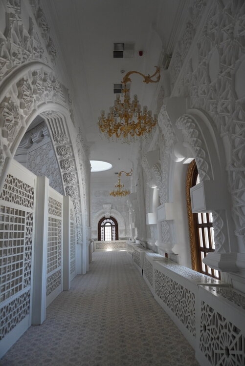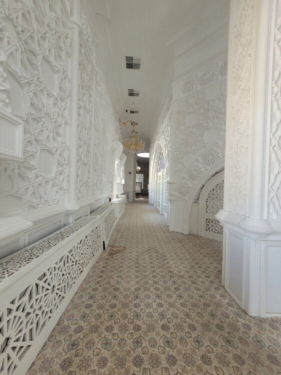 После того, как мы посетили мужскую часть мечети, я спросила: "А можно нам на второй этаж подняться? Женщина разрешила. И мы поднялись вот по этой лестнице, которая, на мой взгляд, мало походила на лестницу в мечети, больше походила на лестницу в театре. Второй этаж, как это и бывает, был не таким огромным, но он был не менее красивым, чем первый. 20250729_140036.mp4 Вот такая мечеть, которую, как я уже выше писала, удалось просто каким-то чудом посетить. Я честно не поняла, когда она бывает открыта, для чего такое огромное здание, если по сути оно бывает открыто в какие-то определённые дни или даже день. Но на этом посещение мечети не закончилось. Нас в начале, когда мы спрашивали про мечеть, чуть ли не каждый говорил, что да, она открыта. Где открыта, если всё закрыто. И вот после посещения основного здания, назову это так, мы всё-таки поняли, куда же нас все посылали.