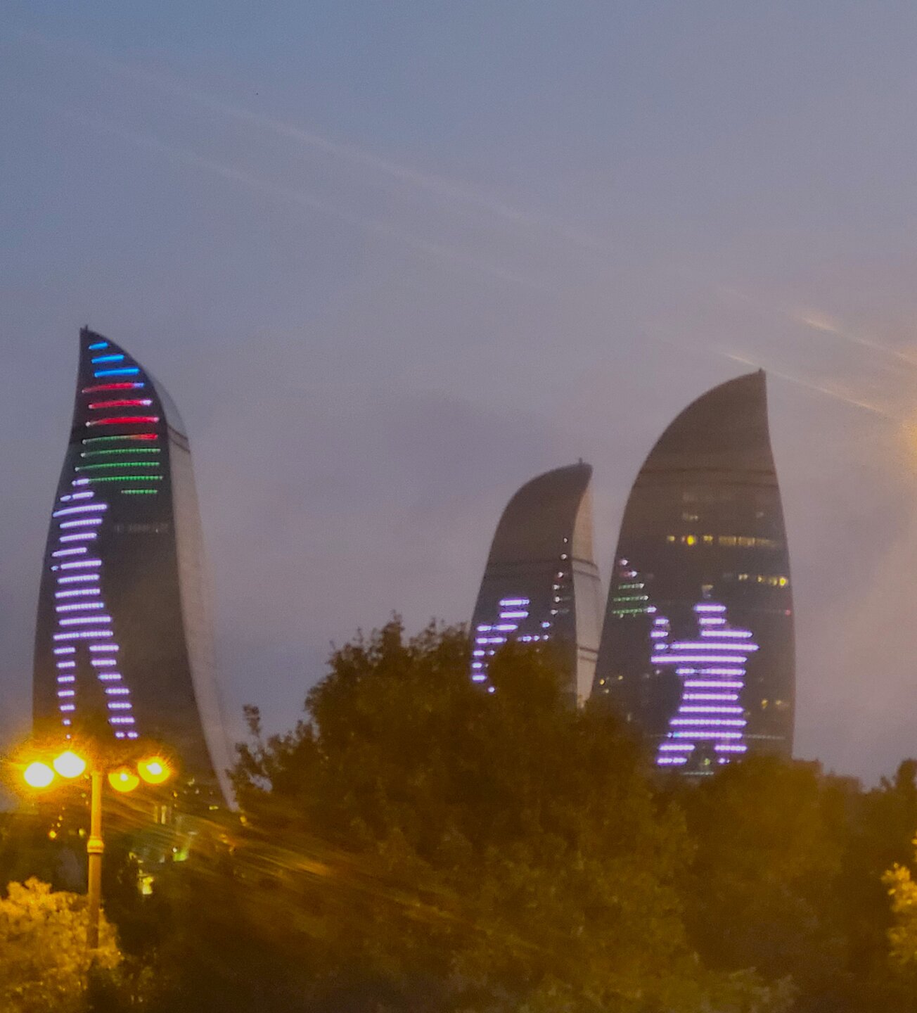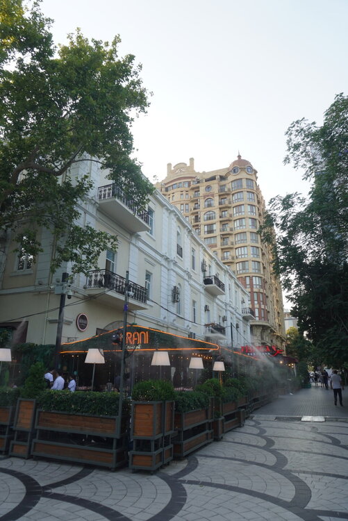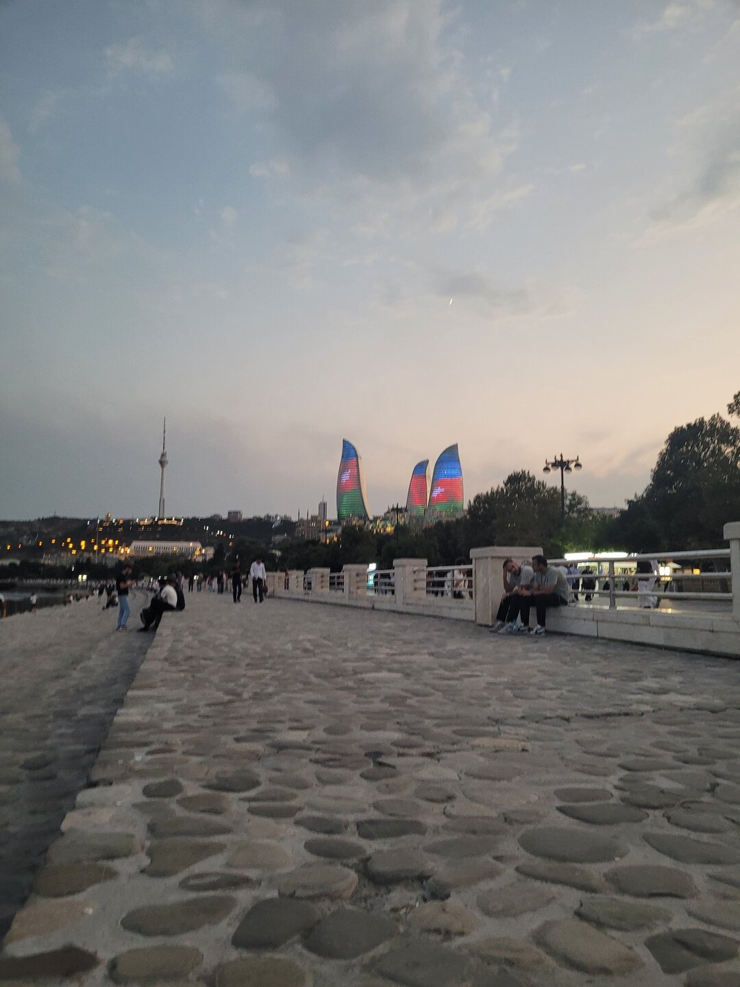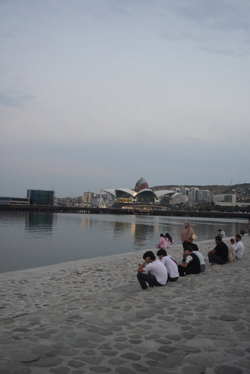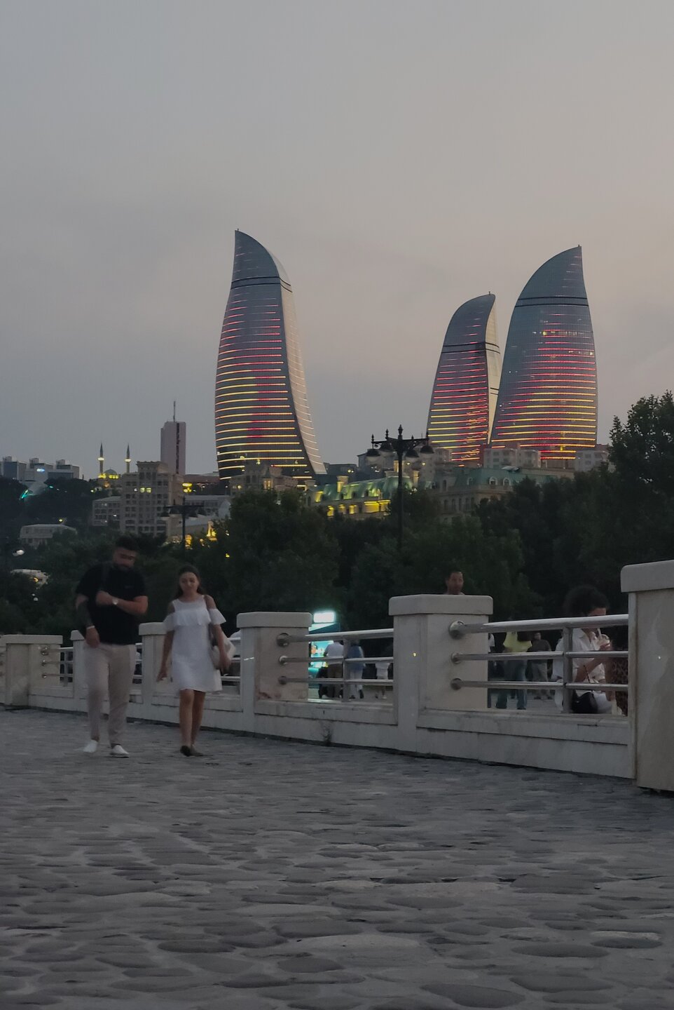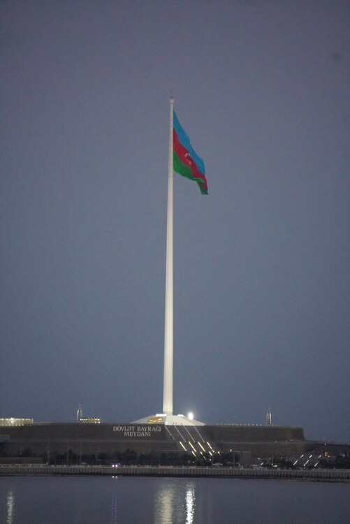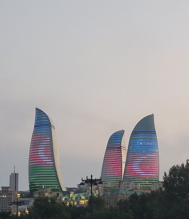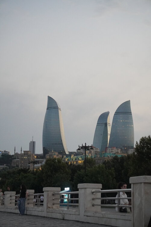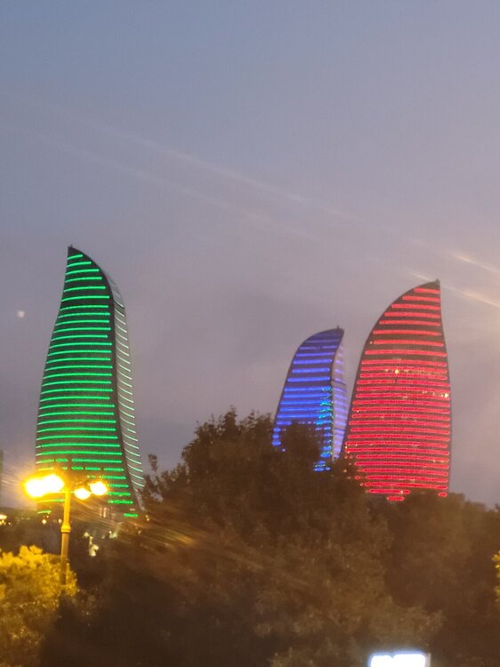 А вот дальше мы вернулись на Приморский бульвар, я прям с облегчением вздохнула, ну слава богу, хоть что-то помню. Людей здесь было заметно больше, хотя нет, людей было не то что много, их было очень много. Уже такие узнаваемые достопримечательности Баку. Торговый центр "Дениз Молл. Бакинский Кристальный зал. Площадь Государственного флага с самым большим флагом в мире. Но вечером мы на набережную пришли не просто так, а ради вот этих башен, которые называются Пламенными. Именно вечером можно увидеть светопредставление этих башен. 20250729_201832.mp4 20250729_201434.mp4 Как я сказала на видео, башни меняют свой рисунок четыре раза. Я уже потом подумала, а как эти башни светятся, если смотреть их представление с Нагорного парка? Это что, значит есть повод вернуться, подняться в Нагорный парк и посмотреть оттуда? Но в любом случае Баку стоит того, чтобы вернуться в этот город даже просто так. И не важно, что здесь надо быть намного внимательным переходя дорогу. Как я уже выше писала, здесь есть только одно правило, что здесь нет никаких правил, где приспичило, люди там и переходят дорогу. Поначалу нас это шокировало, потом стала ловить себя на мысли, что уже почти привыкла. Как доча говорила: "О, мы уже дорогу переходим, как настоящие бакинцы". Не важно, что здесь вечером со всех дорог только и слышно бибиканье, ну что сделать, если на Кавказе такой менталитет. Хотя чего это я наговариваю, когда уже шли домой, решила снять видео, за всё видео ни одного бибиканья, ну даже полбибиканья не услышали. Ну вот как так? Ну вот только что со всех сторон бибикали, а тут раз и все замолчали. 20250729_204204.mp4