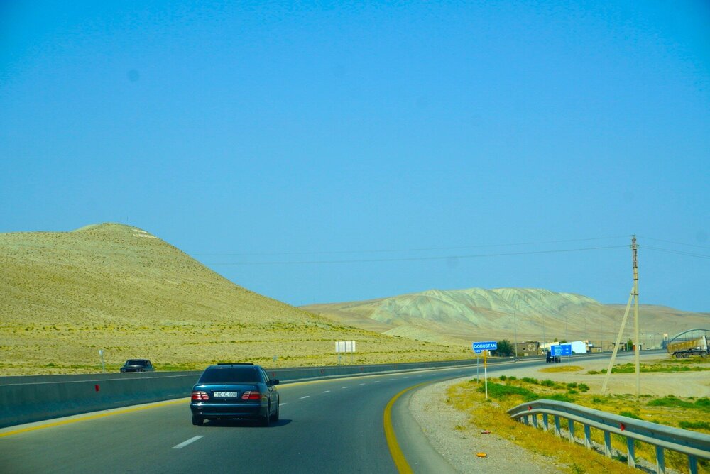 Наш 8-й день тоже был выездной, хотя изначально мы планировали всего две экскурсии за пределами Баку, но когда мы ездили смотреть горы Хызы, Розовое озеро и гору Бешбармаг, наш гид-водитель и предложил нам эту экскурсию, но с другим водителем, сказал, что реально не пожалеем, что за своих сотрудников он отвечает головой, и именно как он говорил, так всё оно и оказалось. Мы ни разу, и нисколечко не пожалели, что поехали. И как я уже выше писала, это было то незапланированное мероприятие, которое не входило в наши планы, и именно благодаря ему наша программа была перевыполнена. И так, мы едем на юго-восток кавказского предгорья, для начала на высоту 800 метров над уровнем моря, мы едем в город Шемаху, который расположен в 122 километрах от Баку. Как мне показалось, мы всегда выезжали из города одной и той же дорогой, как было на самом деле не знаю. Одни пейзажи сменялись другими.