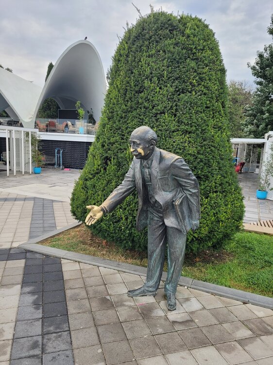 По мнению туристов, Бакинский бульвар - самое лучшее место для прогулок: чисто, аккуратно, просторно. Здесь есть всё для приятного времяпровождения - зелёные насаждения, фонтаны, скамейки, кафе и рестораны, детские развлечения. И нельзя не согласиться с таким мнением. Знаете, несмотря на то, что я была в этом городе, и сейчас рассказываю про Баку, понимаю, что я снова хочу сюда вернуться. Один только восхитительный вид на море чего стоит. Особенно красиво смотрится набережная вечером, когда всё сияет в огнях ночной подсветки. По периметру Бакинского Бульвара установлены ограждения, что так просто к морю ближе не пройти, но в некоторых местах всё-таки есть проходы. Ну, а кто-то делает проще, просто перелазиет эти ограждение. На набережной есть немало разнообразных скульптур, и вот одна из них. Не трудно догадаться, что все делают рядом с этой скульптурой? Ну, конечно, здороваются. И мы тоже на всякий случай поздоровались с этим элегантным мужчиной. Да чего греха таить, я на всякий случай и желание загадала. Не знаю, надо было или нет. Как-то привыкла, если надо с кем-то поздороваться или потереть какую-нибудь часть скульптуры, то надо и желание загадать. Уж я столько в своё время натёрла таких скульптур и столько желаний назагадывала, правда уже не помню, что это были за желания, а уж сбылось хотя бы какое-нибудь из них, об этом история вообще умалчивает. А это ещё один фонтан на Приморском бульваре, история которого начинается в1960-м году, именно тогда на бульваре появился этот фонтан, по сути представлявший собой бассейн, по глади которого плыли семь каменных птиц с выгнутыми, устремлёнными к небу длинными шеями. На создание скульптурной композиции вдохновили поэма Низами Гянджеви «Семь красавиц» и одноимённый балет Кара Караева. Но в 2007 году один странный мэр, который пытался превратить Баку в Дубай (вырубая зеленые насаждения и сажая пальмы), занялся реконструкцией Бульвара. В пустыне не бывает лебедей, наверное поэтому, любимый бакинцами фонтан был заменен на непонятную конструкцию из мрамора. Наверное, так бы и потеряли эту часть старого Баку, если бы вопросом не заинтересовалась Первая Леди, Мехрибан Алиева. Неизвестно, это была её инициатива или отклик на письма горожан, но возглавляемый ею Фонд занялся восстановлением исторического фонтана. И в 2018 году состоялось открытие нового-старого фонтана, вернув ему первоначальный облик. Вот так фонтан "Лебеди" опять стал одним из символов Баку. Ну, а мы идём дальше, это ведь была лишь малая часть того, что мы увидели на Бакинском Бульваре. 20250726_093350.mp4