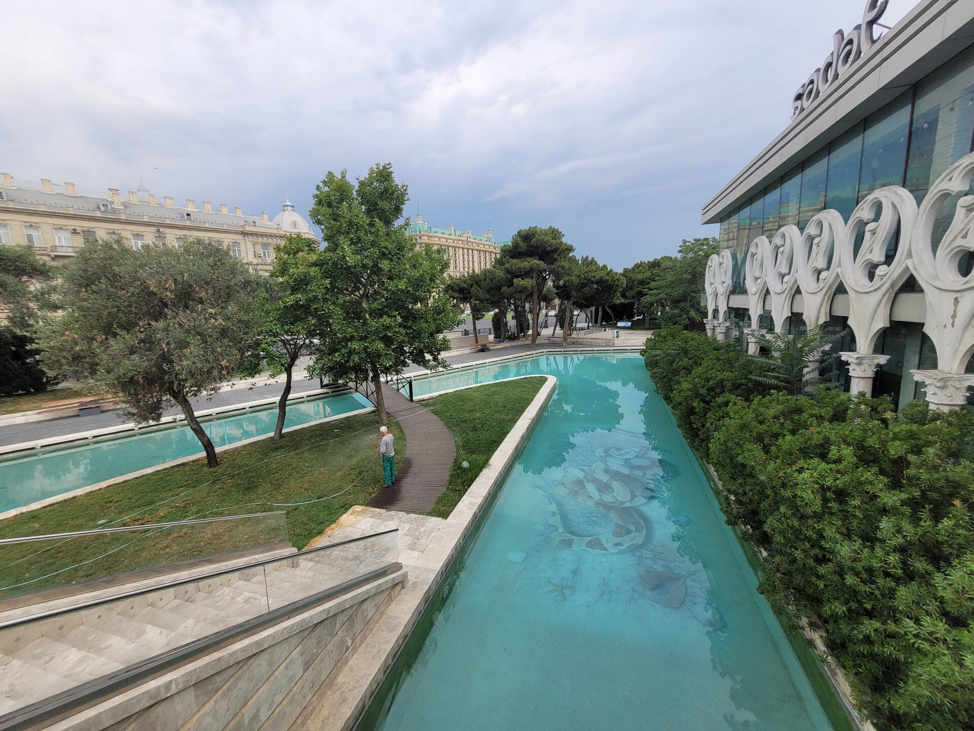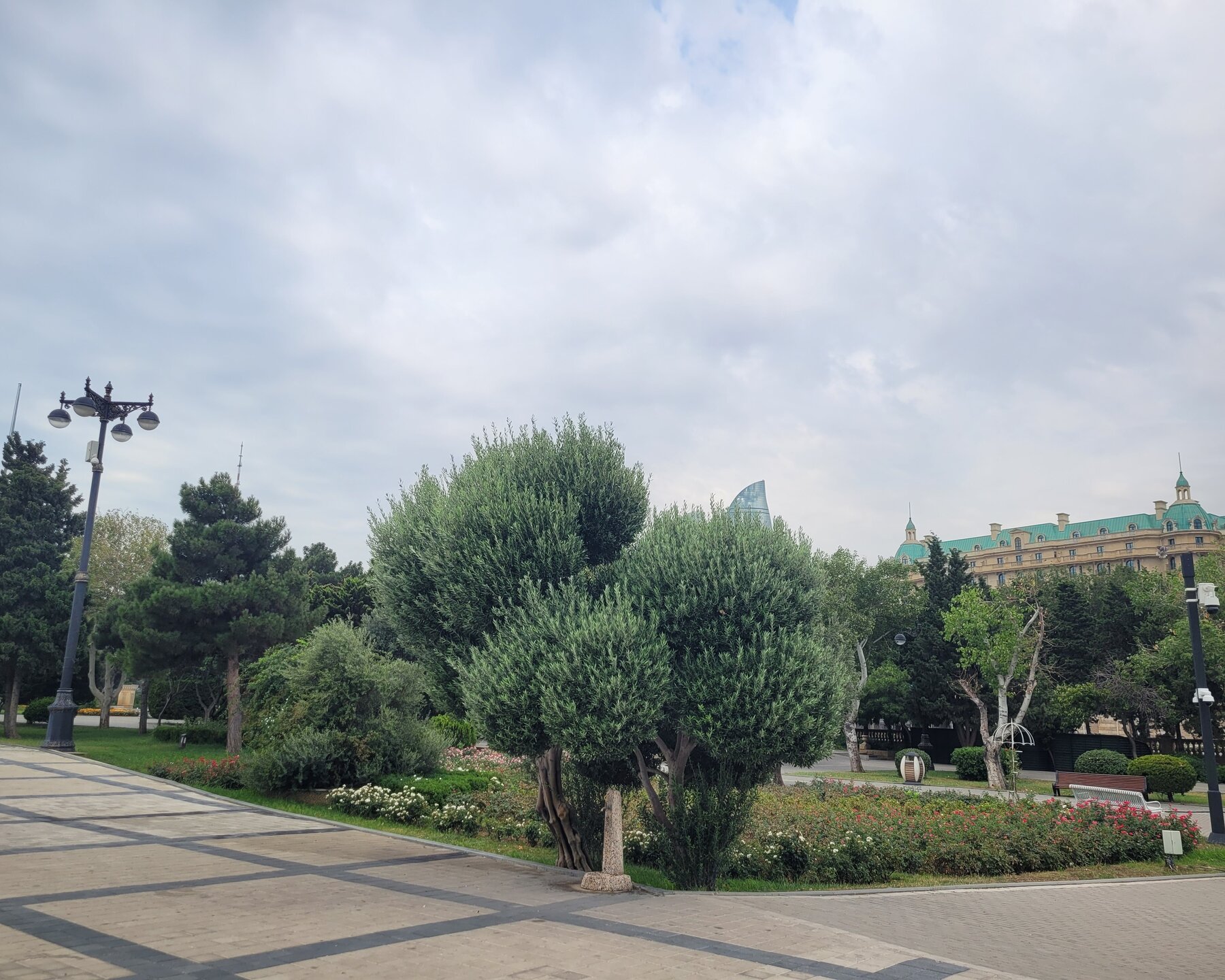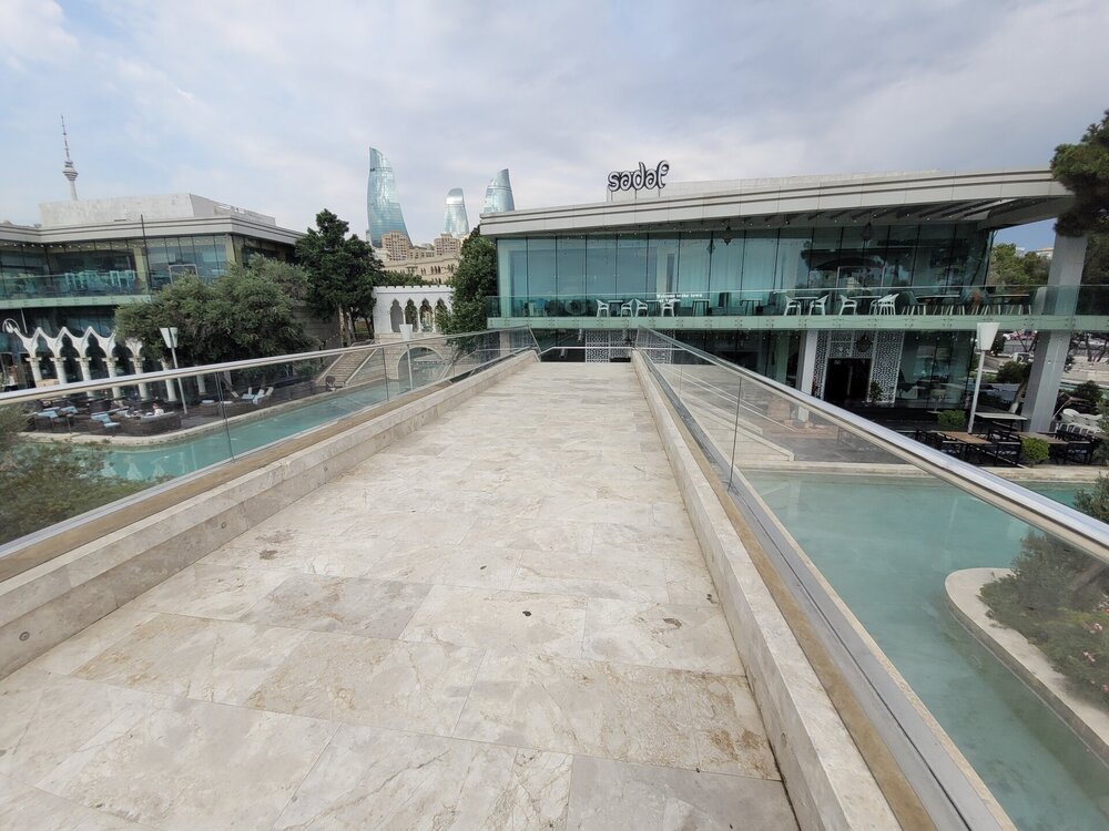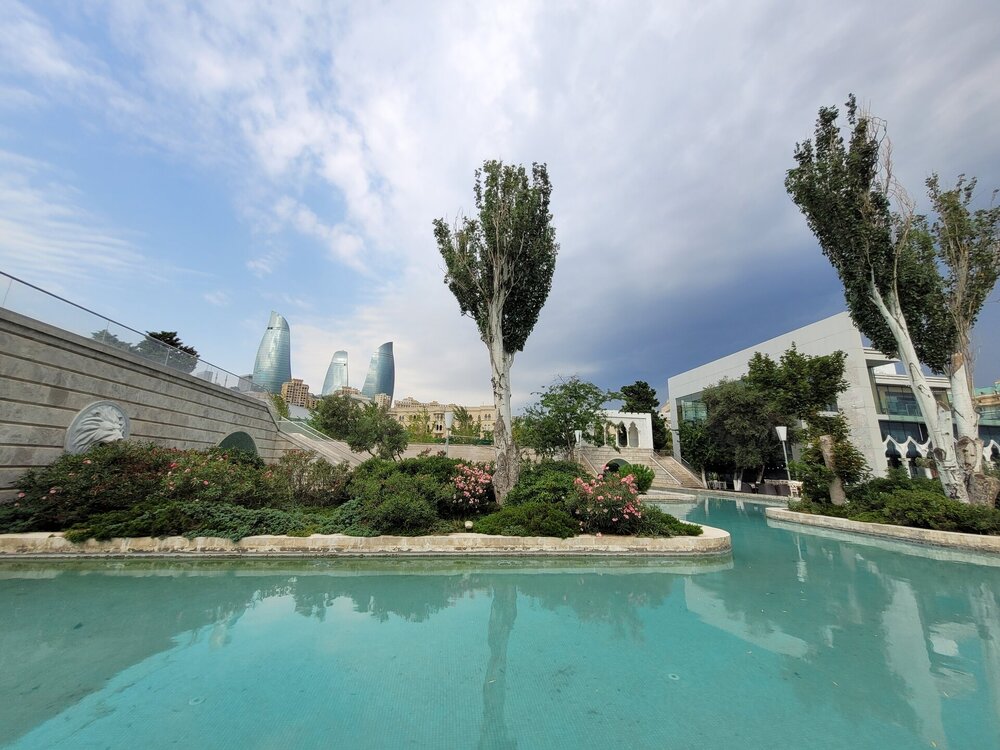 Баку — крупнейший город на берегу Каспийского моря, с населением более двух миллионов человек. Порт был основан в 11 веке и издревле привлекал своим местоположением — здесь пересекались древние торговые пути из Европы в Центральную Азию. За последние несколько десятилетий Баку расцвёл, главный источник финансирования города — добыча нефти. Сейчас, глядя на масштабное строительство, многие сравнивают столицу Азербайджана с Дубаем. Потому туризм процветает, причём не только летом. И Как я уже писала, Баку впечатляет большим количеством зелени и парков, где можно расслабиться и побыть наедине с природой. И даже здесь, около Бакинского бульвара, можно это сделать, конечно, если прийти сюда пораньше. И даже отсюда были видны Пламенные башни. Очень часто одну башню было не видно. Как я тогда сказала:" Она, наверное, девочка, вот и стесняется. Вот так, почти на набережной увидели торговый центр. Чуть позже мы ещё один пройдём. И вот мы наконец-то вышли на Бакинский бульвар, который протянулся на 16 км вдоль побережья Каспийского моря. В 2007 году набережная была реконструирована, на ней появились фонтаны, зоны отдыха, уличные аттракционы и кафе. В поездке я снимала много видео, коротенькие и чуть подлиннее, какие-то видео были, как я их называю, разговорного жанра. И Бакинский бульвар не стал исключением, как было здесь не снять видео, наконец-то, на 4-й наш день пребывания в Баку мы сюда пришли 20250726_084150.mp4 И нельзя не согласиться с тем, что нет лучшего способа почувствовать спокойную приморскую атмосферу Баку, чем пройтись по бульвару - одному из лучших прогулочных маршрутов столицы.