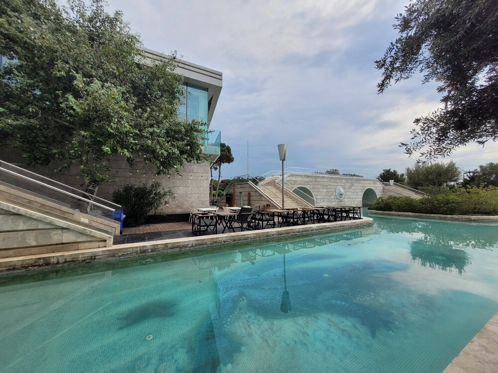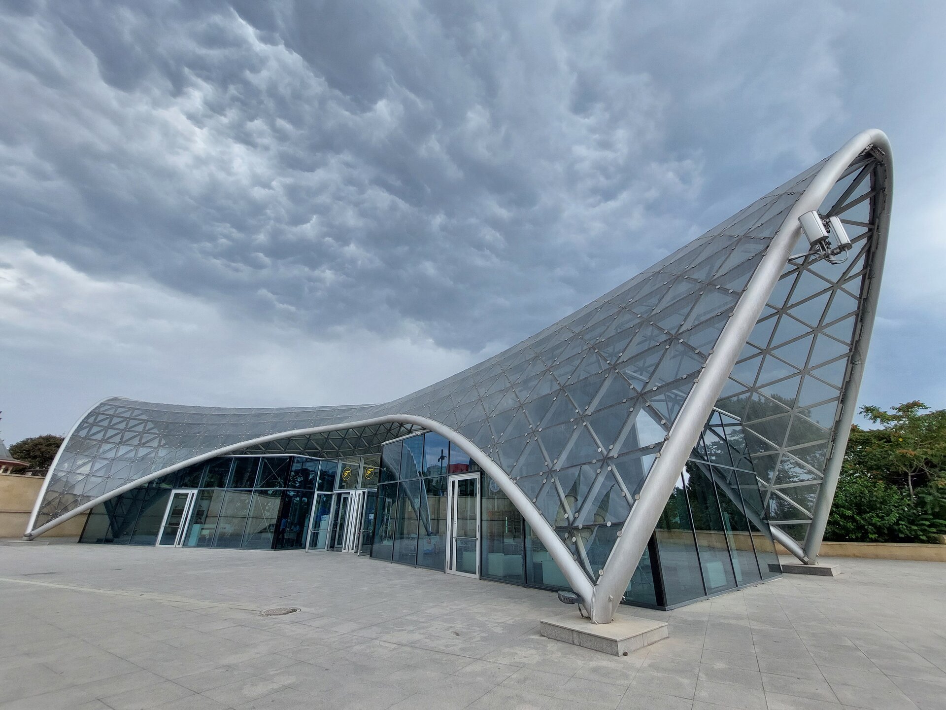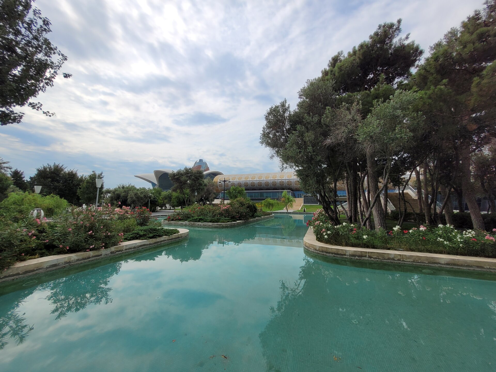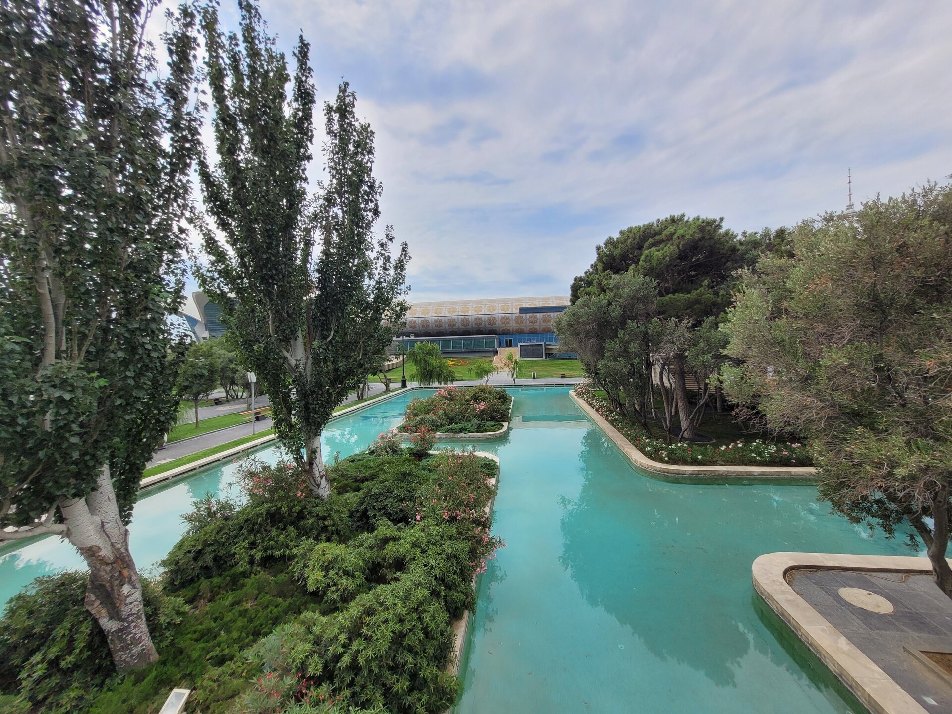 Вот такая она "Малая" Венеция в Баку. Очень интересное, атмосферное место. Не знаю как здесь бывает вечером, когда мы утром гуляли, как я уже выше писала, не было никого, нам никто не мешал и мы никому не мешали. Пару человек видели в ресторанах Венеции, да сотрудника, который убирал территорию, на этом пожалуй и всё. 20250726_095657.mp4 Музей ковра невозможно не узнать. Если знать как он необычно выглядит, то его можно увидеть издалека. Ну очень оригинальное здание. Можно даже сказать, что музей ковра находится в ковре, именно так, в виде свёрнутого ковра, и было построено этот здание. Восток и ковры — это неразрывные части одного целого, поэтому вовсе не удивительно, что в Баку существует музей, посвященный ковроткачеству. Это декоративно-прикладное искусство появилось в Азербайджане ещё в древнейшие времена, и с тех пор ковры не утратили популярность. В залах музея представлено около 6 000 ковров и бытовых предметов из ковровой ткани, коллекция национальной одежды, вышивки. Старейшие изделия созданы в 17 веке. Тут же установлены старинные ткацкие станки, можно понаблюдать за рабочим процессом. На мой взгляд достойный музей. Но нам многие говорили, если вы планируете посетить центр Гейдара Алиева, то музей ковра можно и не посещать. Но нам же всегда необходимо убедиться самим, так это или нет. А ещё наше внимание привлекли вот такие скамейки. Я не знаю правильно я подумала или нет, но мне показалось, что эта и скамеечка и столик. Можно и посидеть и перекусить чего-нибудь. Если сесть и кушать, то можно любоваться оригинальным зданием музея, А если сесть спиной к музею и просто посидеть, то можно любоваться Венецией. В общем, прикольные скамеечки. Мне понравились. Ну, а в музей мы, к сожалению, с первого раза не попали. Почему? Причину непопадания я рассказываю в своём видео. Поэтому повторяться не буду. А мне так и хочется спросить, вот как так? На гондолах с первого раза не прокатились, в музей не попали. В общем, на ходу меняли свои планы. 20250726_100950.mp4