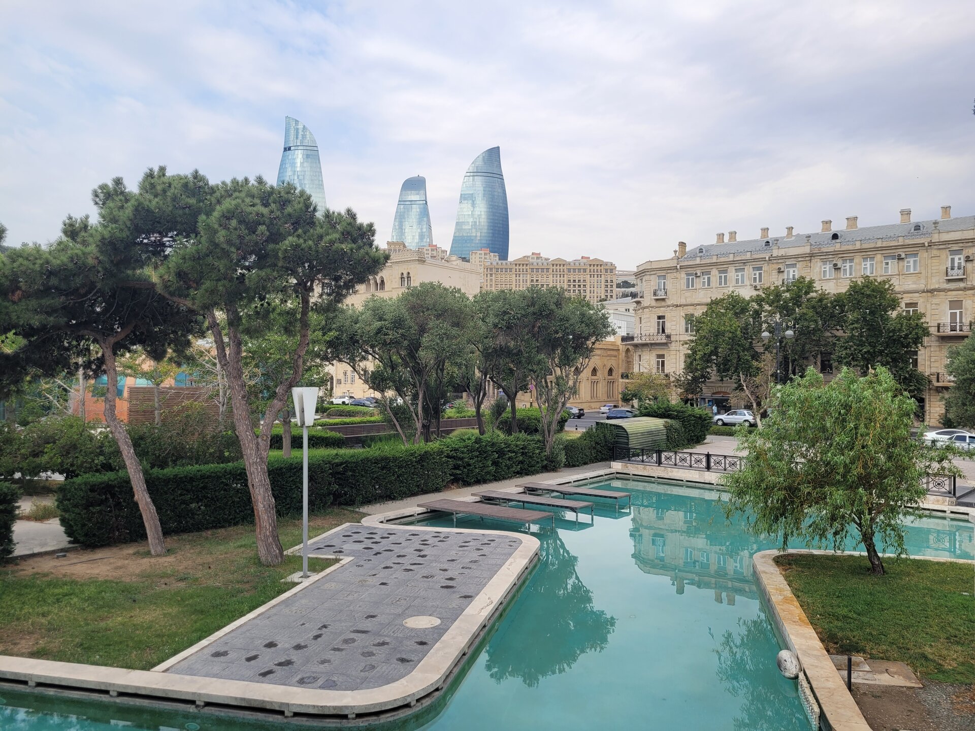 После посещения Баку, и несмотря на то, что я далеко не местный житель, но так и хочется сказать, добро пожаловать в Азербайджан, добро пожаловать в Баку, в город который гармонично сочетает в себе историю и современность. Здесь каждый турист откроет для себя беспрерывно меняющийся калейдоскоп жизни и энергии, именно здесь вы может посетить колоритные базары, где в воздухе витают яркие ароматы специй и свежих продуктов, а также, именно здесь такое разнообразие достопримечательностей, по сути пройдясь только по одной бакинской набережной можно познакомиться не с одной из них. Это и колесо обозрения, и Малая Венеция, и музей ковра, площадь Государственного Флага и другие. Ну что, идём знакомиться? И прежде, чем продолжу, немного о погоде в 4-й наш день пребывания в Азербайджане. 20250726_074908.mp4 Баку — «восточный Париж» на берегу Каспийского моря, древний город и современный мегаполис. Тут сплетаются в лабиринты старинные улочки, радуют взгляд элегантные модерновые здания с затейливыми балкончиками, хранят многовековые тайны могучие каменные башни — и сверкают стеклом башни небоскрёбов. Баку колоритен, как шедевр из Музея ковров, и уютен, как чайный дворик в глубине Старого города. Баку красив весь, и в этом мы смогли убедиться, когда рано утром просто шли по нему в направлении набережной, мы жили совсем недалеко, всего минут 20-25 пешего шага. Знаете, даже утренний дождь не испортил впечатления от этого потрясающего города. Да, было пасмурно, как-то серо всё и уныло, но посмотрите какие дома, как-будто игрушечные. Вот молодцы одним словом, что в центре и в ближайших от центра районах, нет ни одной высотки, нет ни каких небоскрёбов, что даже новые дома, если и строят в центре города, то в таком же стиле. Ну, а мы тем временем почти уже дошли, и увы, перед нами возникло препятствие, это дорога, и ни какая-нибудь маленькая, а прям дорожище. Вот как её перейти? Когда мы ещё шли, я наивно полагала, что тут что-нибудь да есть, светофор, какой-нибудь переход, ну хоть что-нибудь должно же быть. Но увы. И мы поступили проще. Ну должны же мы были почувствовать себя настоящими бакинцами. 20250726_083614.mp4