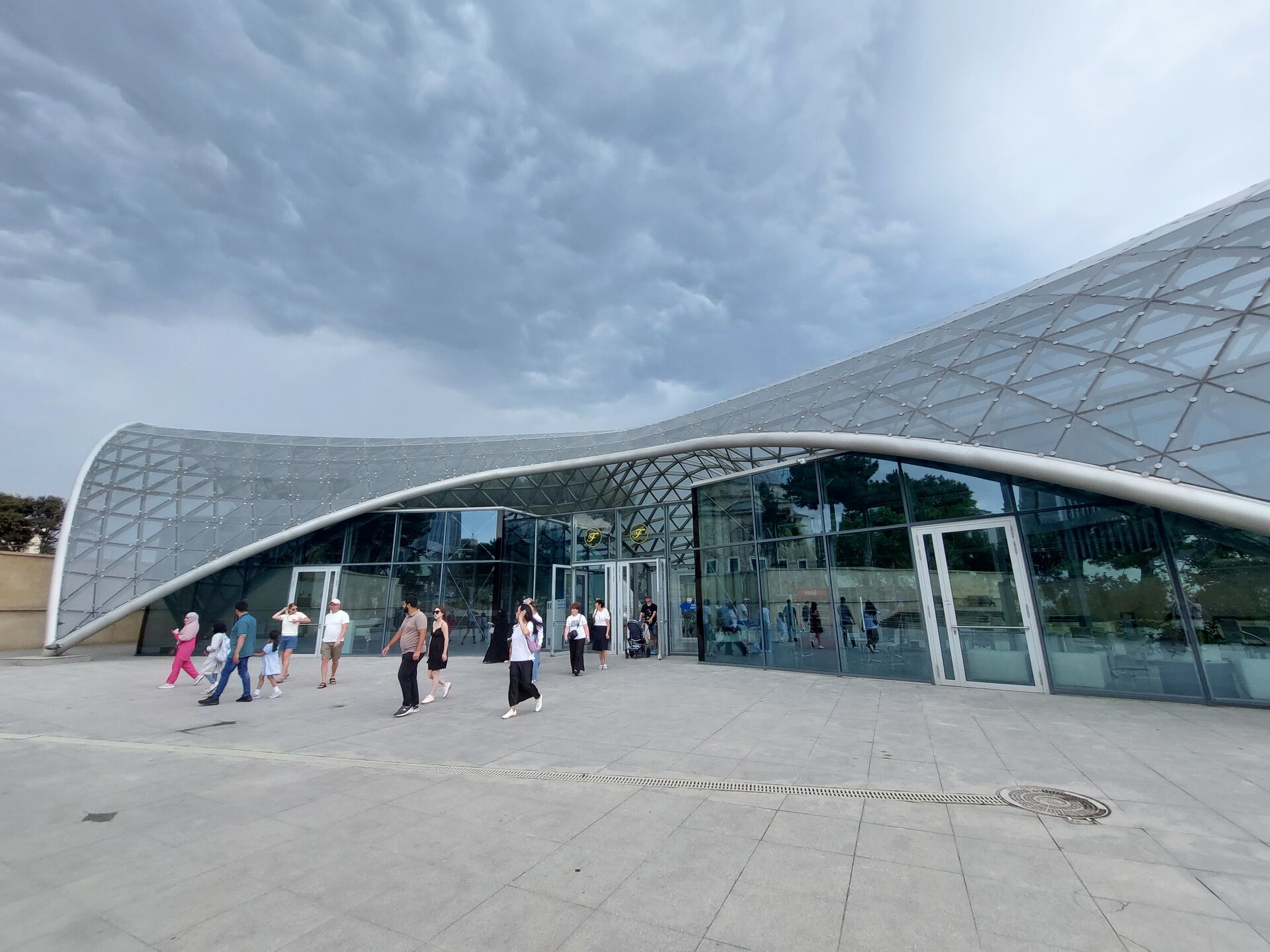 И ещё немного про Азербайджан, который всегда рад гостям. Тут можно смело ходить, гулять и любоваться жизнью. В Азербайджане очень безопасно. Весь Азербайджанский народ никому не желает зла и мы очень гостеприимный народ. Так что, добро пожаловать в Азербайджан. Именно так нам очень часто говорили. А ещё нам говорили, что очень рады туристам из России, рады, что мы к ним приезжаем. Ну очень было трогательно. На что я только и мы могла ответить: "А мы очень рады, что вы рады нам". Экскурсия в наш третий день была очень насыщенной, но это не значило, что надо приехать домой и на этом всё. Нет, это было бы слишком просто для нас. Ещё не ночь на дворе, и как нам говорили, Азербайджан безопасен и Баку в том числе, так что, оставив кое-какие уже ненужные нам вещи, мы поехали знакомиться с ещё одной достопримечательностью, которая тоже стояла в наших планах и до которой мы по времени успевали доехать, увидеть и вернуться обратно. Как я всегда говорю, мы же не спать едем, спать мы будем дома, так что едем. В это сложно было поверить, но нам нужно было доехать до станции Ичери-Шехер, которая всего за пару дней нам стала практически родной Как я уже выше писала, станция Ичери-Шехер самая ближайшая станция к старому городу и чтобы попасть на территорию Старого города, необязательно обходит всю стену, достаточно зайти за стеклянную пирамиду станции и там будут ворота. Но нам не нужно было заходить на территорию Ичери-Шехер, эта достопримечательность была рядом со станцией метро и со Старым городом в том числе.
