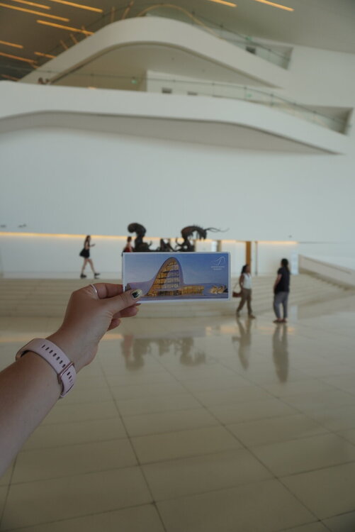 Если писать как внутри центра, то это что-то нереальное. Мне всё время казалось, что я попала в будущее, всё белое и красивое. Просторные залы, необычные световые решения и отсутствие прямых углов создают ощущение погружения в произведение искусства. Для многих гостей само пребывание в здании становится отдельным впечатлением, позволяющим оценить смелость и гениальность архитектурного замысла. А на этих ступенях не фотографировался только ленивый. Что же ждёт посетителей в данном центре? Именно здесь можно погрузиться в историю и культуру Азербайджана, посетив музейные экспозиции и разнообразные выставочные залы. Выставка состоит из 5 залов, в каждом из которых демонстрируются уникальные экспонаты, отражающие историю страны и её культурное наследие. На выставке представлены все периоды истории Азербайджана, демонстрируются экспонаты, относящиеся к различным областям её культуры. Перед входом в первый зал огромный экспонат из ниток. Как-будто ковер взяли и аккуратно разложили на каждую ниточку. А вот зал с музыкальными инструментами для меня стал самым интересным. Здесь собраны старинные азербайджанские музыкальные инструменты. И именно в этом зале мы задержались на некоторое время. Вот эти коврики здесь не просто так. Если на такой коврик встать, то можно услышать, как звучит музыкальный инструмент. Это надо было только видеть, как взрослые люди бегали по этим коврикам. Да, выглядело это по-детски, одновременно могло звучать и два и три инструменты. Но в принципе всё, что надо я услышала. Как стало понятно, я тоже побегала по коврикам. 20250727_131820.mp4 20250727_131738.mp4