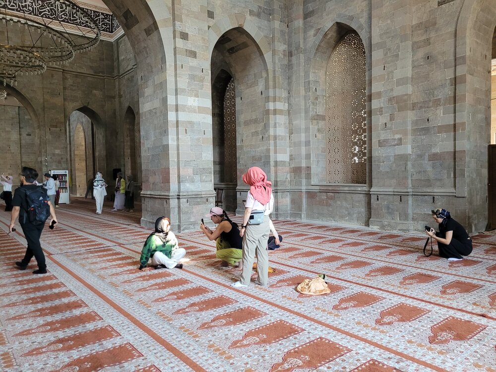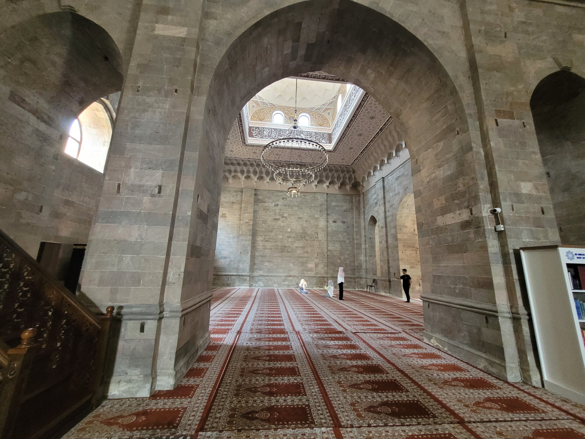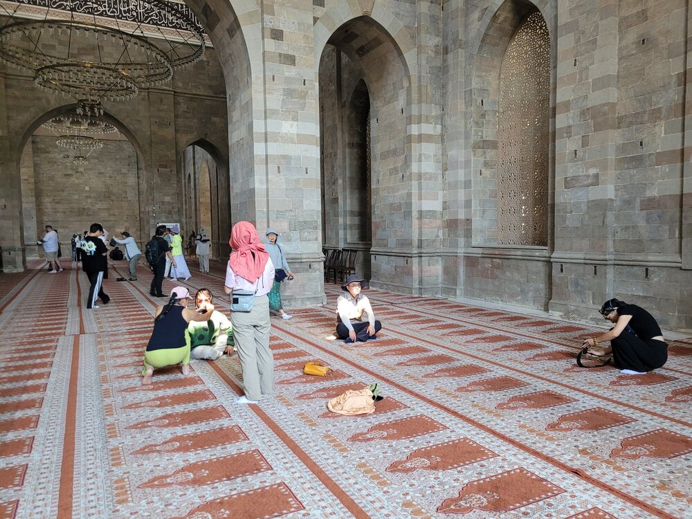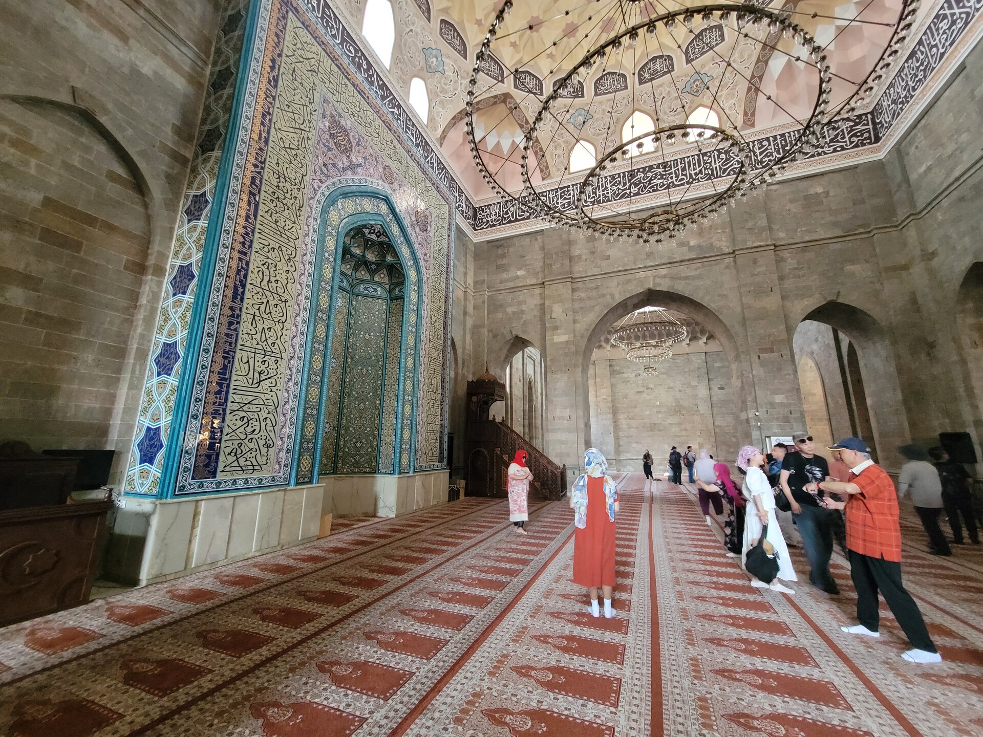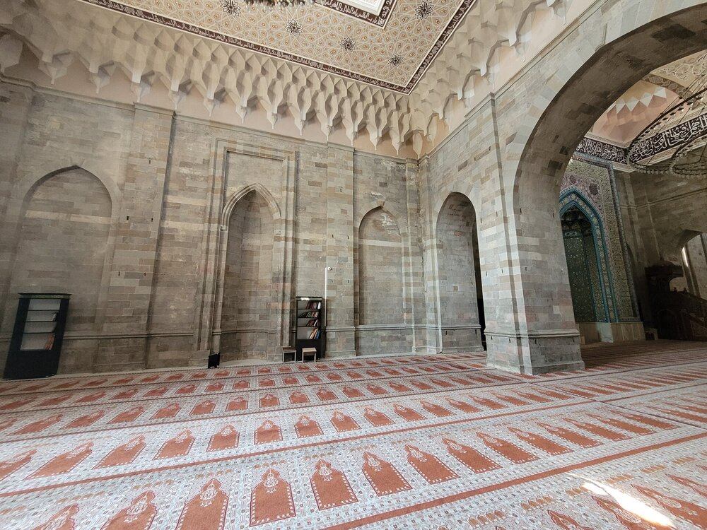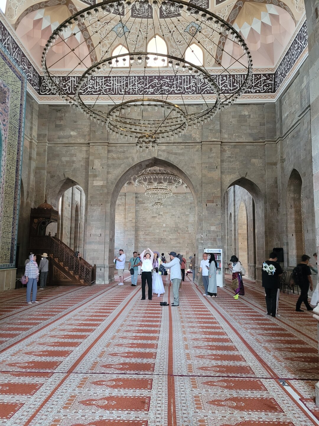И так, что же из себя представляет мечеть? Это просторные залы, высокие арки, мягкий свет, льющийся через окна, а утонченные узоры создают здесь удивительное ощущение покоя. Говорят, во время одного из восстановлений мечети строители обнаружили в ее фундаменте древний кувшин с монетами. Считалось, что эти монеты служили оберегом для мечети и символом процветания. Часть этих монет, как утверждают, до сих пор хранится в местном музее. И всё бы ничего, но нам не очень повезло, в это самое время в мечети оказалась группа китайских туристов. А что такое китайские туристы, я думаю знают многие. 20250730_112309.mp4 Хотя, после посещения Эмиратов, я поняла, что китайские туристы совсем не умеют фотографироваться. А я ведь раньше их считала профи. Лично мне Джума-мечеть показалась очень аутентичным местом. Да, не самая яркая из увиденных мной мечетей, но ее возраст внушает уважение, а архитектура завораживает своей простотой и мощью. По сравнению с богато украшенными мечетями в других странах, Джума мечеть в Шемахе, конечно, проще, но в этом ее прелесть. И сегодня в среднем зале мечети могут одновременно совершать богослужение 1500 человек.