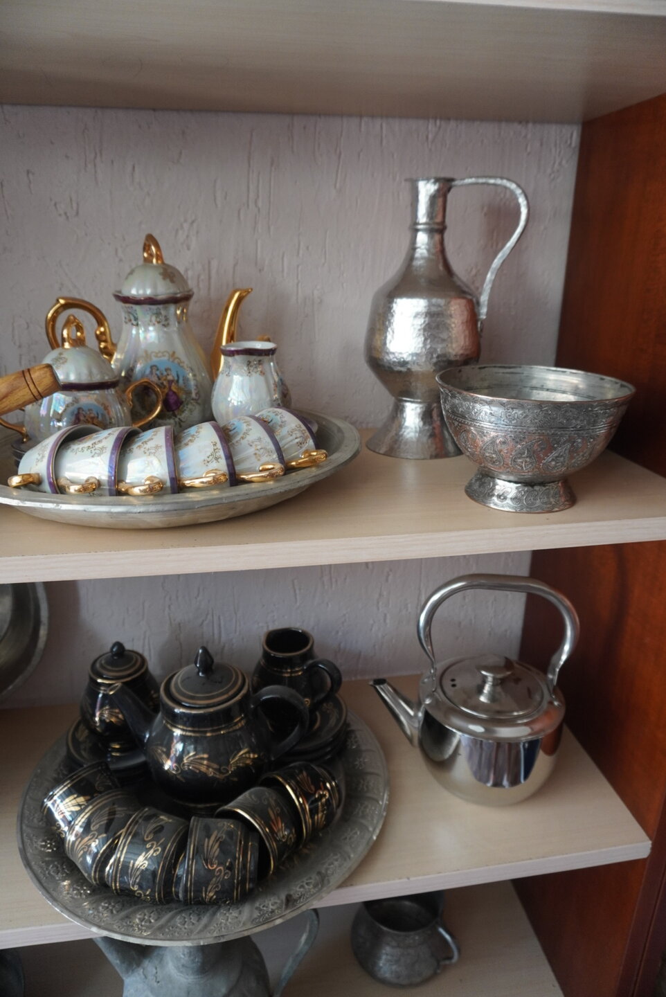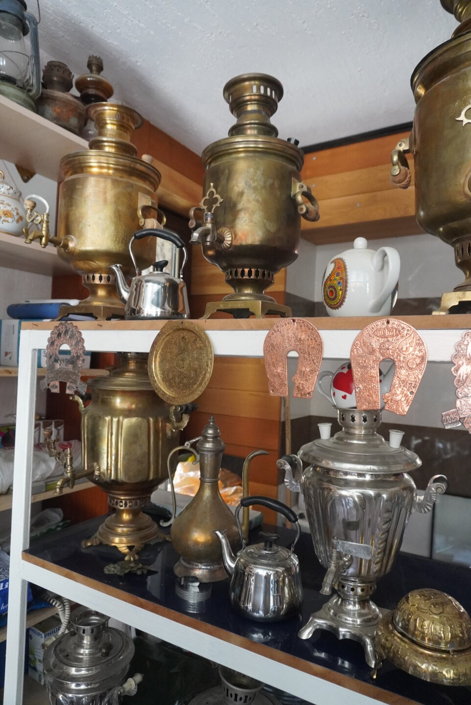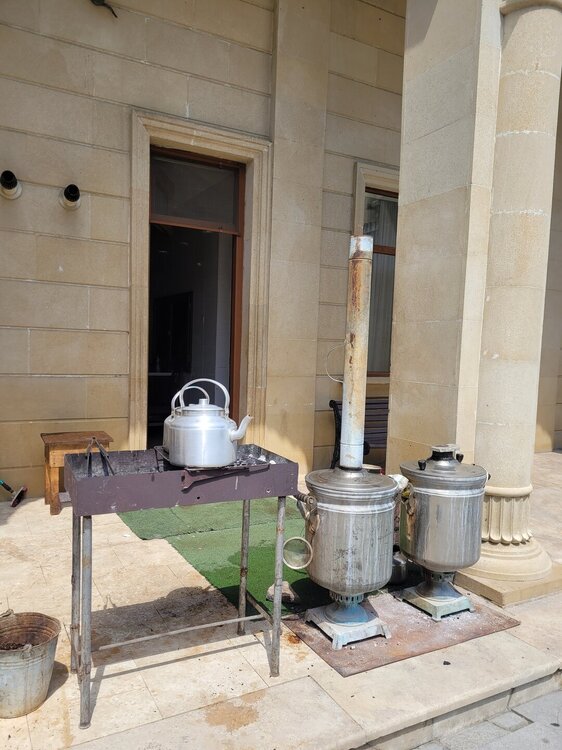 И если ещё что-то написать про мечеть в Шемахе, то здесь, как и везде при входе необходимо снять обувь. И конечно, это ковры в мечети, не то что ковры, а какие они по качеству. И ещё раз убеждаешься и понимаешь, что Азербайджан - это страна ковров. Не буду забегать вперёд, но наличие ковров меня поразило в другом месте. Хотя нет, даже не поразило, а просто сразило наповал, уж где где, а там я их точно не ожидала увидеть. А ещё мне понравилась территория вокруг мечети. Насколько она ухоженная и благоустроенная, прогуляться по ней было одно удовольствие. И в завершении своего небольшого рассказа, немного затрону тему самовара. Тем более, для нас самовар - это национальный символ, главный атрибут традиционного русского чаепития. Вокруг самовара традиционно собиралась вся семья, и каждый выпивал по пять-шесть чашек чая. Да и кто не знает тульские самовары? Их знают все! Также знают, что родиной самовара считается именно Тула. Существует даже поговорка "В Тулу со своим самоваром не ездят". И это даже при том, что факты говорят о том, первенство всё-таки принадлежит Иргинскому заводу, тот что на Урале. Но речь пойдёт не о наших самоварах и традициях. Я была крайне удивлена, что самовары, от слова очень, распространены и в Азербайджане. И не то, что они популярны в этой стране, в Азербайджане самовар — один из необходимых атрибутов бакинской дачи или "домика в деревне". И мало кто знает, что 3600 лет назад, в предгорьях Большого Кавказа, близ города Шеки, был обнаружен сосуд, напоминающий самовар. Я думала про чайнички, или что-то напоминающий чайничек, но никак не о самоварах которые распространены в Азербайджане. Как нам говорил наш водитель, в каждой уважающей себя семье, не имею ввиду Баку, обязательно есть самовар. Я может и зря удивлялась, ну что здесь такого? Но как то для меня самовар - это всегда был символом России. Хотя вряд ли сейчас в каждой семье можно увидеть самовар, если только в музее где-нибудь. Вот такое было для меня открытие, что самовар и Азербайджан неотъемлимая часть друг друга.