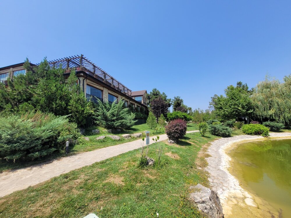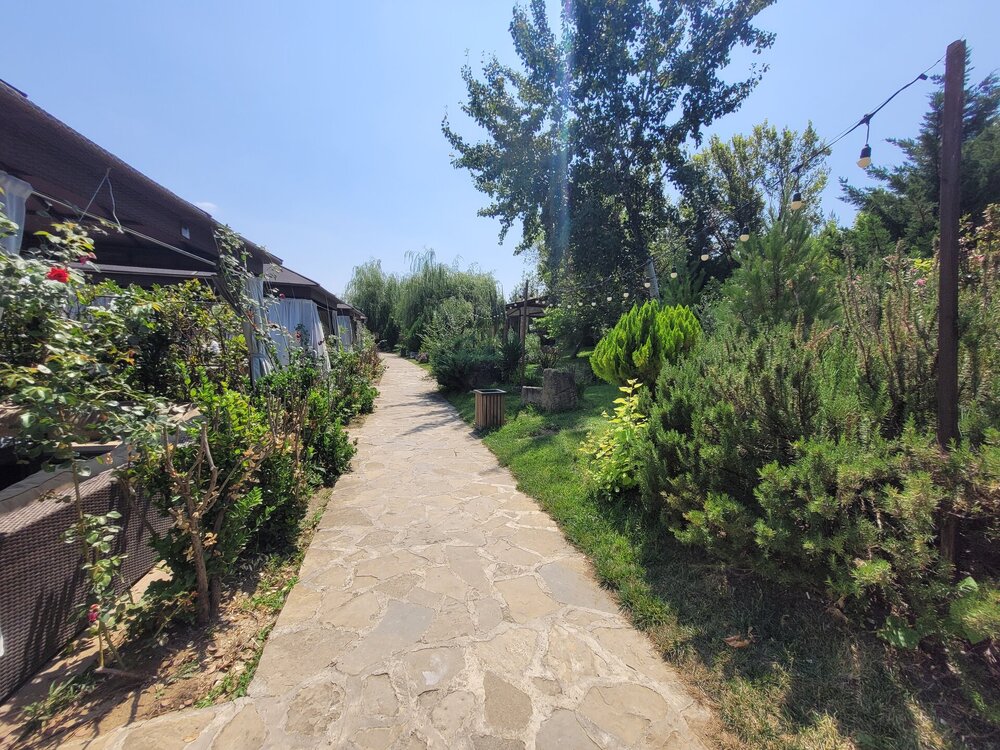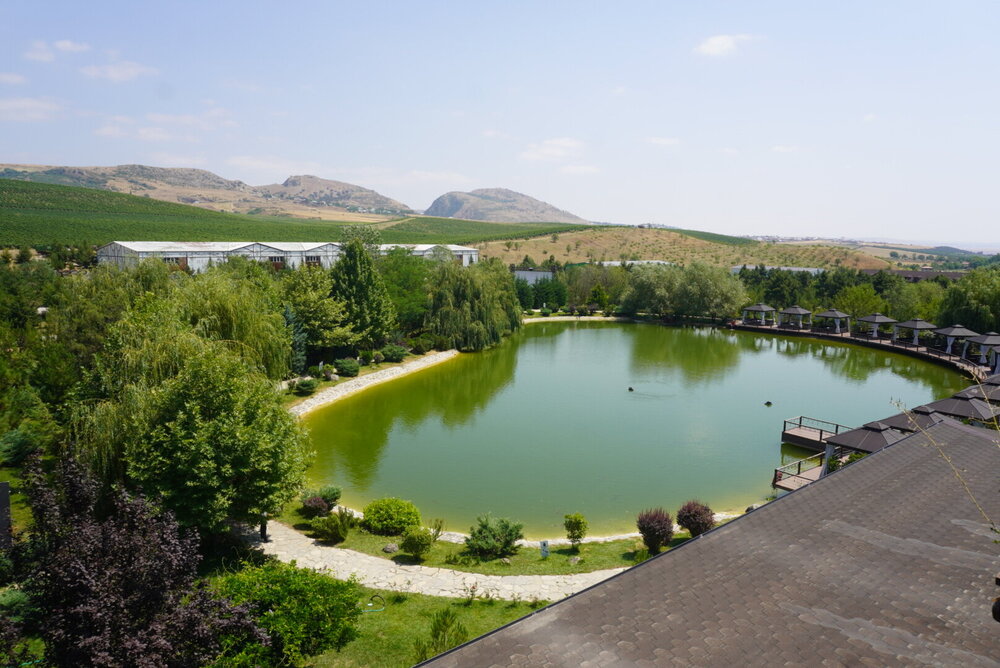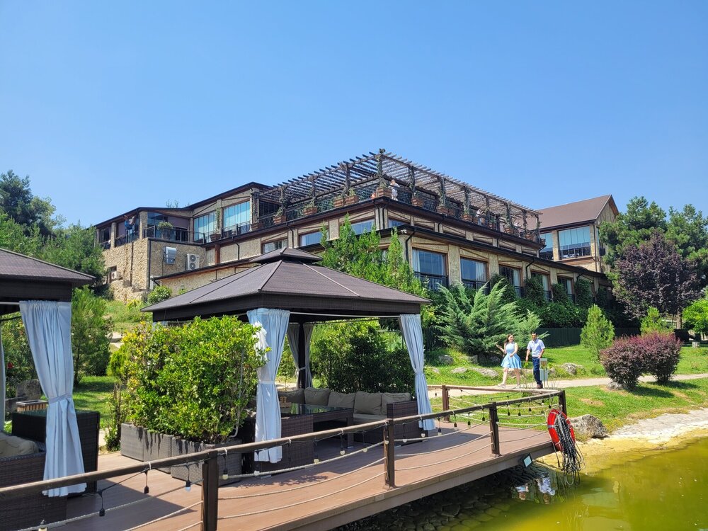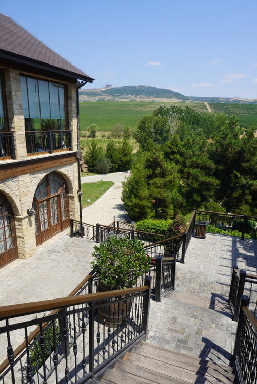 В 6 километрах от мечети находится ресторан-винодельня "Абгора", именно туда нас потом и завезли. Место довольно атмосферное, колоритное и потрясающе красивое. "Абгора" - это семейный ресторан национальной кухни, расположенный в селе Мейсари города Шамаха. Здесь можно насладиться прекрасным видом на озеро и виноградниками, а также посетить завод по производству местного вина и попробовать его на месте. В общем, можно было заказать дегустацию, мы этого делать не стали, тогда я ещё не знала, что нам нашу ручную кладь предложат сдать в багаж, и честно сказать, я потом подумала, и слава богу. Если бы у нас был багаж или мы были заранее в курсе, что сдадим в багаж, я даже затрудняюсь сказать, чем бы закончилась наша дегустация. Помню, когда ещё будучи во Франции, мы поехали на экскурсию по замкам Луаров, и нас завезли на дегустацию, а я изначально планировала на неё пойти, попросили купить бутылку настоящего французского вина... Я была такая наивная, ну да, бутылочку вина, в итоге я оттуда вышла с тремя бутылочками вина. А в Грузии...это вообще отдельная история. И это уже становится какой-то традицией. Захожу то я реально за одной бутылочкой вина, почему выйти не получается с этой одной бутылочкой, я не понимаю. В общем, хорошо, что я заранее ничего не знала про ручную кладь и мы не стали заказывать дегустацию. Но нам и без дегустации хватило впечатлений. Здесь очень красиво. Мы спустились к озеру. И что меня в нём поразило....конечно, это было не рыбки... Это были чёрные лебеди. Вот не помню я, чтобы где-то их встречала.