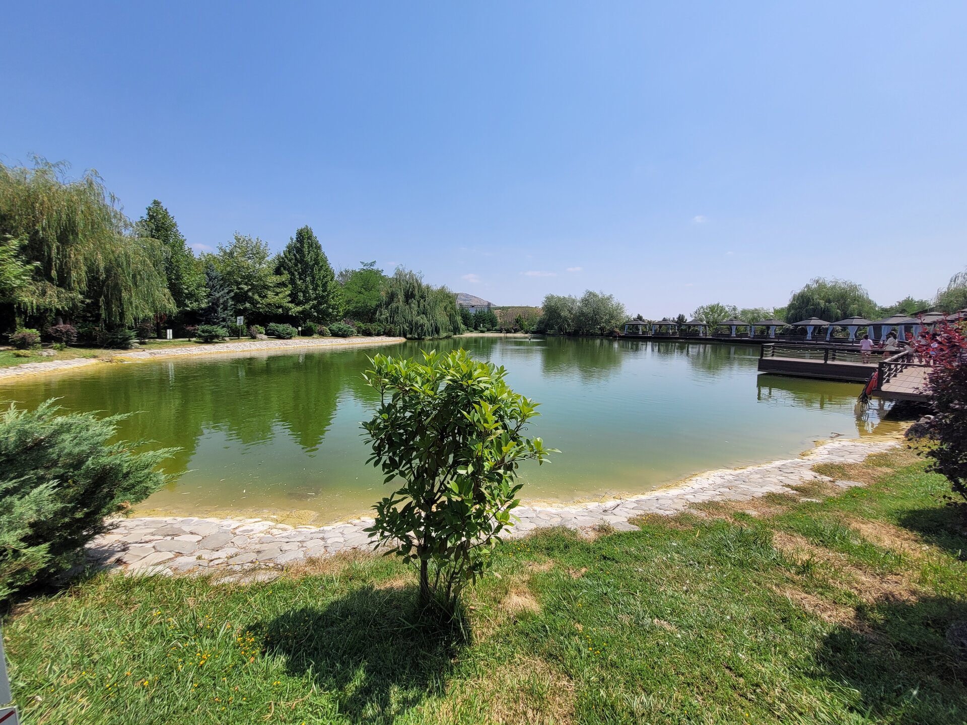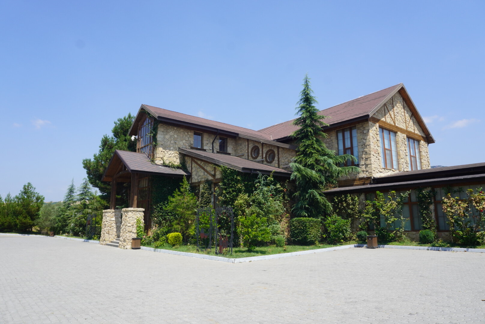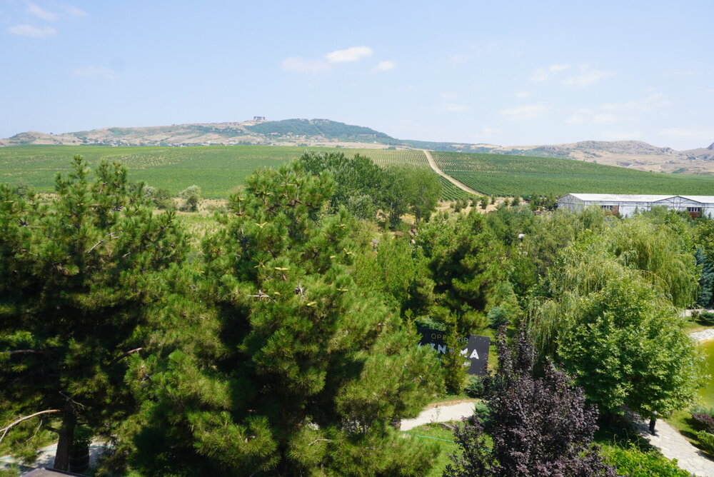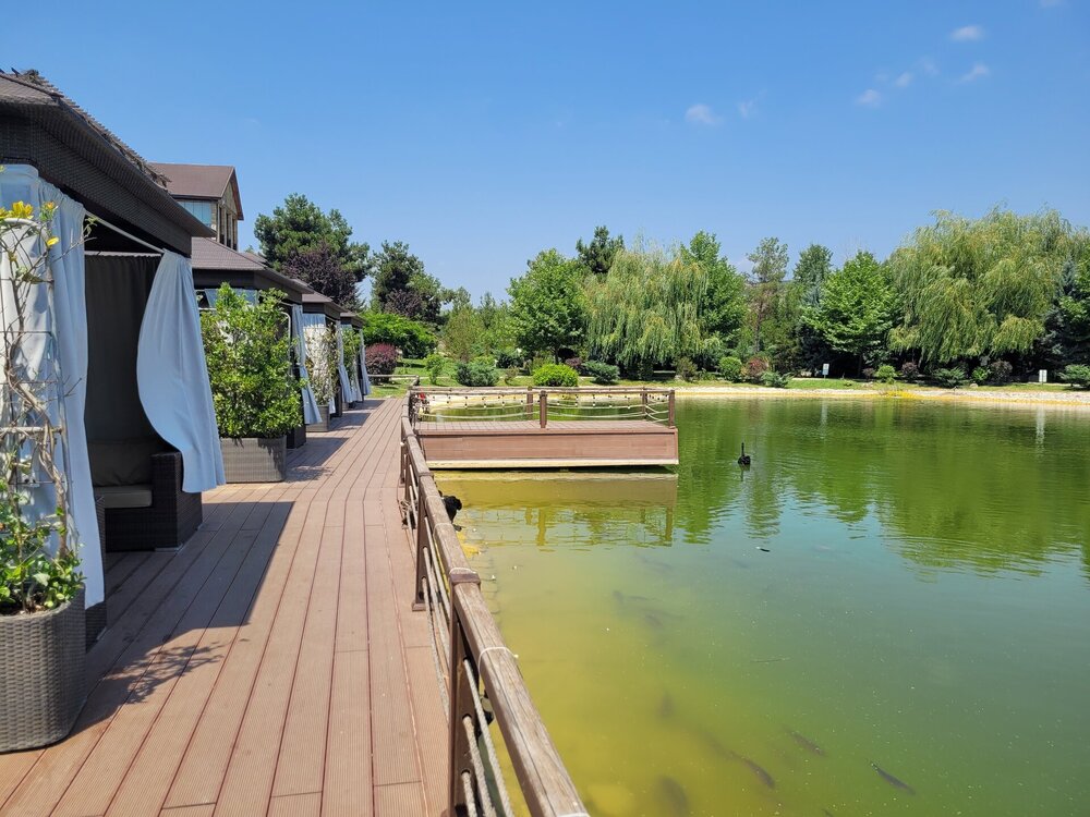 В 6 километрах от мечети находится ресторан-винодельня "Абгора", именно туда нас потом и завезли. Место довольно атмосферное, колоритное и потрясающе красивое. "Абгора" - это семейный ресторан национальной кухни, расположенный в селе Мейсари города Шамаха. Здесь можно насладиться прекрасным видом на озеро и виноградниками, а также посетить завод по производству местного вина и попробовать его на месте. В общем, можно было заказать дегустацию, мы этого делать не стали, тогда я ещё не знала, что нам нашу ручную кладь предложат сдать в багаж, и честно сказать, я потом подумала, и слава богу. Если бы у нас был багаж или мы были заранее в курсе, что сдадим в багаж, я даже затрудняюсь сказать, чем бы закончилась наша дегустация. Помню, когда ещё будучи во Франции, мы поехали на экскурсию по замкам Луаров, и нас завезли на дегустацию, а я изначально планировала на неё пойти, попросили купить бутылку настоящего французского вина... Я была такая наивная, ну да, бутылочку вина, в итоге я оттуда вышла с тремя бутылочками вина. А в Грузии...это вообще отдельная история. И это уже становится какой-то традицией. Захожу то я реально за одной бутылочкой вина, почему выйти не получается с этой одной бутылочкой, я не понимаю. В общем, хорошо, что я заранее ничего не знала про ручную кладь и мы не стали заказывать дегустацию. Но нам и без дегустации хватило впечатлений. Здесь очень красиво. Мы спустились к озеру. И что меня в нём поразило....конечно, это было не рыбки... Это были чёрные лебеди. Вот не помню я, чтобы где-то их встречала.