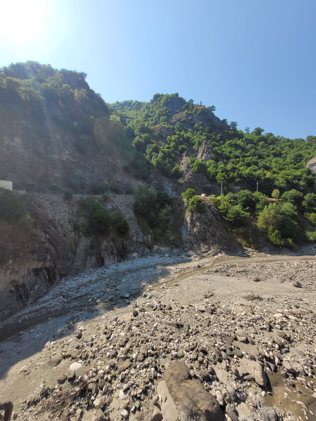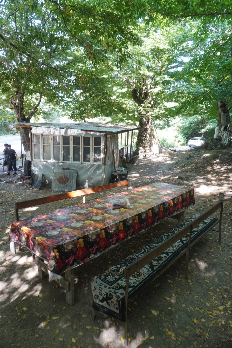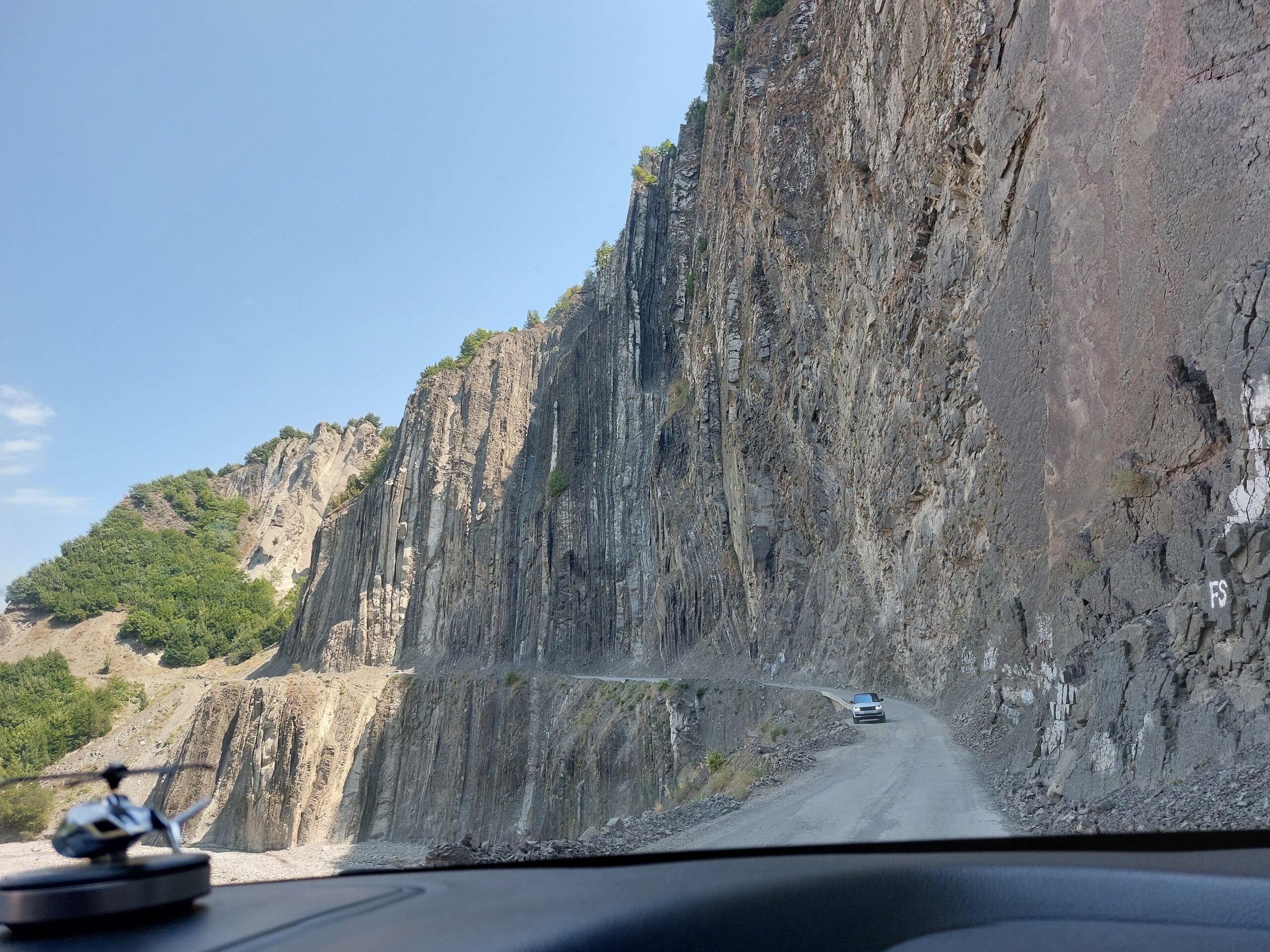 Мы едем дальше, нам предстояло проехать около часа, может чуть дольше. Но мы не просто ехали, наш водитель нам рассказывал о тех местах, что мы проезжали, про уклад местного населения, отвечал на наши вопросы. Рассказал и про свою работу, а работает он как с индивидуальными туристами, так и с группами. И особое впечатление у нашего водителя остались от работы с индусами. Как он нам сказал, что больше никогда, ни за какие деньги он не возьмёт группу индусов. А тем временем мы поднимались всё выше и выше, куда мы ехали, посёлок, расположен примерно на высоте 1300 метров над уровнем моря. 20250730_131707.mp4 И уже недалеко от посёлка сделали непродолжительную остановку на фотопаузу, здесь грех было не остановится. 20250730_132559.mp4 20250730_133310.mp4 Честно сказать, когда я увидела эту дорогу стороны, и я понимала, что именно по ней мы и поедем, в общем, дорога у меня не вызывала никакого доверия. Огромная скала над дорогой, сама дорога издалека больше походила на тропинку. Вот как пой ней ехать? На деле всё оказалось гораздо проще, По ней спокойно разъезжаются две машины. Но вот если будет дождь или другие нехорошие погодные явления, то дорога эта будет закрыта. А единственная дорога соединяющая Баку и посёлок Лагич. Именно туда мы и направлялись.