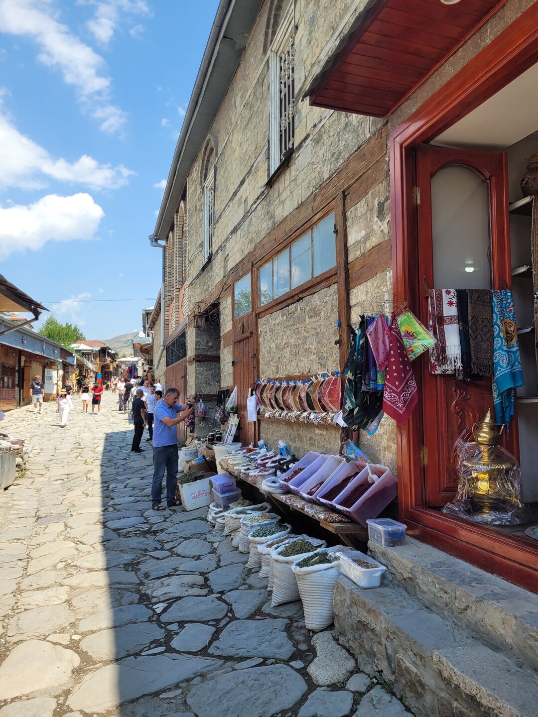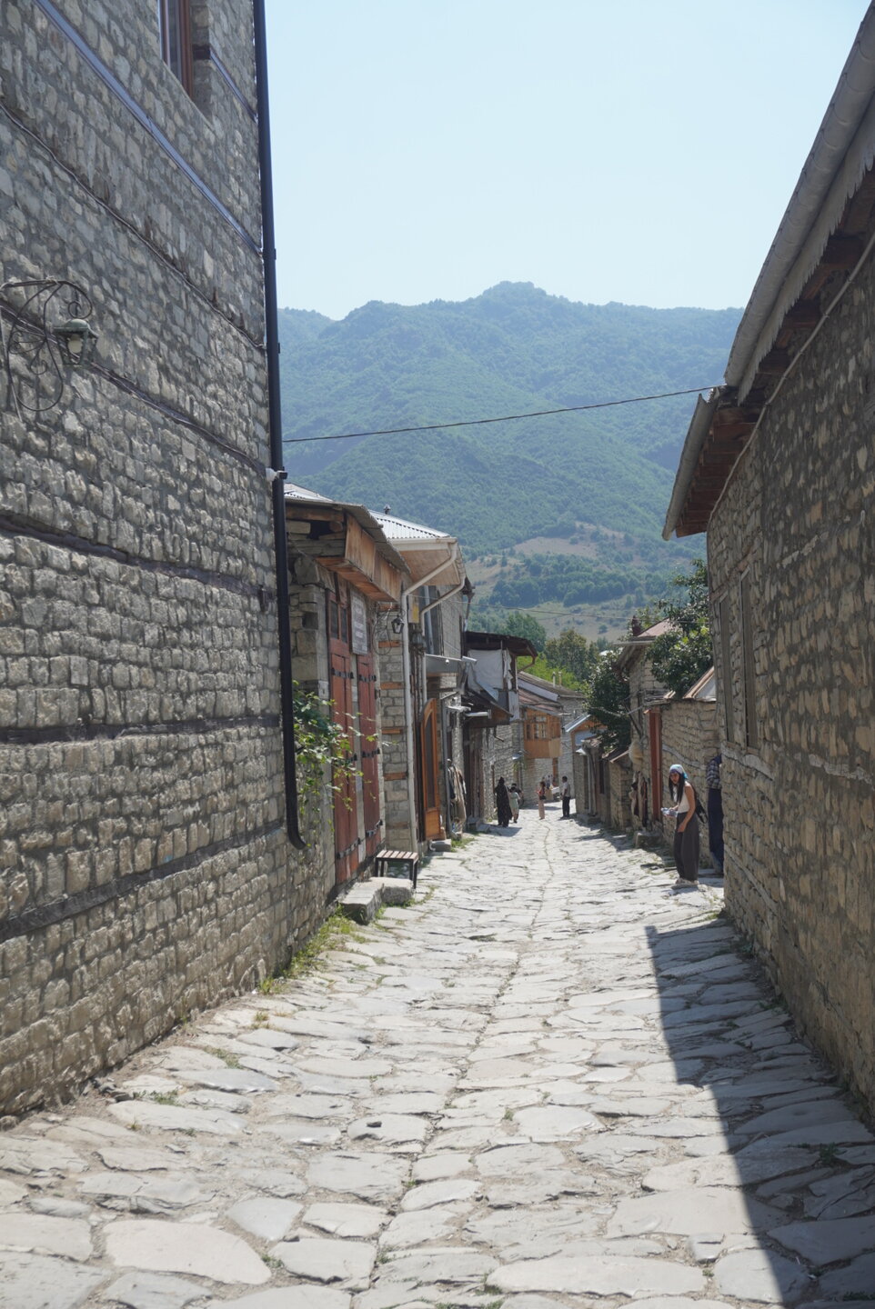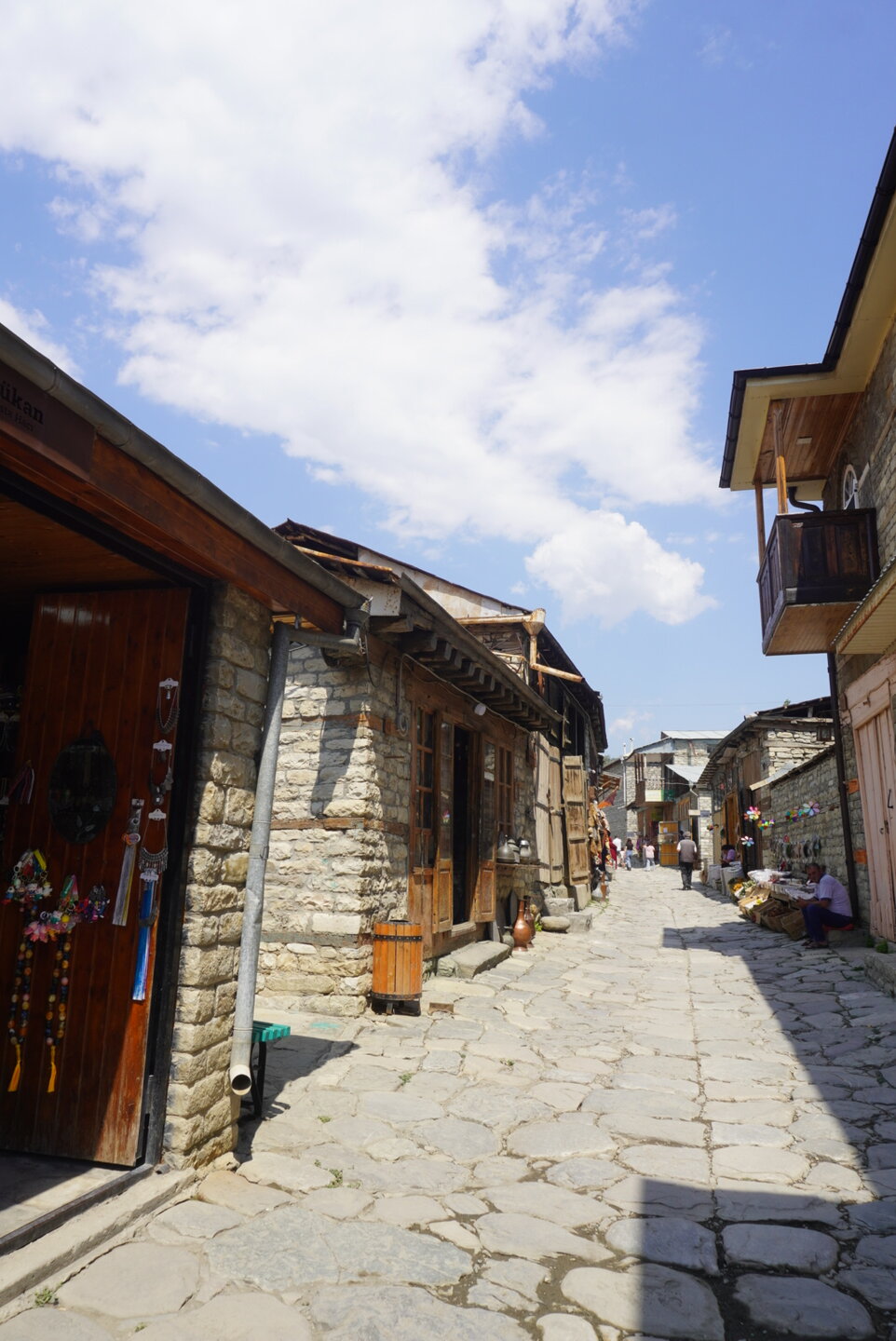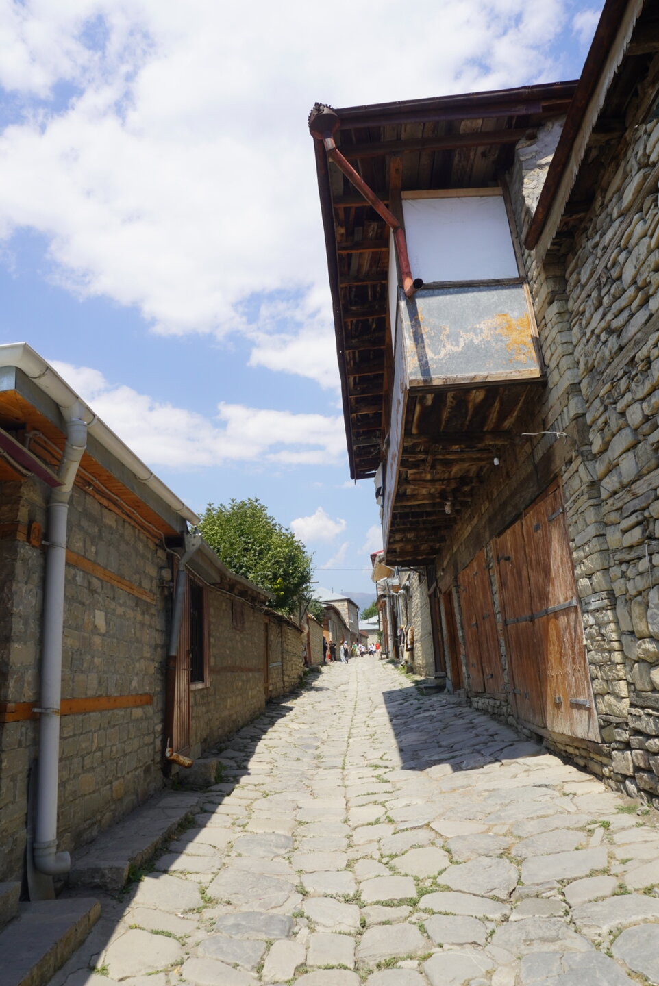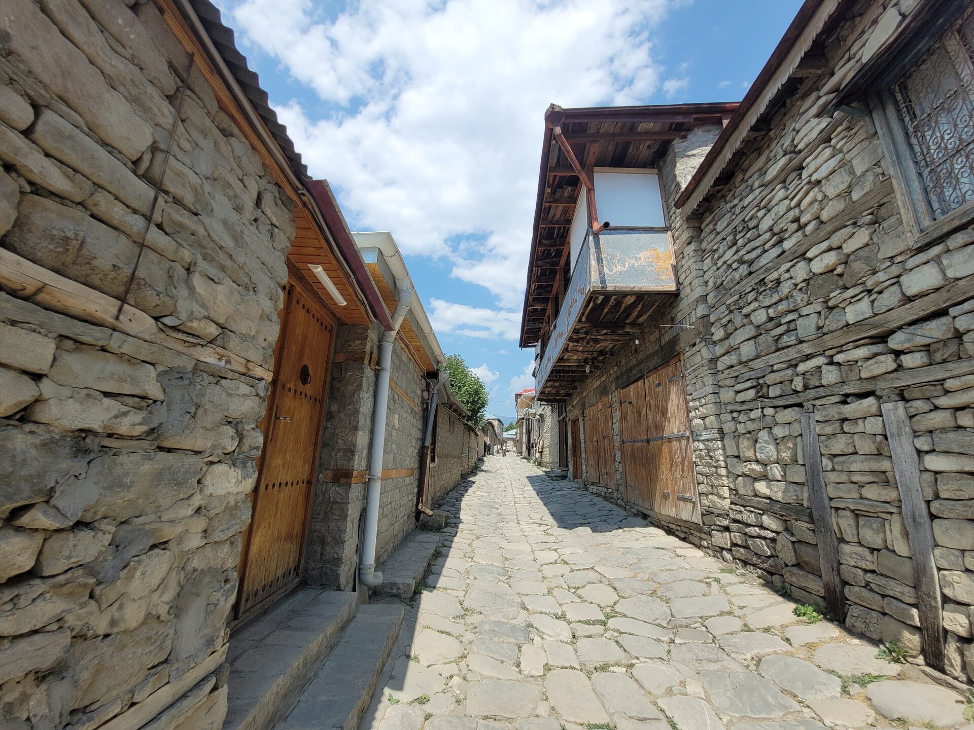 Лагич – это поразительное место в Азербайджане, являющееся культурным заповедником. Это село практически не тронутое современностью, а зависшее в прошлых эпохах. Чаще всего, ради знакомства с ним, в этот район страны приезжают туристы, интересующиеся историей и предпочитающие национальный колорит современной инфраструктуре. Мощёные улочки и площади, где в самобытных каменных домах живут мастера-ремесленники, занимающиеся коврами и медным промыслом. И здесь, среди гор, такие современные слова, как «смартфон», «каршеринг» и «кешбек» звучат не очень-то уместно. А уж как классно пройтись по узким переулкам, заглядываясь на детали незнакомой тебе жизни… ,,,,,,,,,,,,,,, И что меня больше всего поразило, так это архитектура. Можно пройтись только по главной улице, и уже будет понятно какой он Лагич. Именно здесь, на этой улице, практически каждое строение является историческим и уникальным. Все дома на этой улице самобытные, выложенные из камня и древесины, многие из них выделяются большими деревянными балконами. А ещё, здесь нет практически машин. Насколько помню, въезжать на транспорте сюда нельзя, в любом случае двум машинам тут не разъехаться. Но ведь прелесть в другом, не проехать на машине, а пройтись, прогуляться пешком. И было бы здорово, прогуляться ранними утром, мне кажется впечатления были бы совсем другими. Но в какой-то степени нам тоже повезло, когда мы приехали, людей было прям много, но чем дальше мы отходили, всё более пустынными становились улочки, а потом уже люди поразъехались, и даже в начале главной улицы их было не так много.